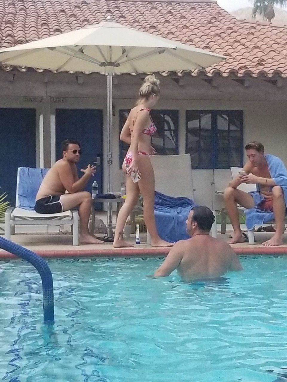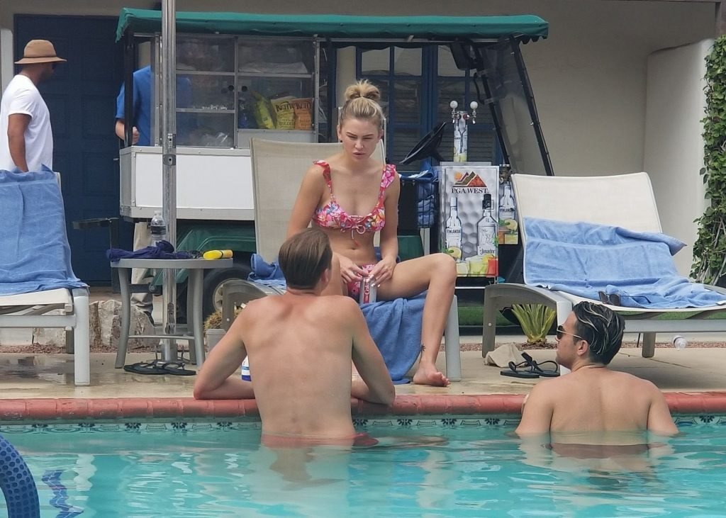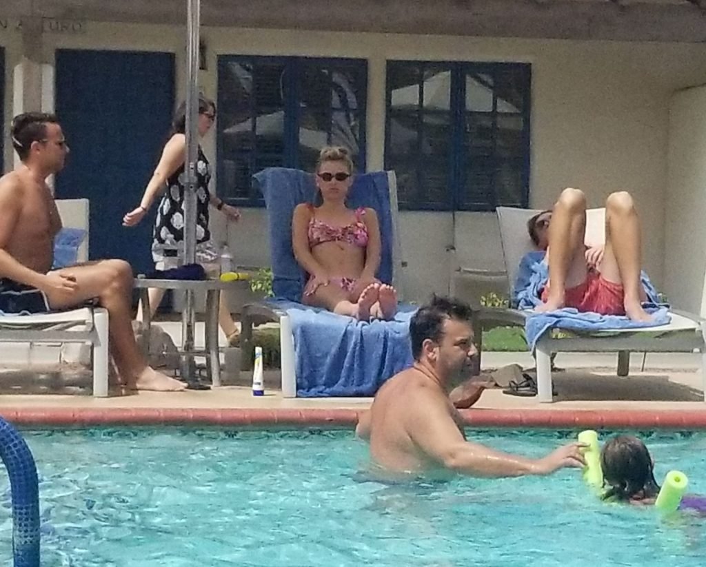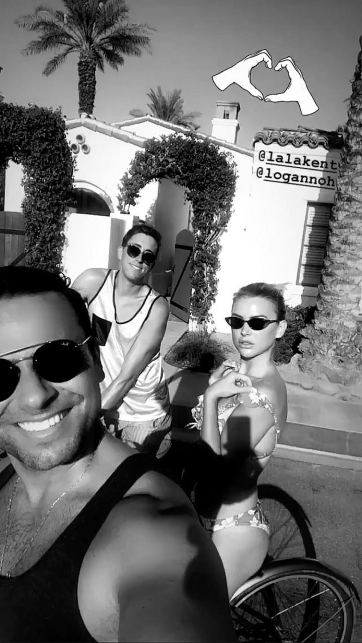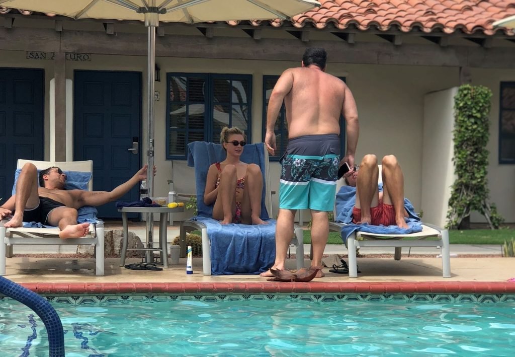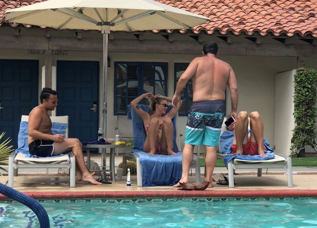 Lala Kent de “Vanderpump Rules” está junto a la piscina en unas vacaciones en el desierto con su prometido, Randall Emmett y la familia, 24/08/2019.