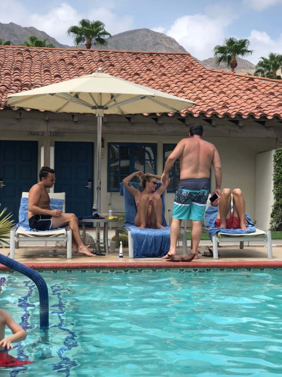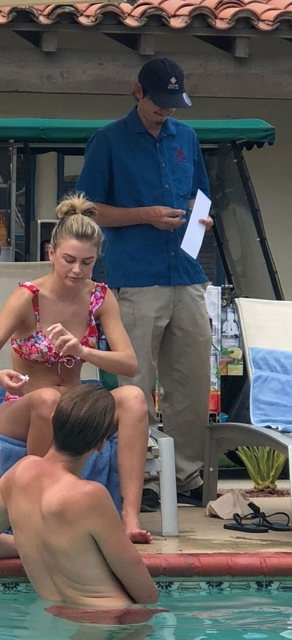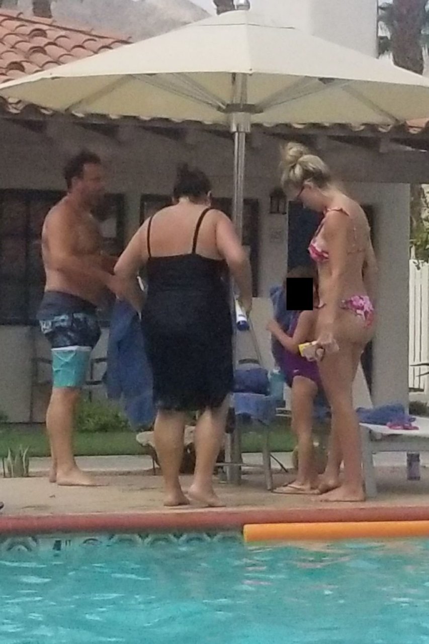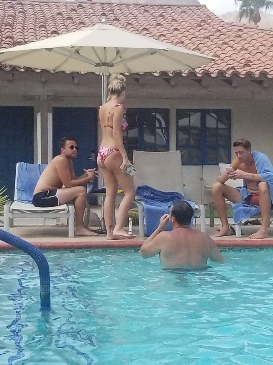 Lala Kent de “Vanderpump Rules” está junto a la piscina en unas vacaciones en el desierto con su prometido, Randall Emmett y la familia, 24/08/2019.
