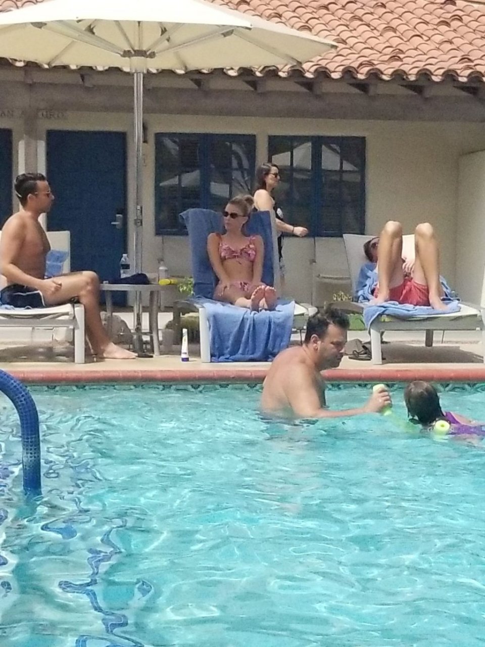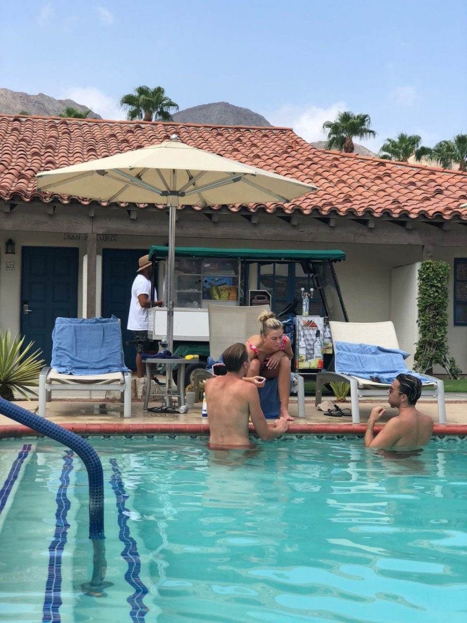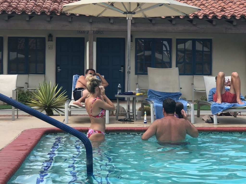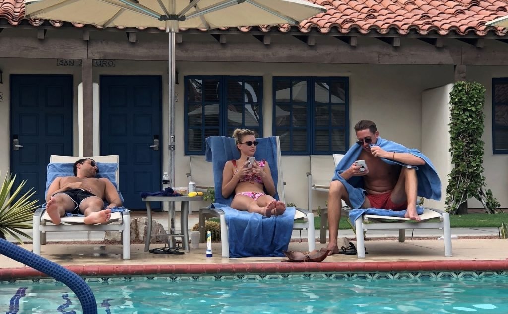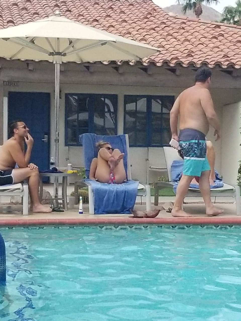 Lala Kent de “Vanderpump Rules” está junto a la piscina en unas vacaciones en el desierto con su prometido, Randall Emmett y la familia, 24/08/2019.