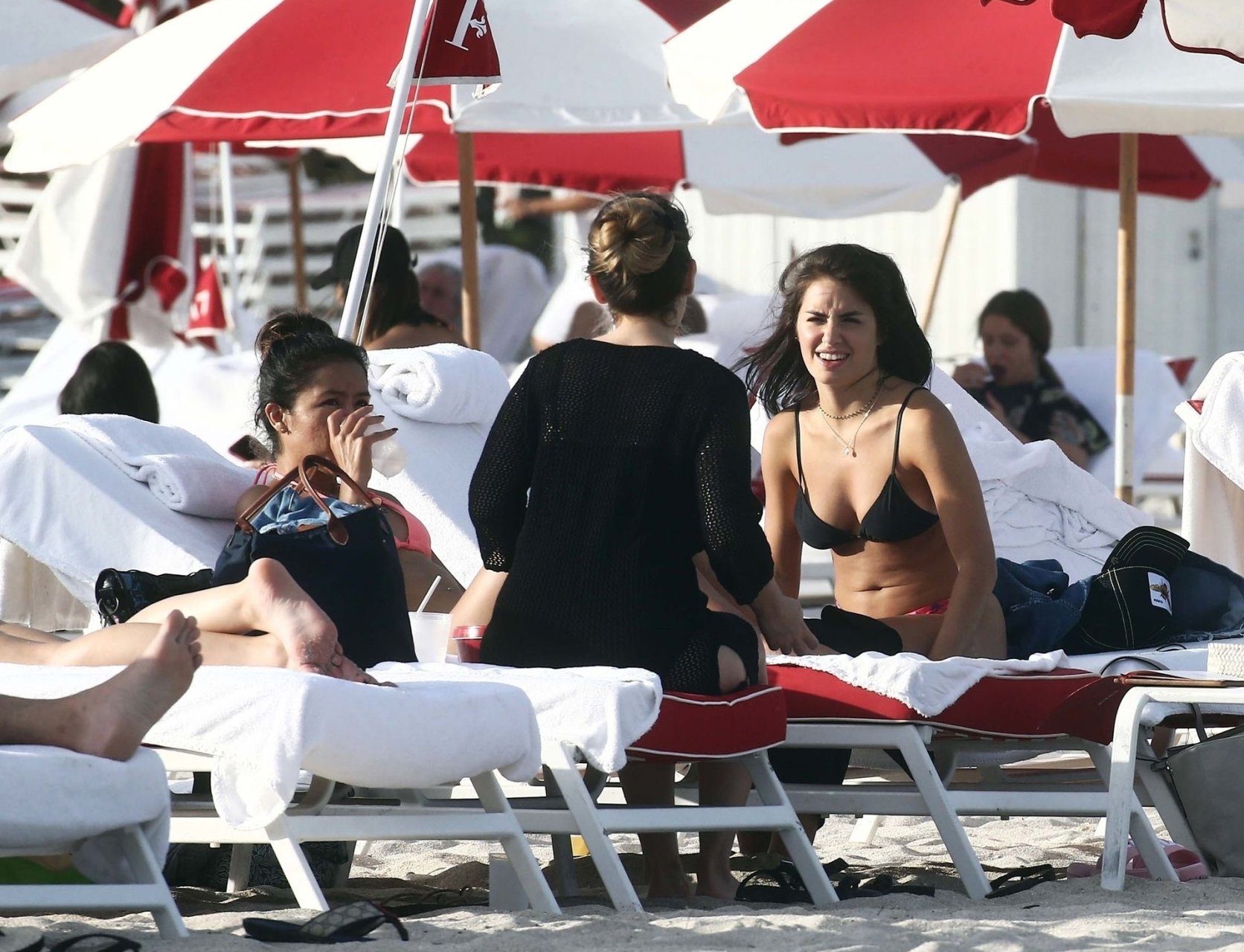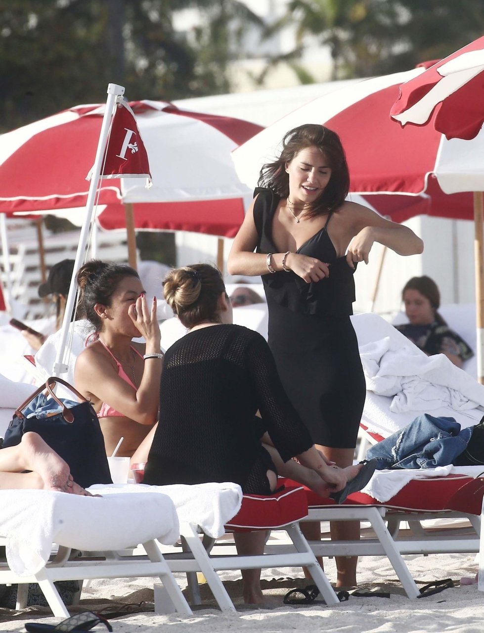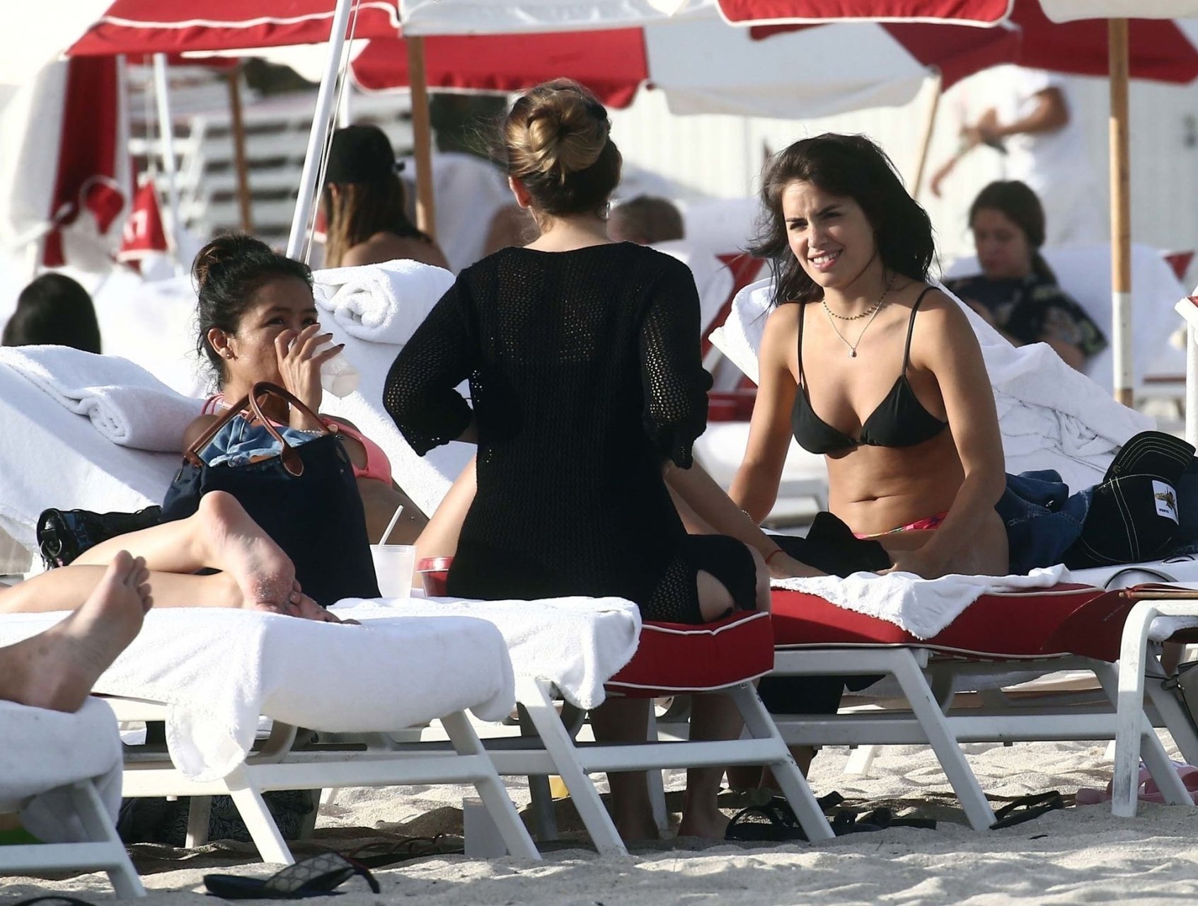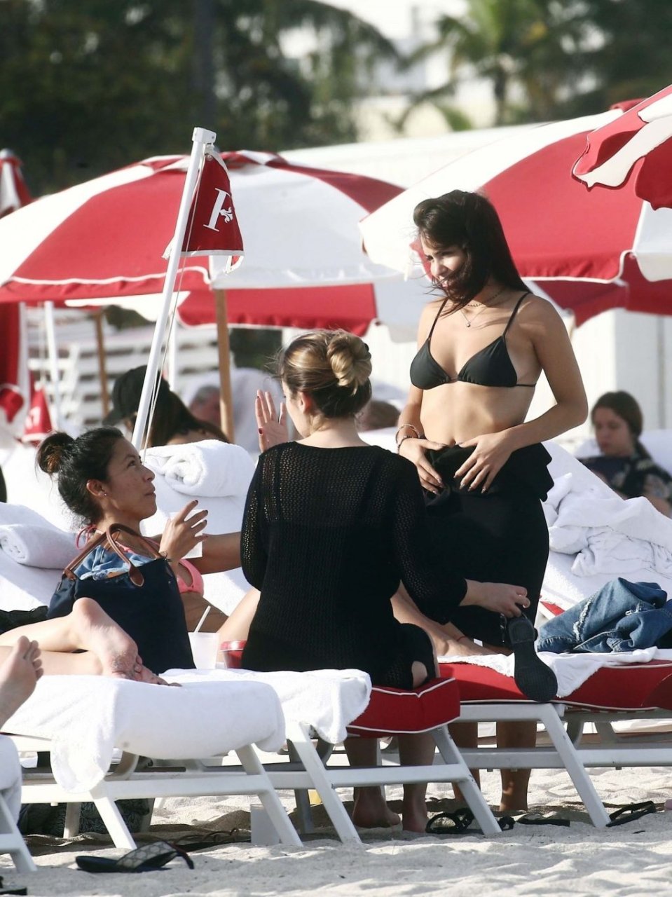 La actriz y cantante argentina Lali Esposito fue vista relajándose en la playa de Miami, 23/02/2019. Lali está actualmente en Miami donde está grabando con las cantantes Thalia y Nati Natacha y lucía sexy disfrutando del sol de Miami con su pequeño y atrevido bikini negro.