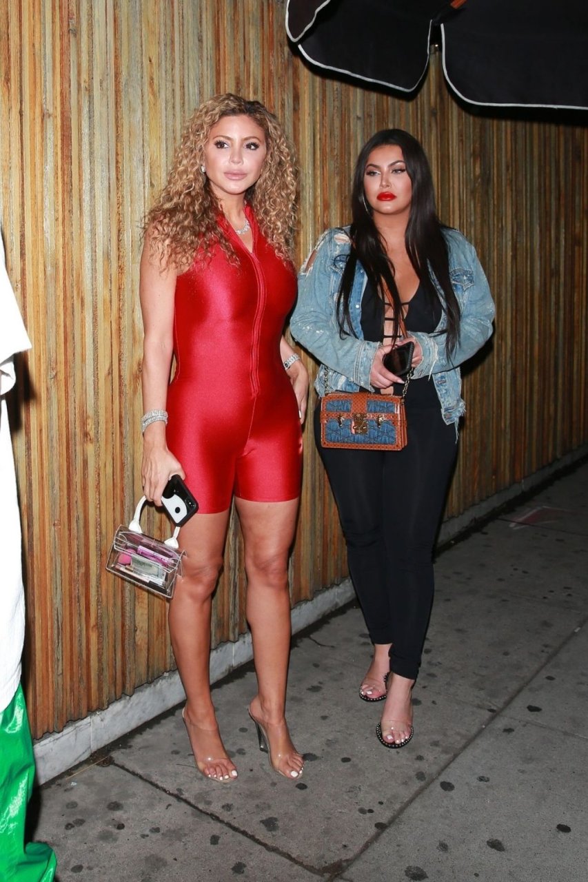 La mejor amiga de la familia Kardashian, Larsa Pippen, luce una melena rizada y anima la noche con un unitard rojo de seda mientras hace su entrada en The Nice Guy en West Hollywood, 10/07/2019.