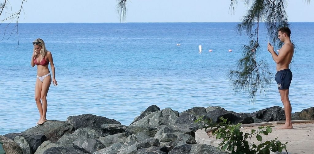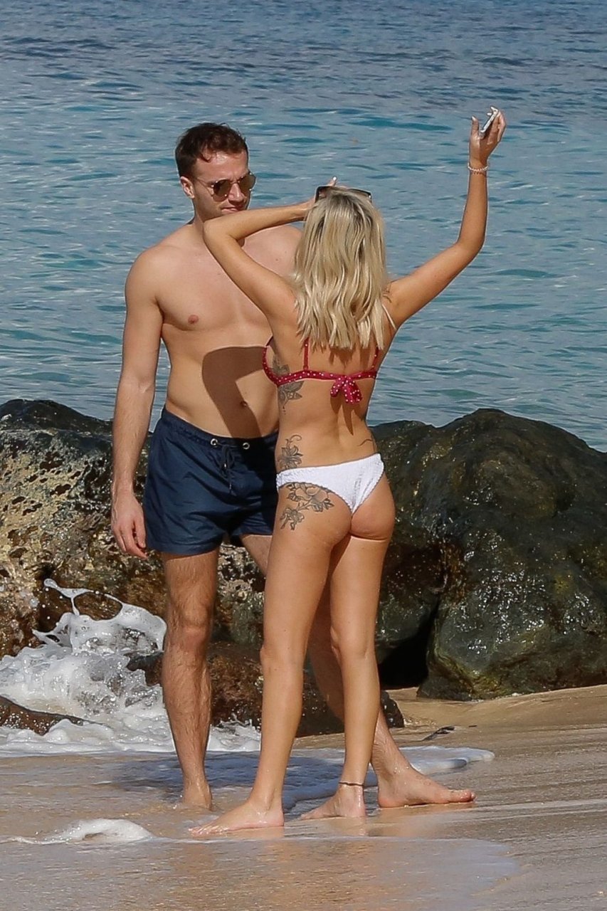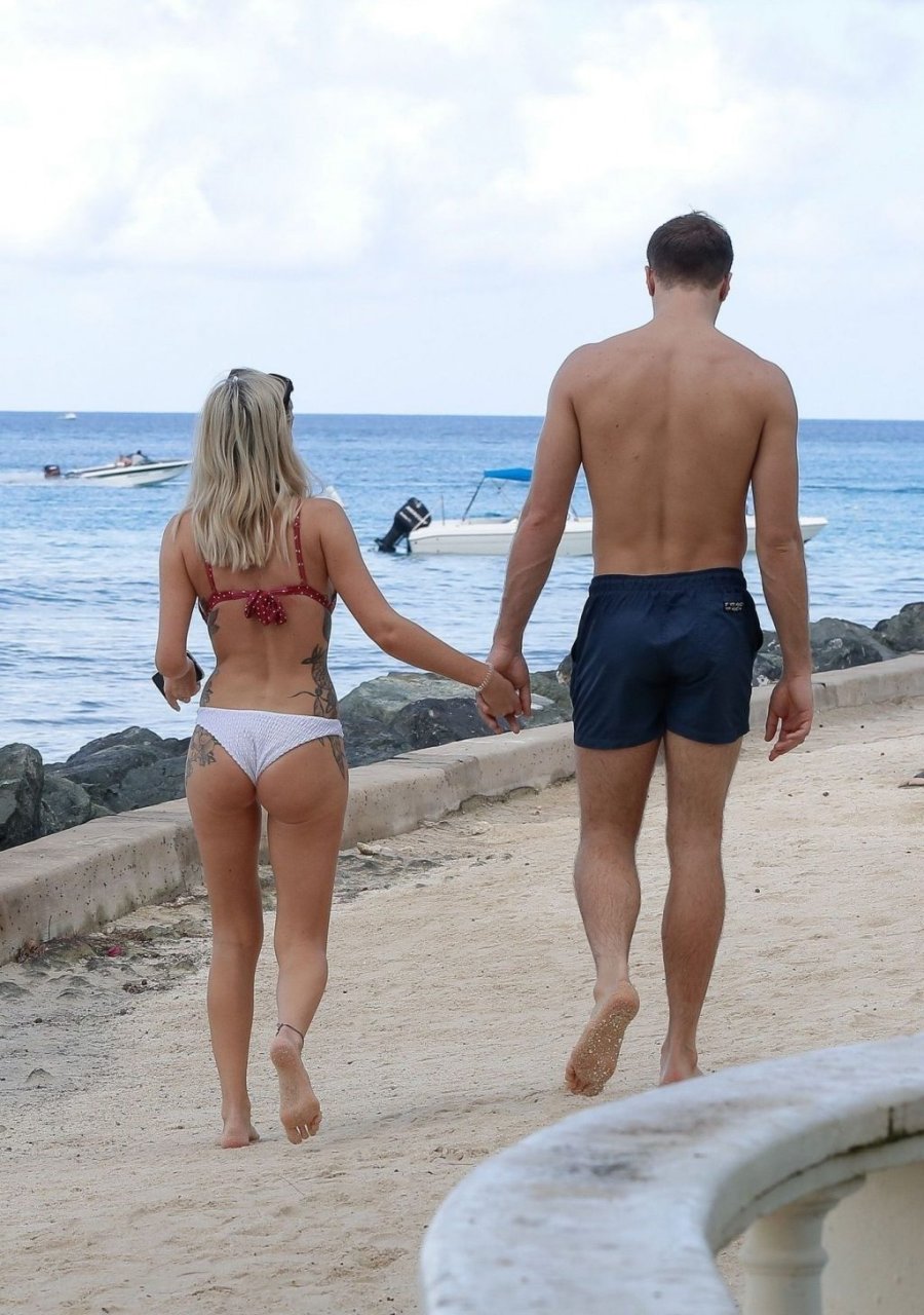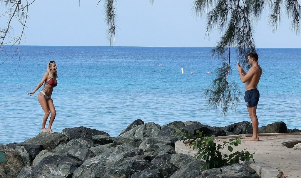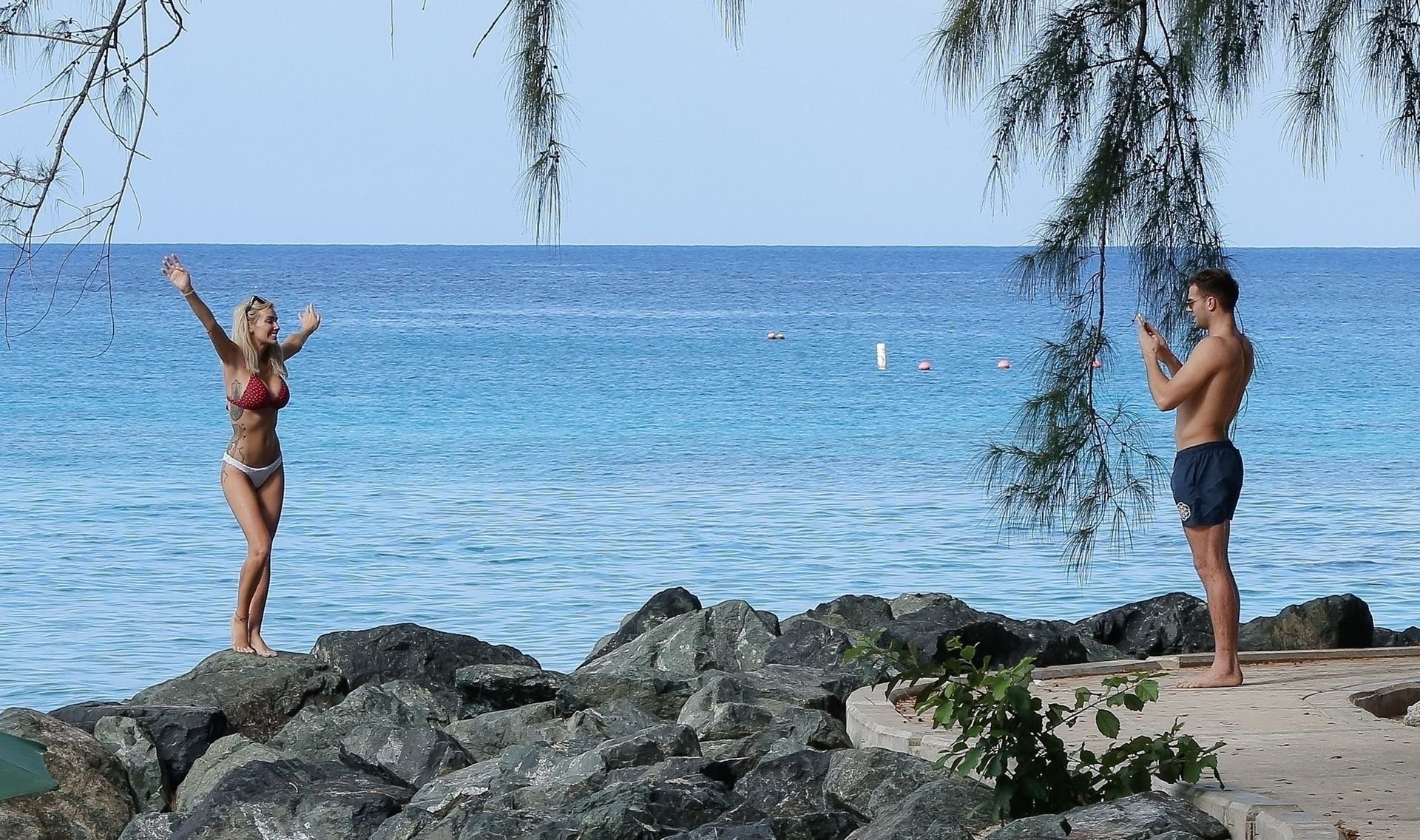 “Laura Anderson” de “Love Island” y Max Morley disfrutan de un día de playa en Barbados, 12/07/2018. La pareja parece estar disfrutando mientras exploran juntos la pintoresca playa.