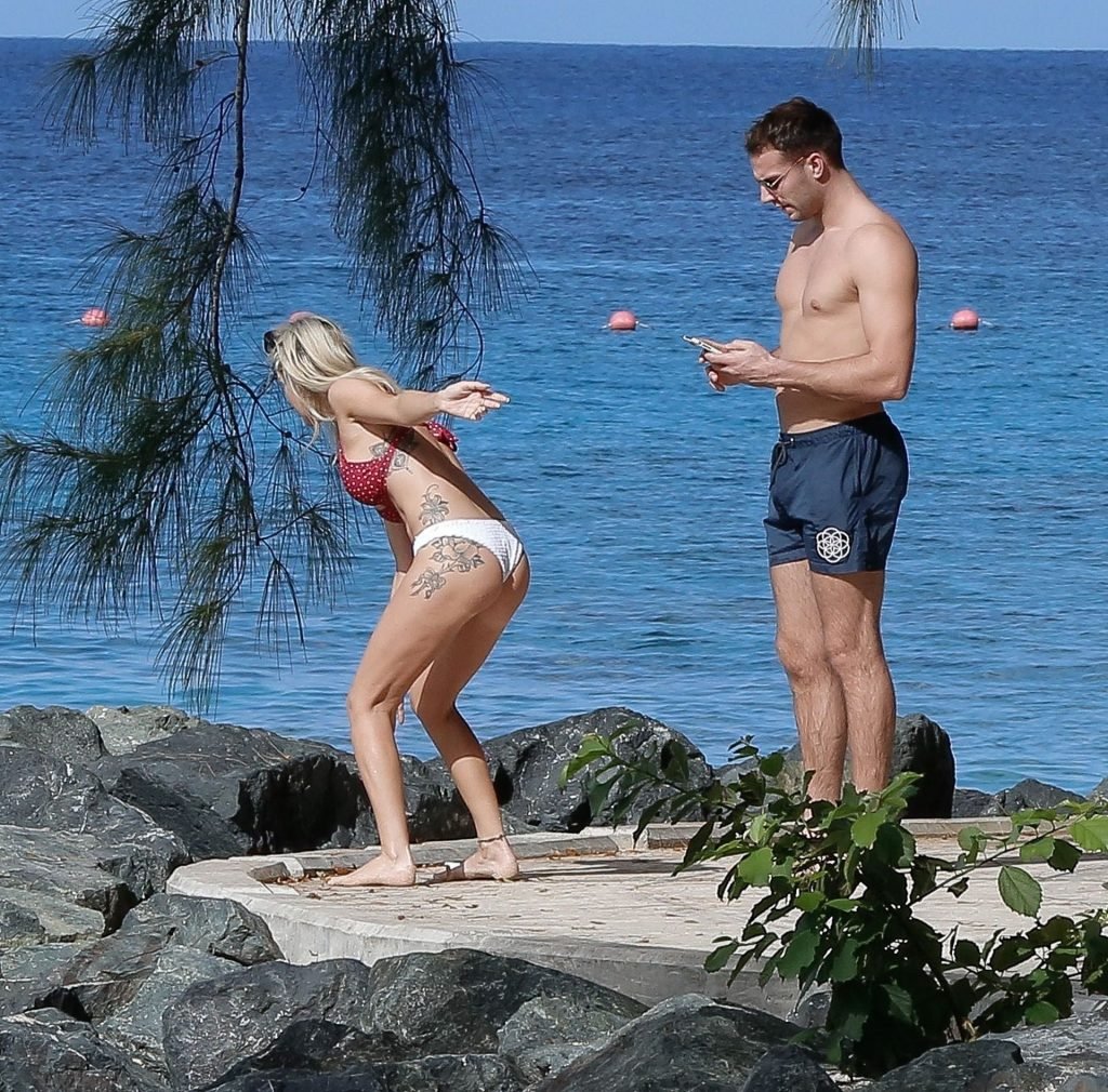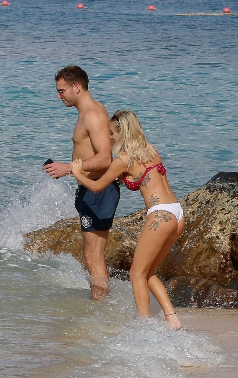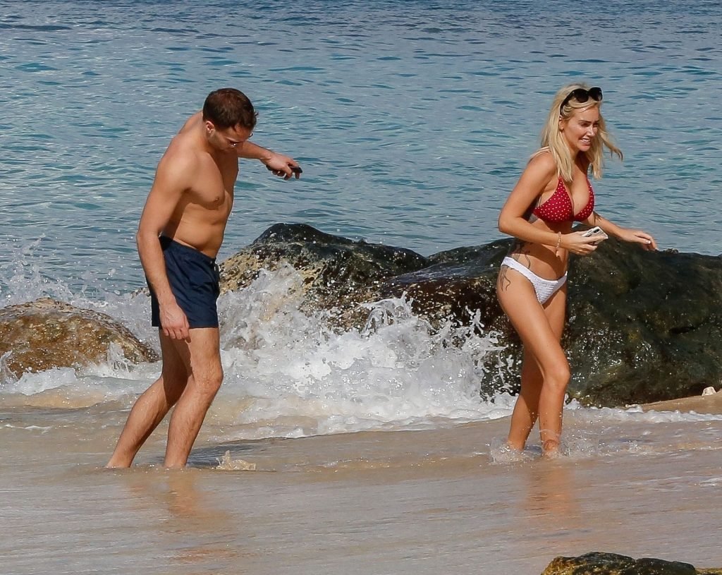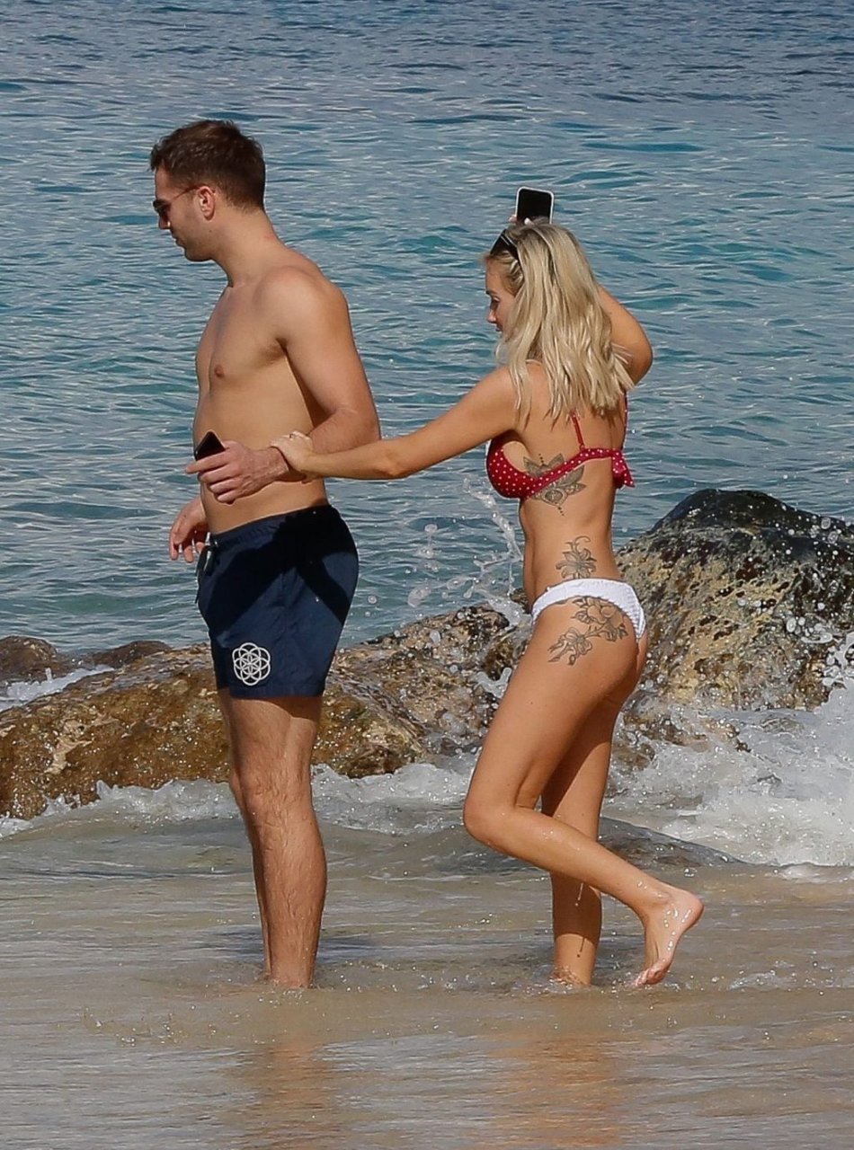 “Laura Anderson” de “Love Island” y Max Morley disfrutan de un día de playa en Barbados, 12/07/2018. La pareja parece estar disfrutando mientras exploran juntos la pintoresca playa.