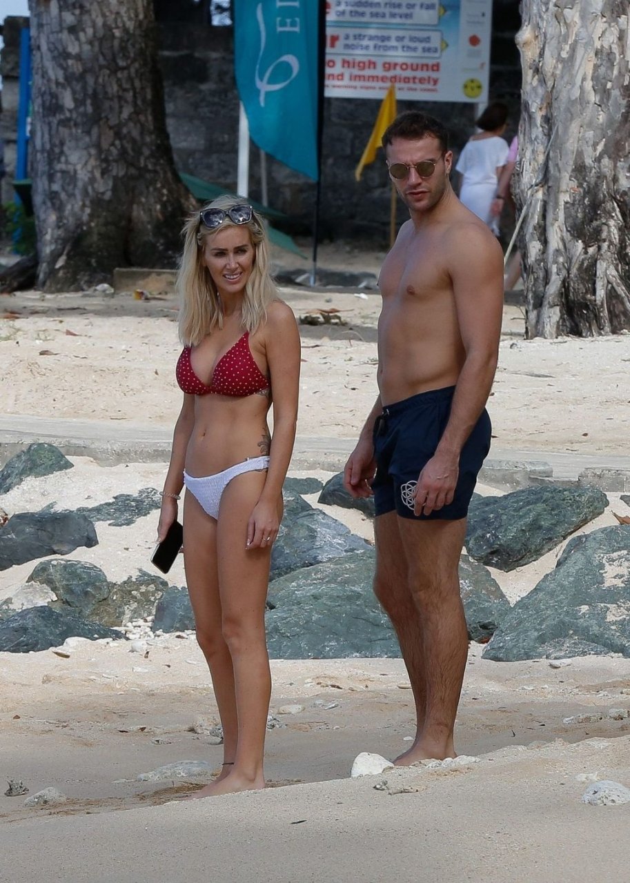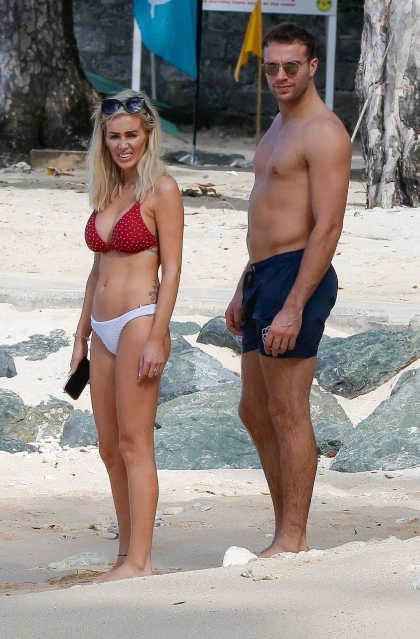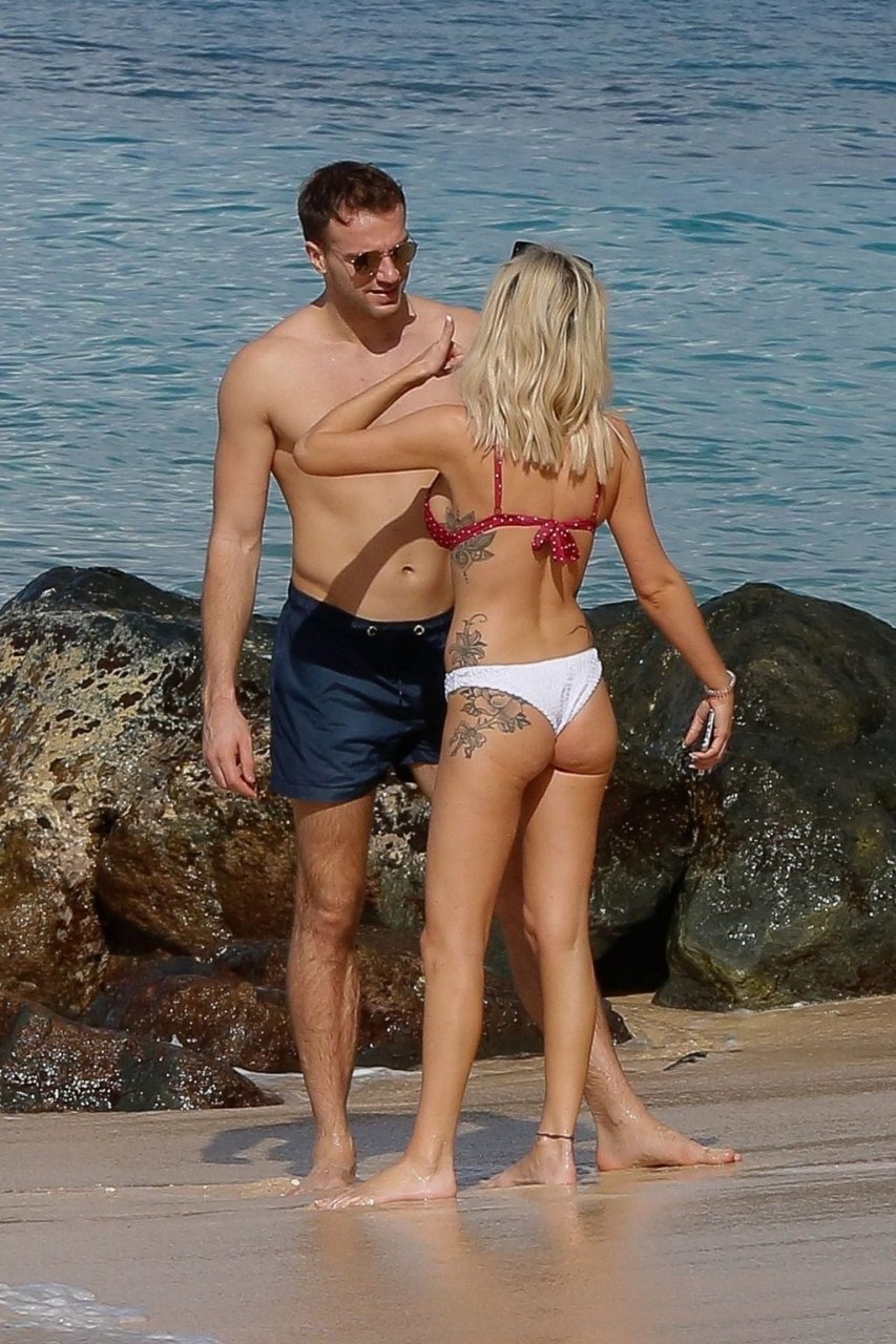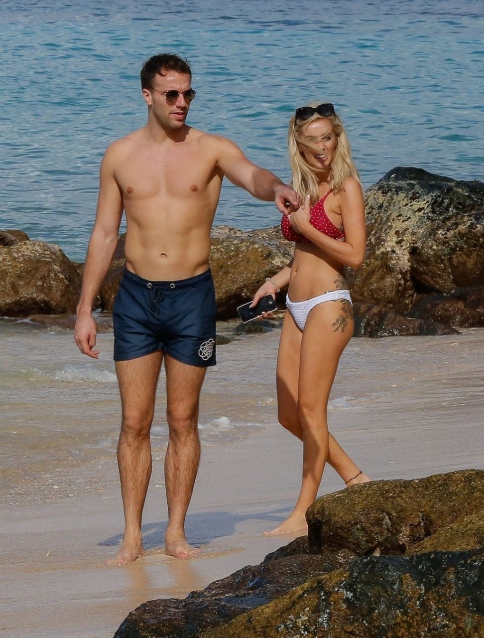 “Laura Anderson” de “Love Island” y Max Morley disfrutan de un día de playa en Barbados, 12/07/2018. La pareja parece estar disfrutando mientras exploran juntos la pintoresca playa.
