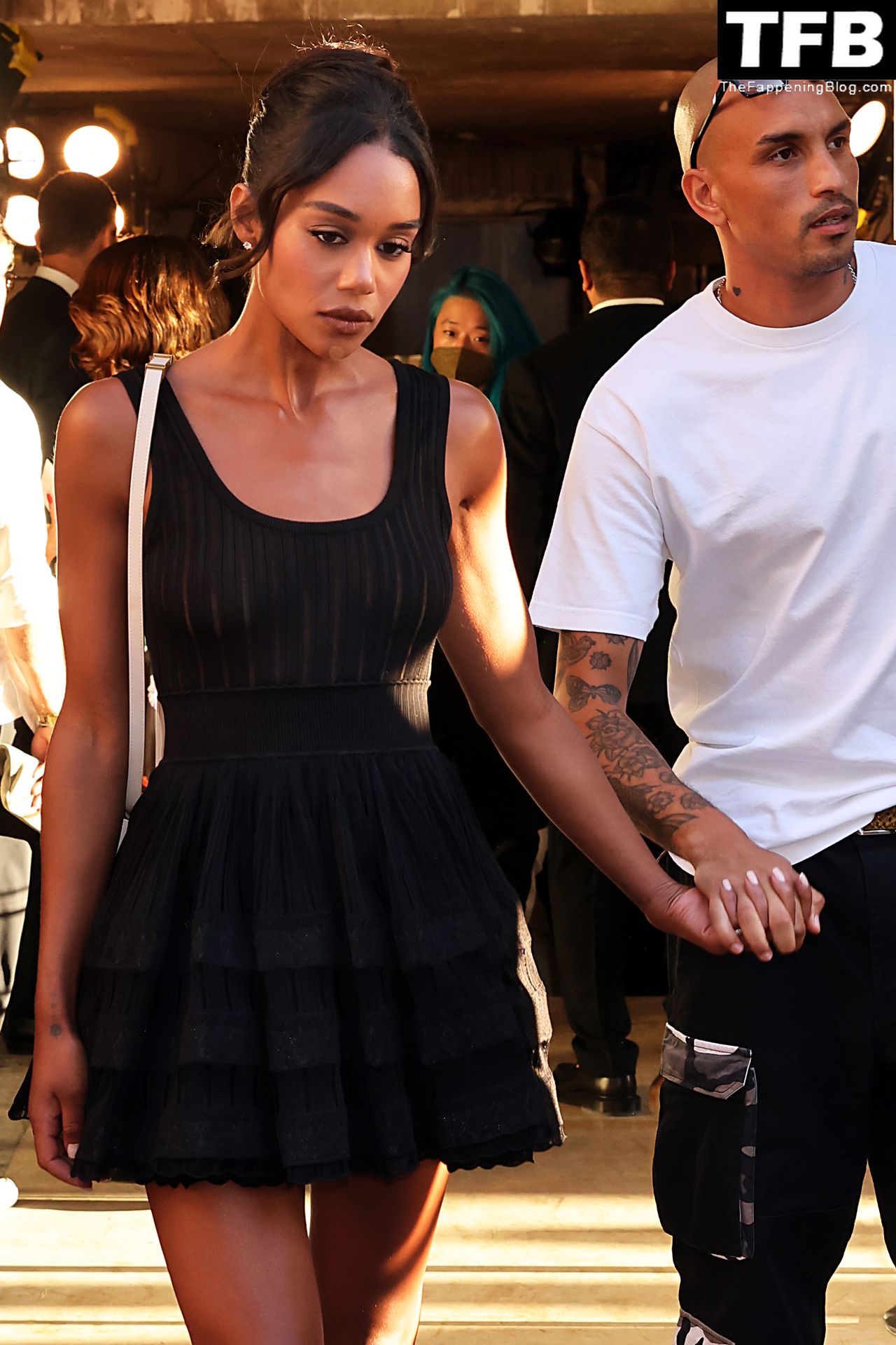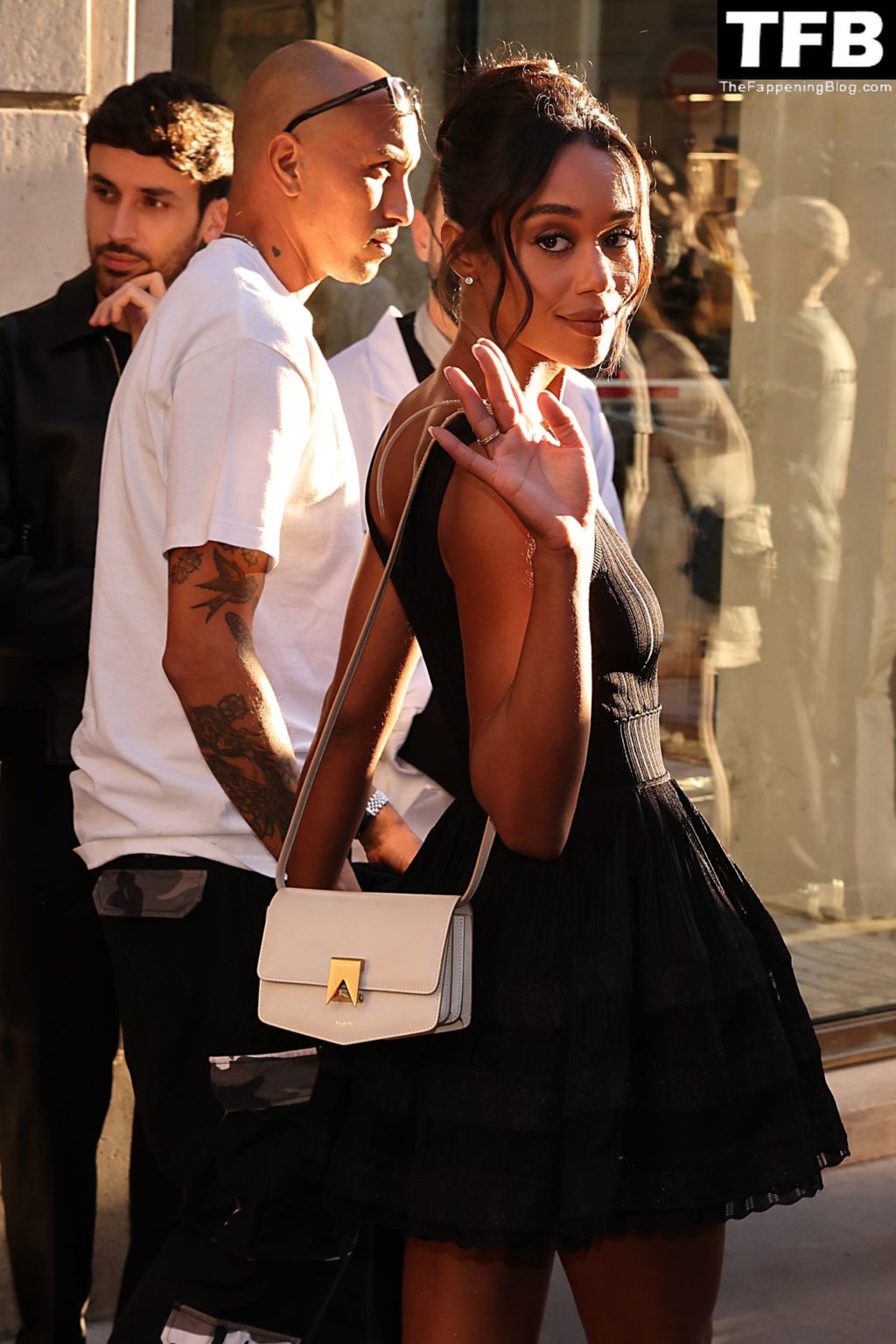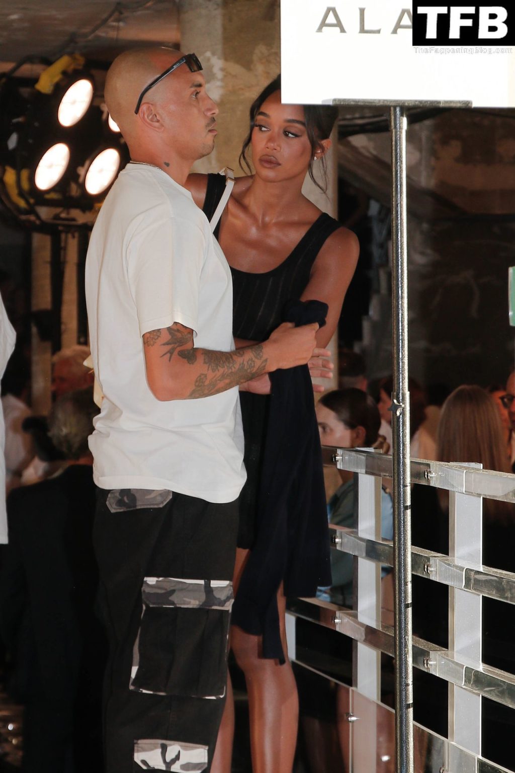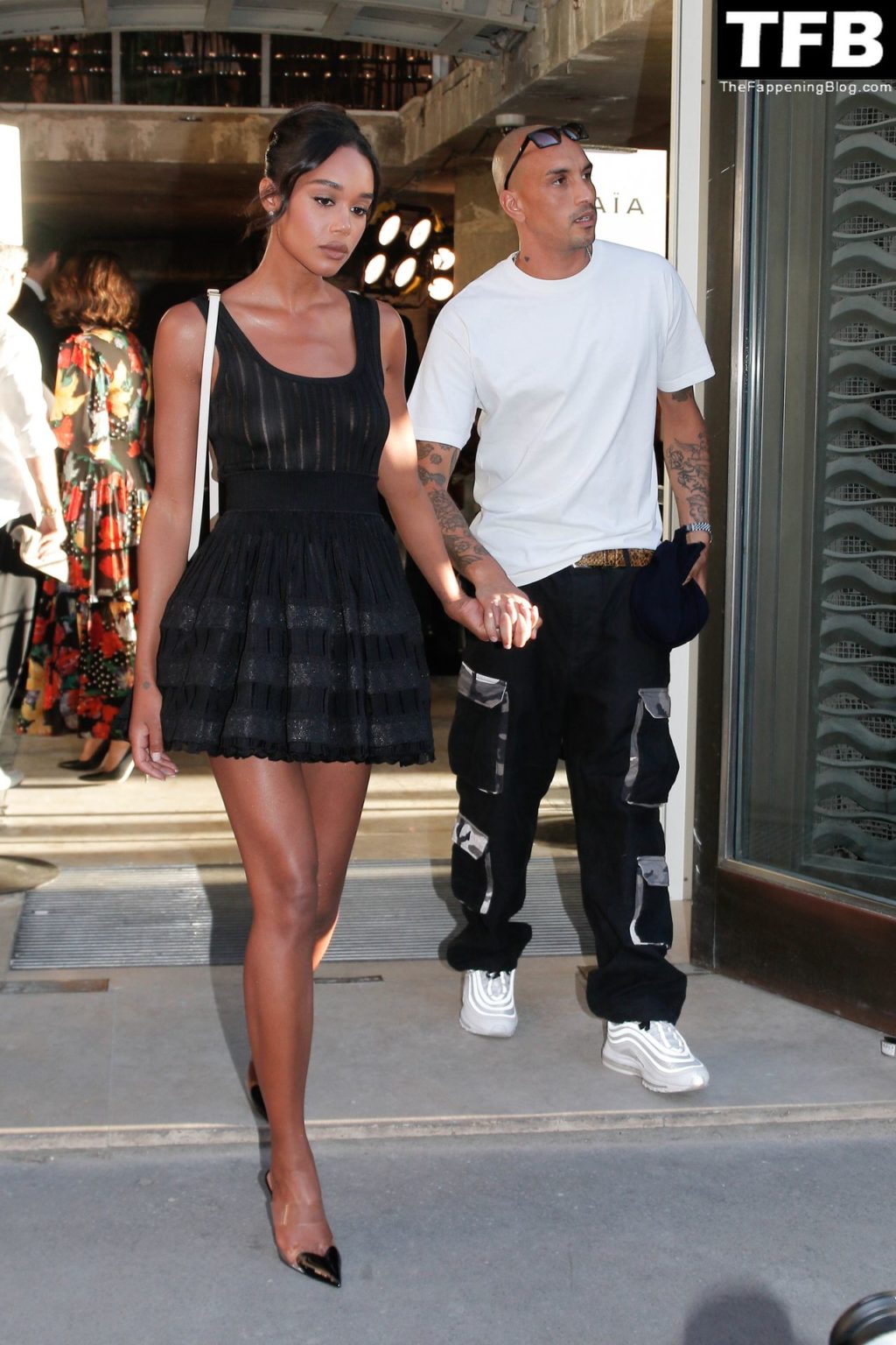 La estrella de The Fappening Laura Harrier y su novio Sam Jarou fueron vistos saliendo del desfile de Alaia durante la Semana de la Moda de París, 07/03/2022.