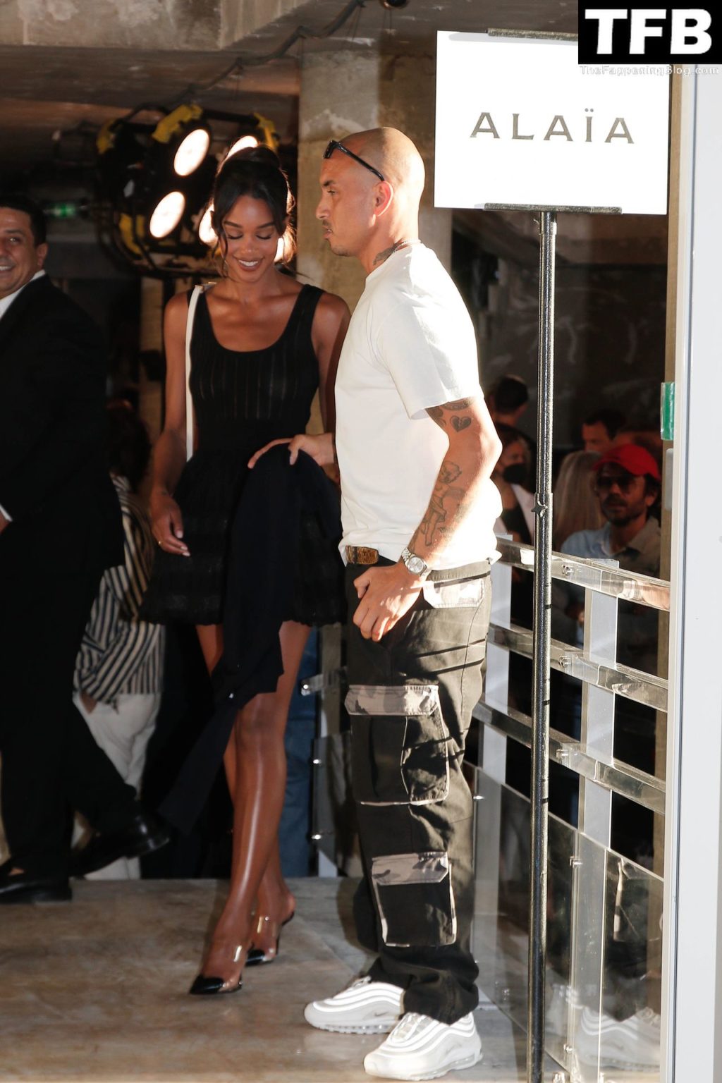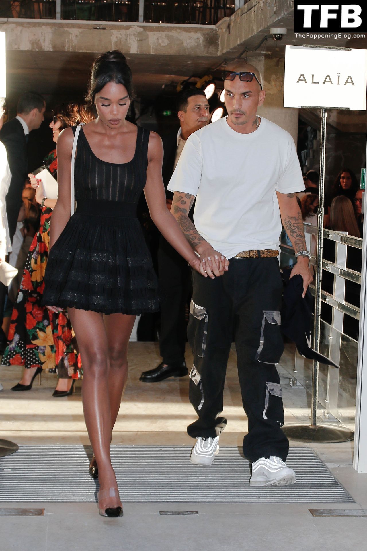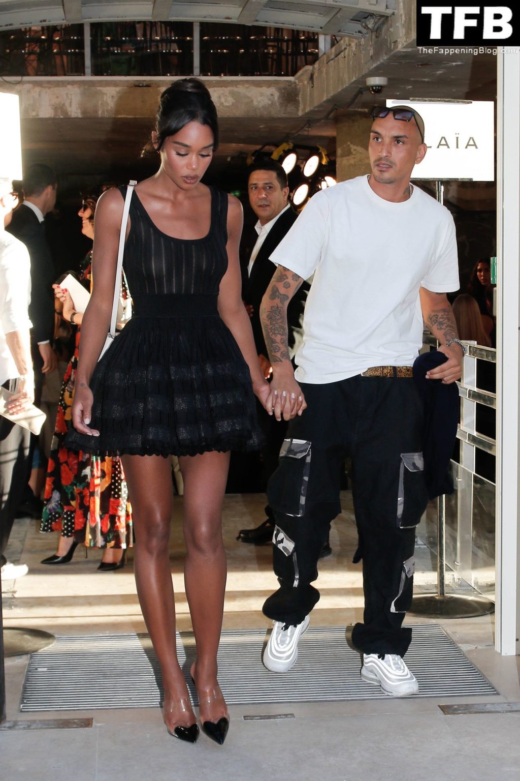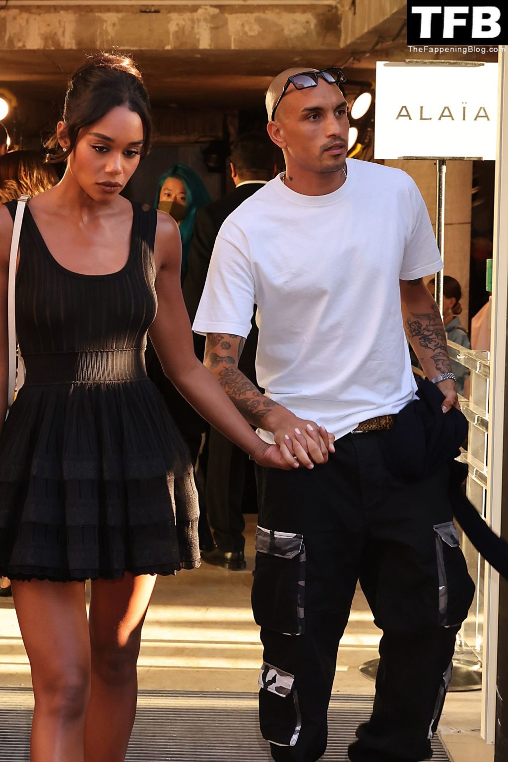 La estrella de The Fappening Laura Harrier y su novio Sam Jarou fueron vistos saliendo del desfile de Alaia durante la Semana de la Moda de París, 07/03/2022.