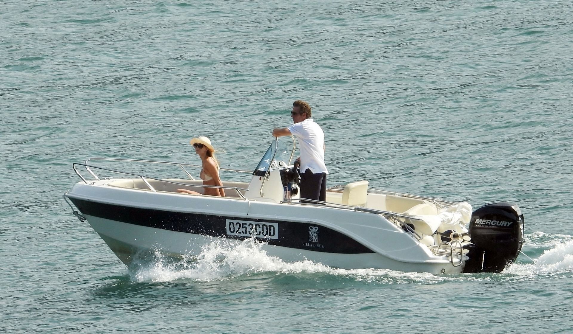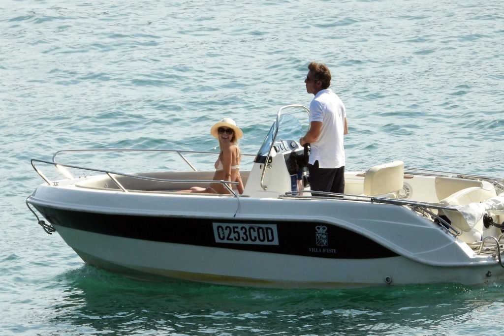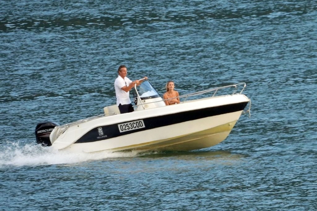 La pareja se aventuró en el agua dando un paseo en bote mientras exploraban sus hermosos alrededores en su escapada romántica juntos.