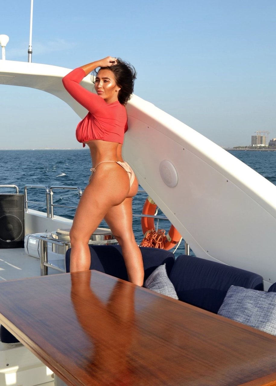 Sexy estrella de reality Lauren Goodger mostró su cuerpo tonificado mientras disfrutaba de un paseo en barco bajo el sol árabe durante su estancia en el lujoso Hotel FIVE Palm Jumeirah, 02/05/2019. La ex estrella de TOWIE disfrutó del sol de Dubái mientras posaba con su bikini colorido mostrando sus curvas y trasero.