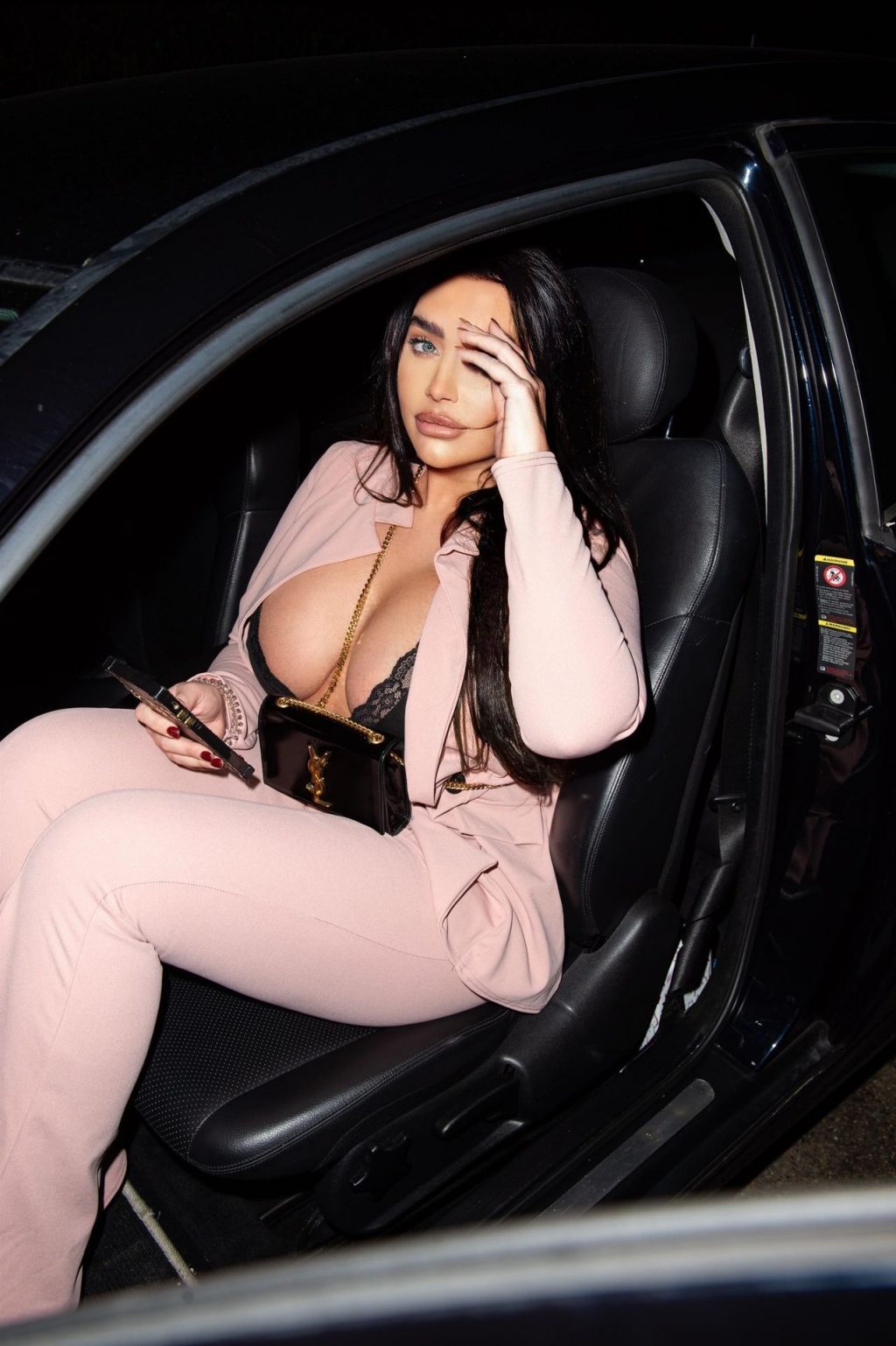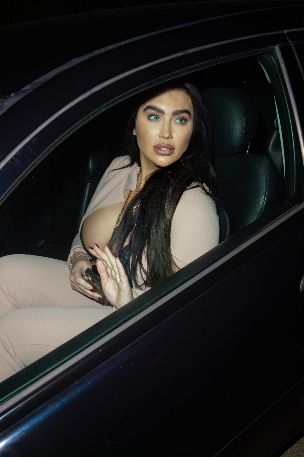 La ex estrella de TOWIE es fotografiada llegando al club con un traje rosa y un top de sujetador. Lauren, quien recientemente habló sobre dejar los antidepresivos, parece estar de muy buen ánimo mientras se dirige al club.