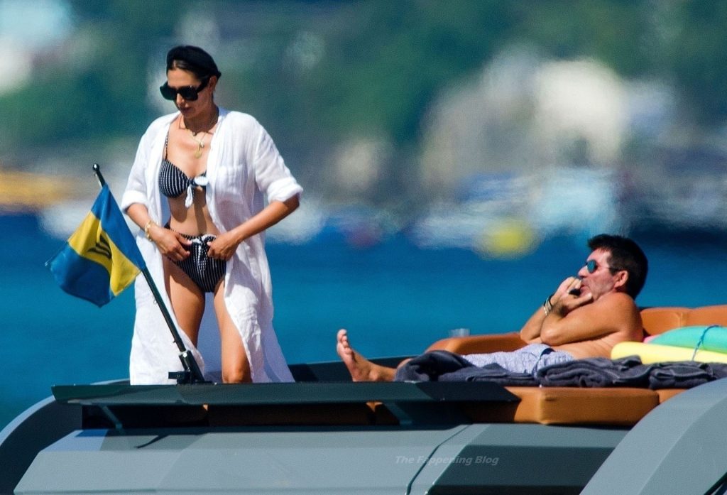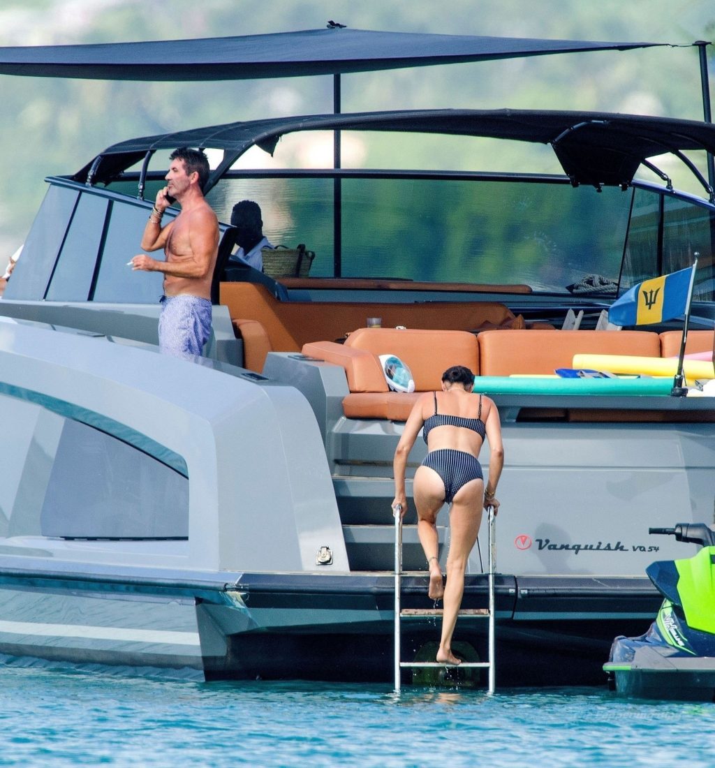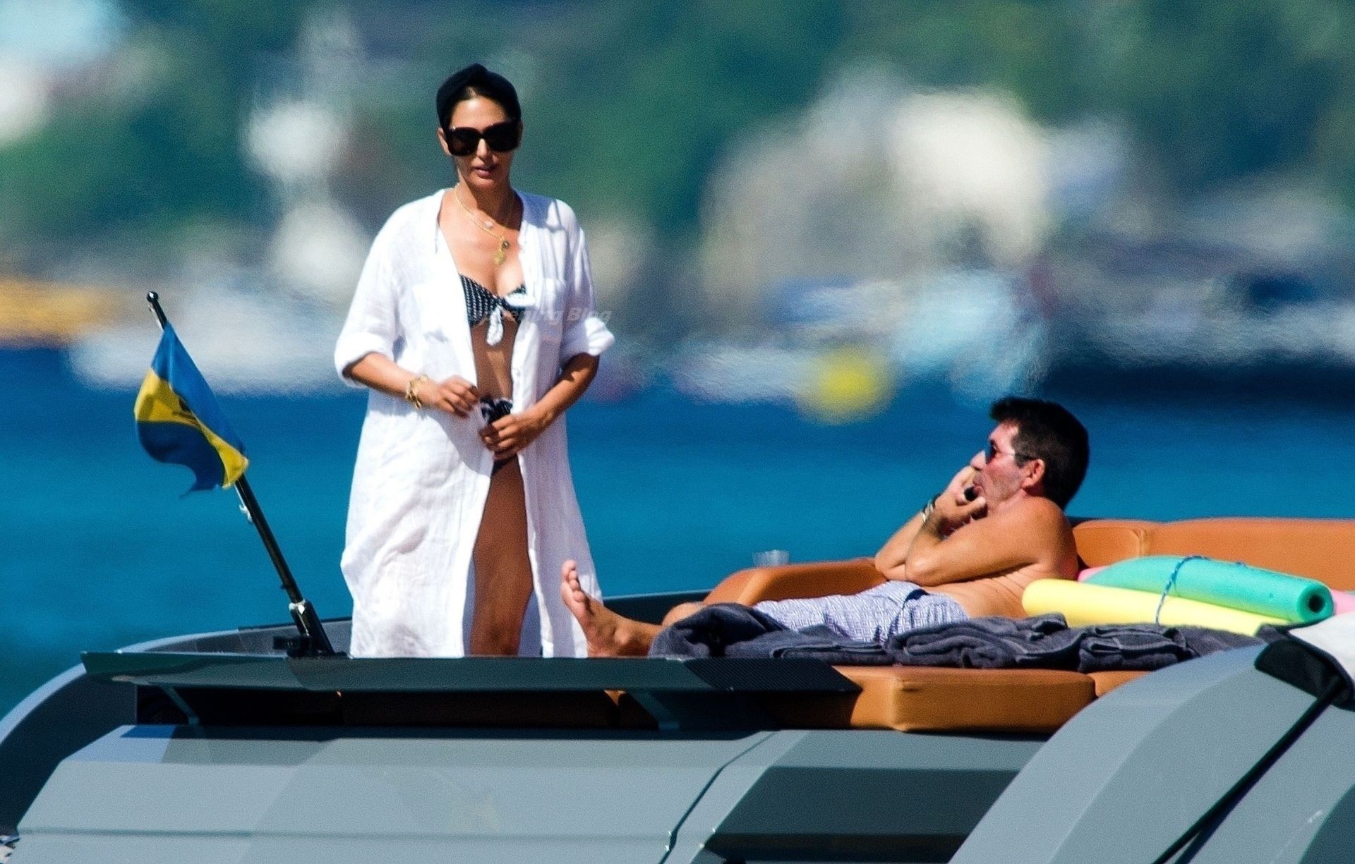 Simon se aseguró de divertirse durante su descanso surfeando algunas olas en su moto acuática mientras su pareja Lauren Silverman se relajaba con un cigarrillo en la boca, mostrando su elegante figura con su pequeño y escaso bikini.