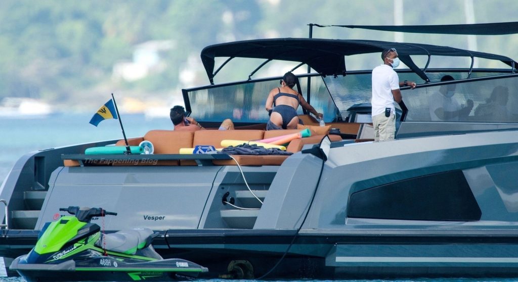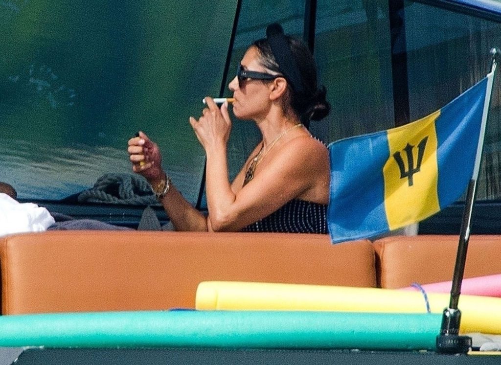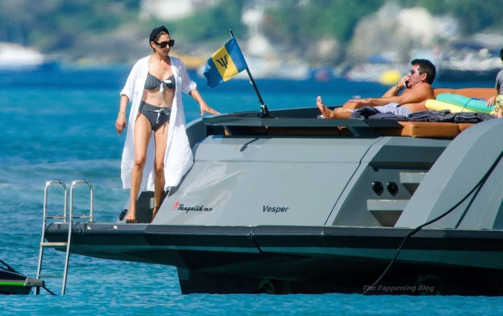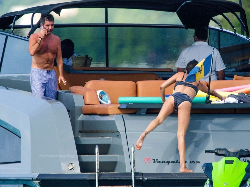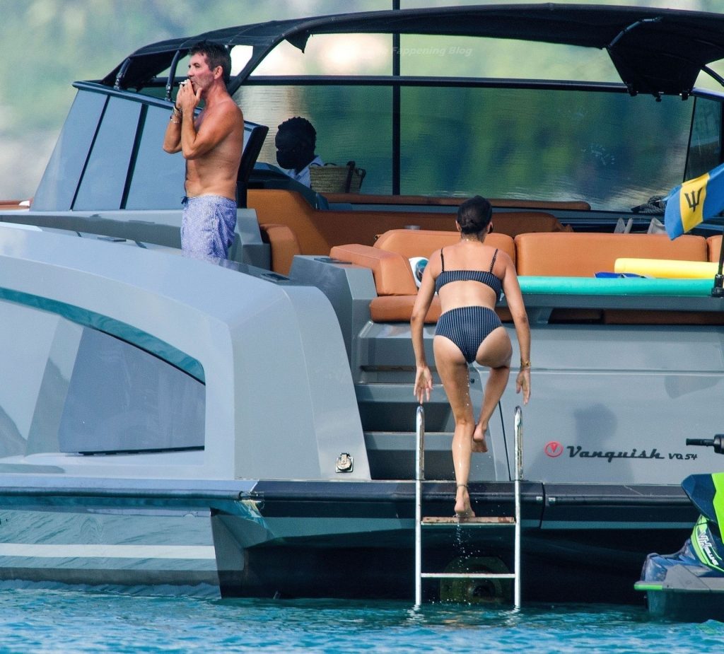 Simon se aseguró de divertirse durante su descanso surfeando algunas olas en su moto acuática mientras su pareja Lauren Silverman se relajaba con un cigarrillo en la boca, mostrando su elegante figura con su pequeño y escaso bikini.