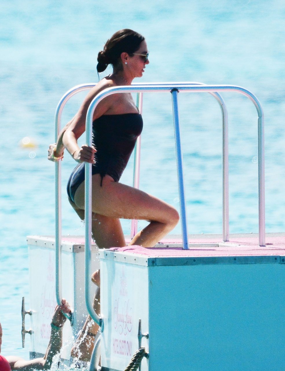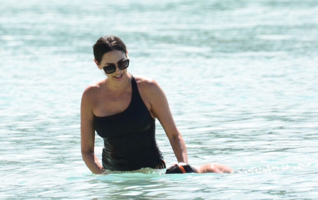 La novia de Simon Cowell, Lauren Silverman de 41 años, fue fotografiada con un traje de baño negro de una pieza en la playa de Barbados, 18/12/2018.