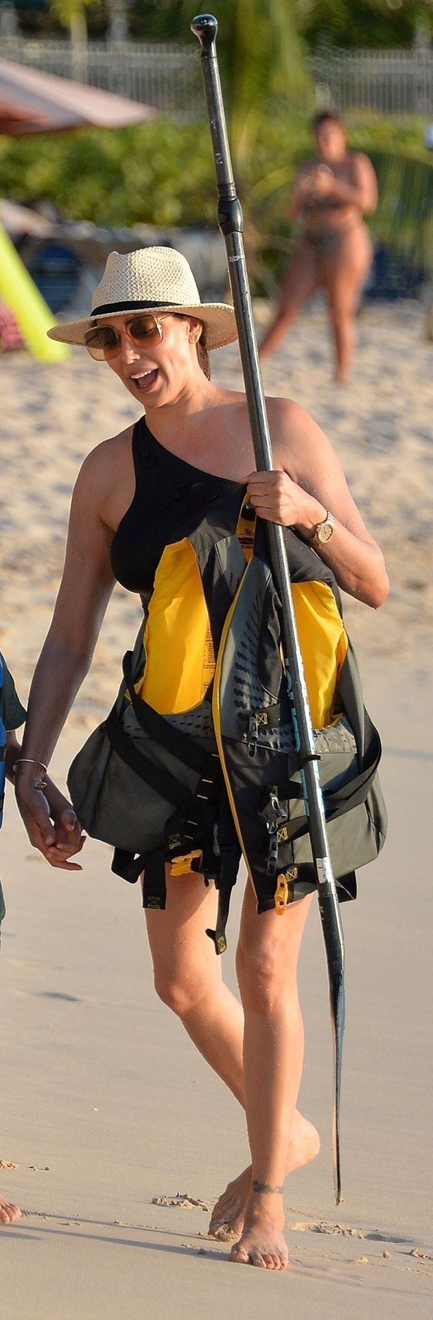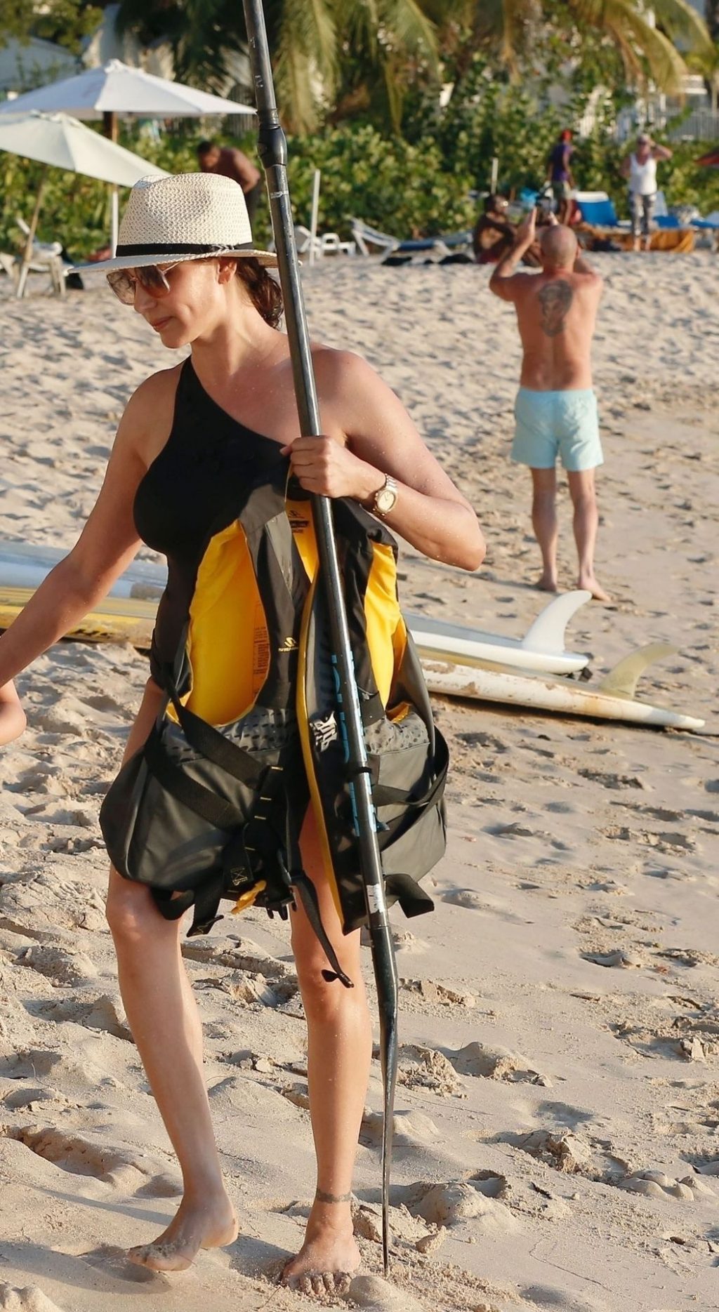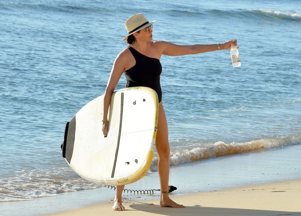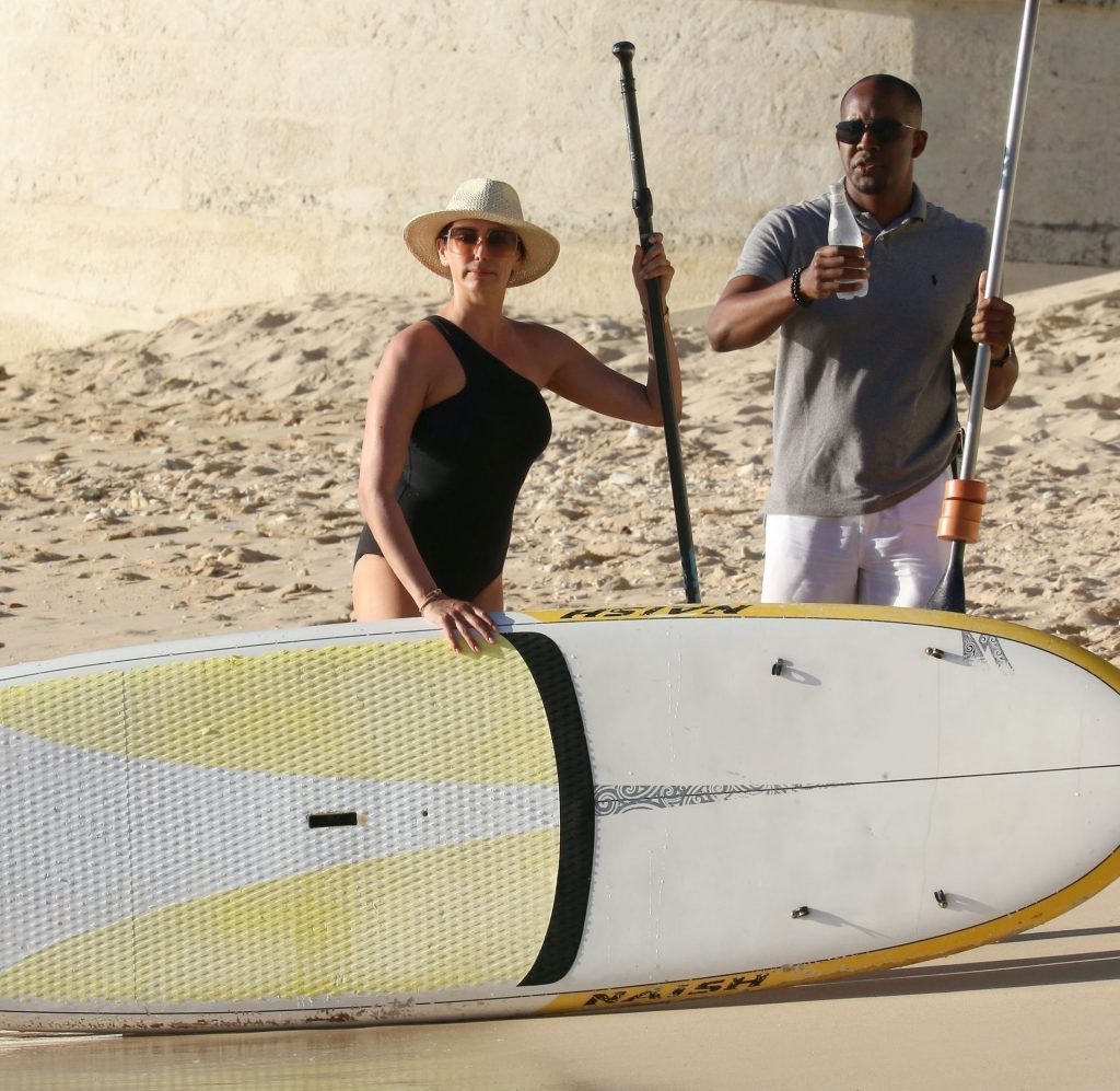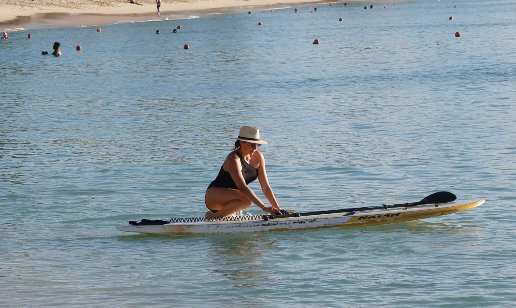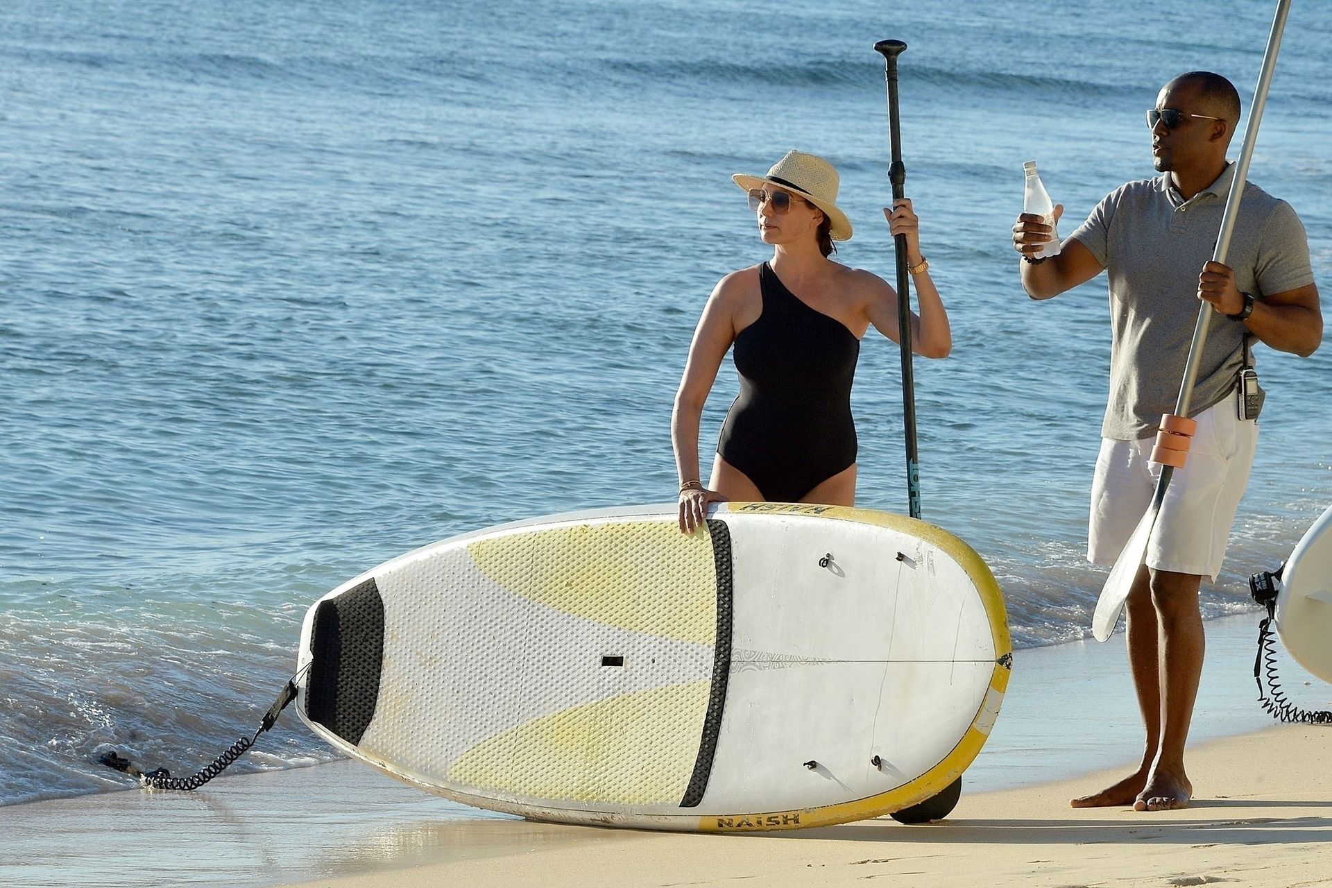 Lauren también lucía genial con su traje de baño negro, mostrando su trasero, piernas, pechos, y ella atrapa las olas practicando paddleboard en el mar.