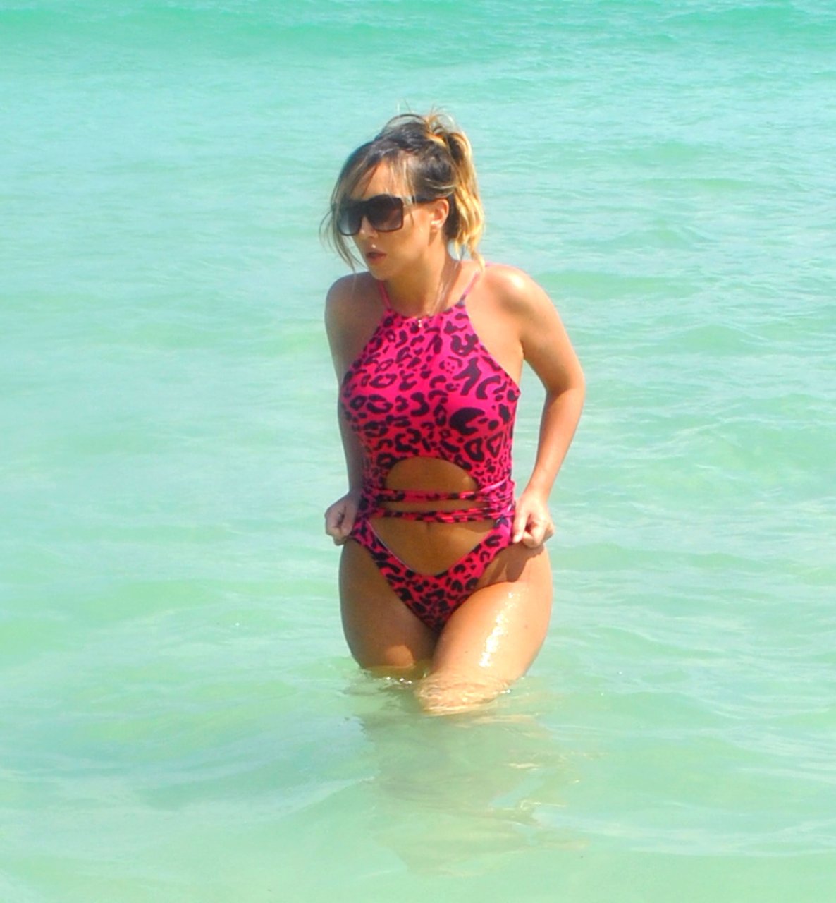 Model y personalidad de TV Lauryn Goodman aparece relajándose en la playa en Cabo Verde, 05/03/2018.