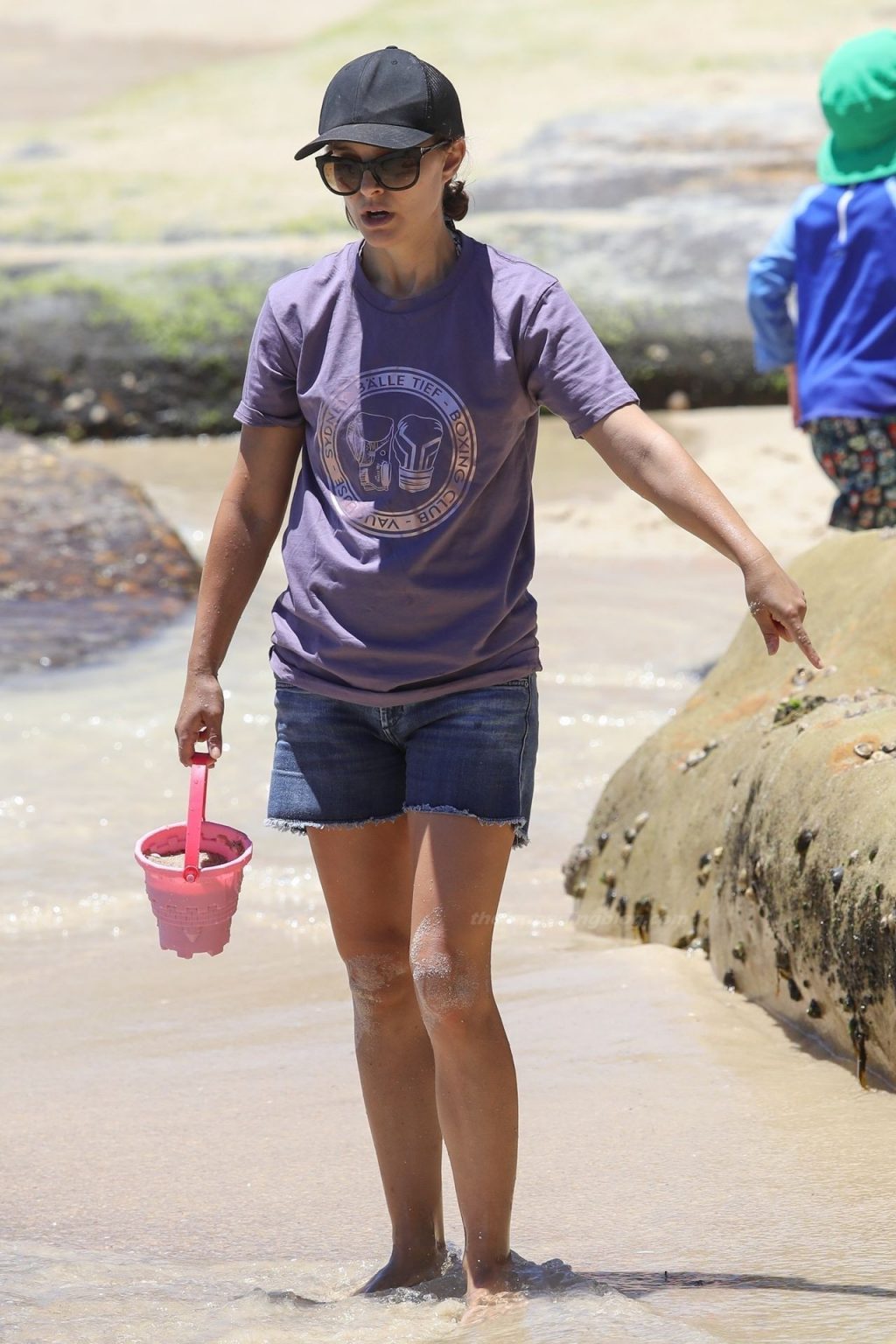 ¡La vida es una playa! Natalie Portman va a buscar conchas marinas con su familia en Sídney, 01/10/2021. La actriz también disfrutó de algunas muestras raras de afecto público con su esposo Benjamin Millepied.