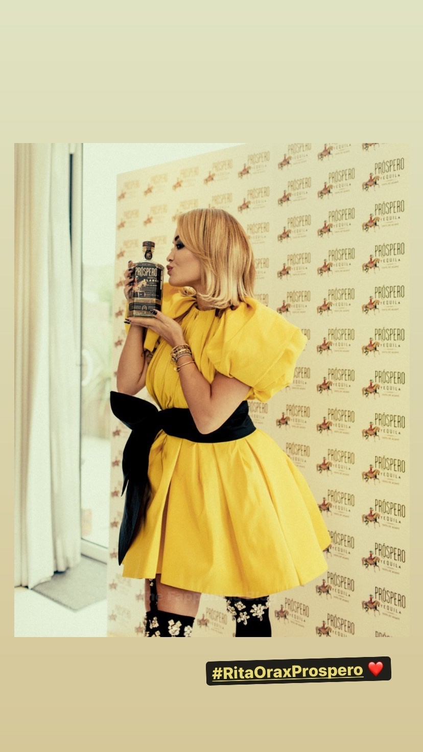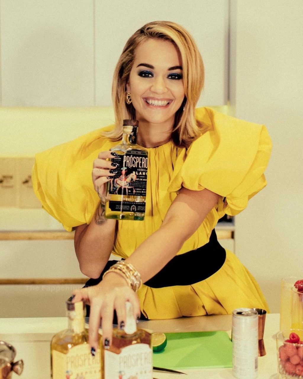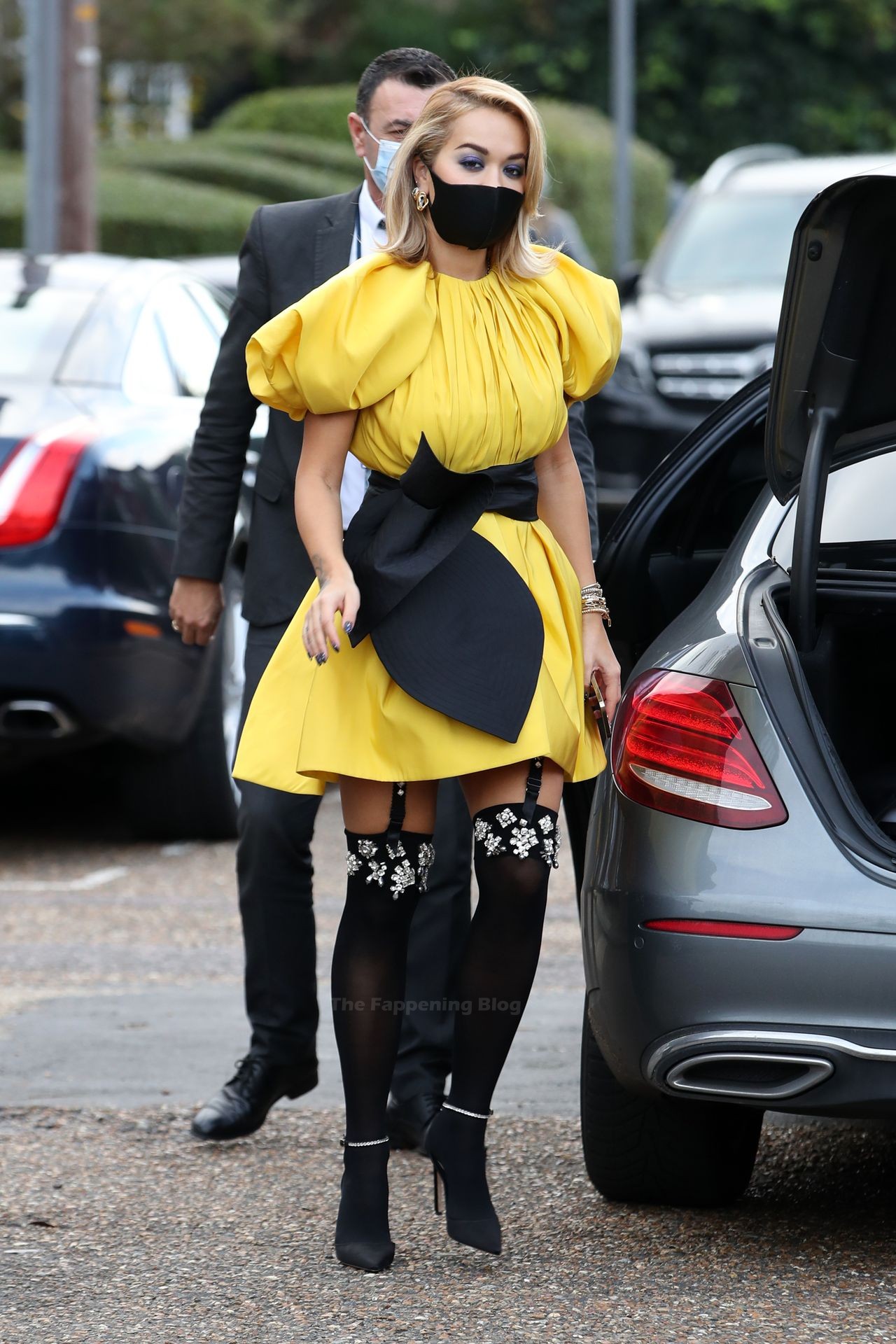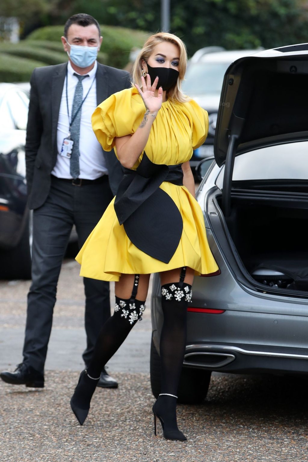 La cantante Rita Ora muestra sus piernas sexys mientras es vista con un vestido amarillo en Londres, 23/11/2020.