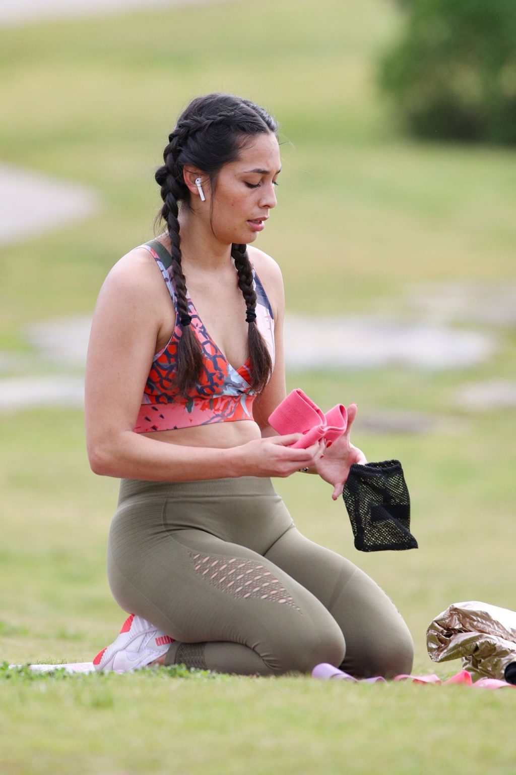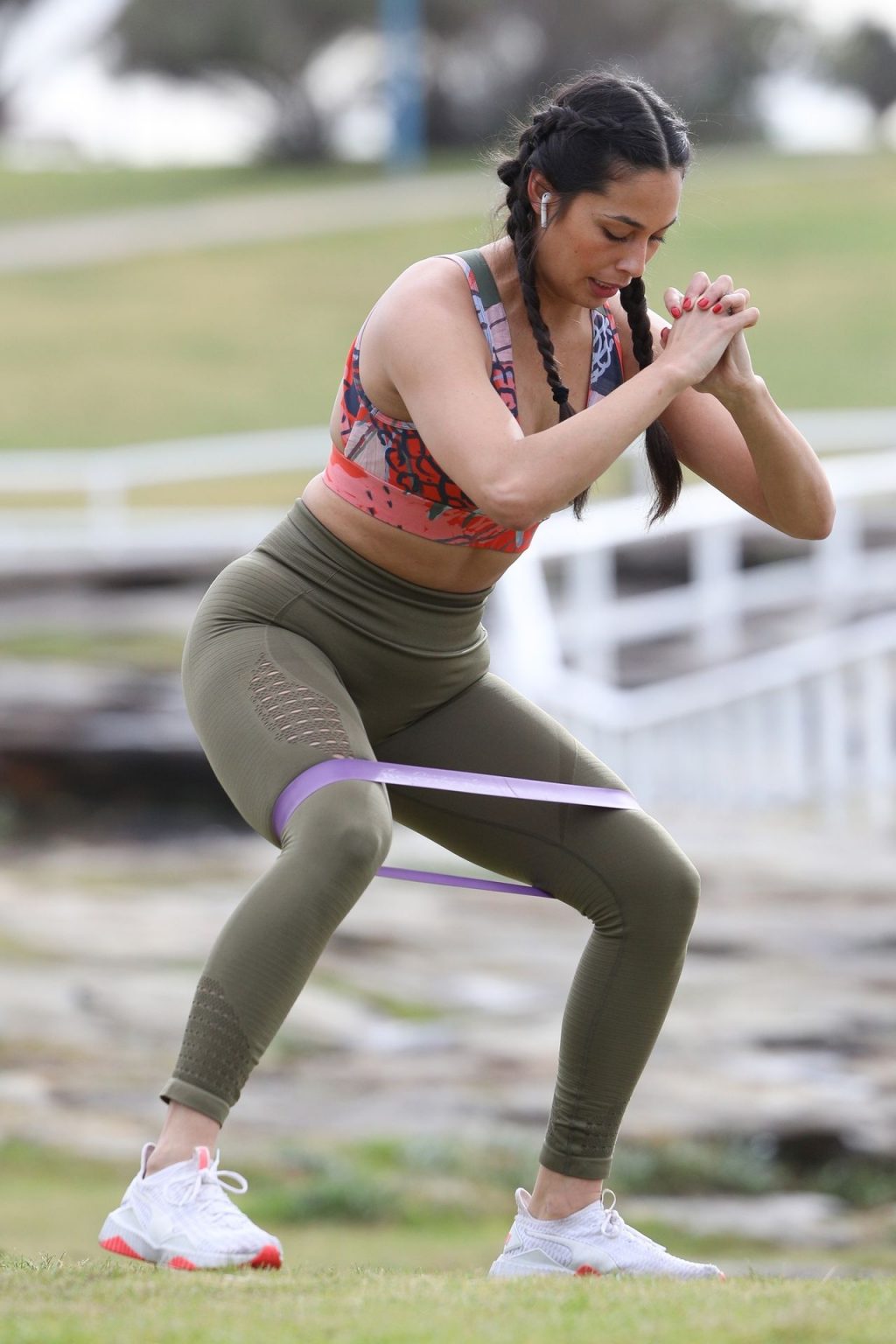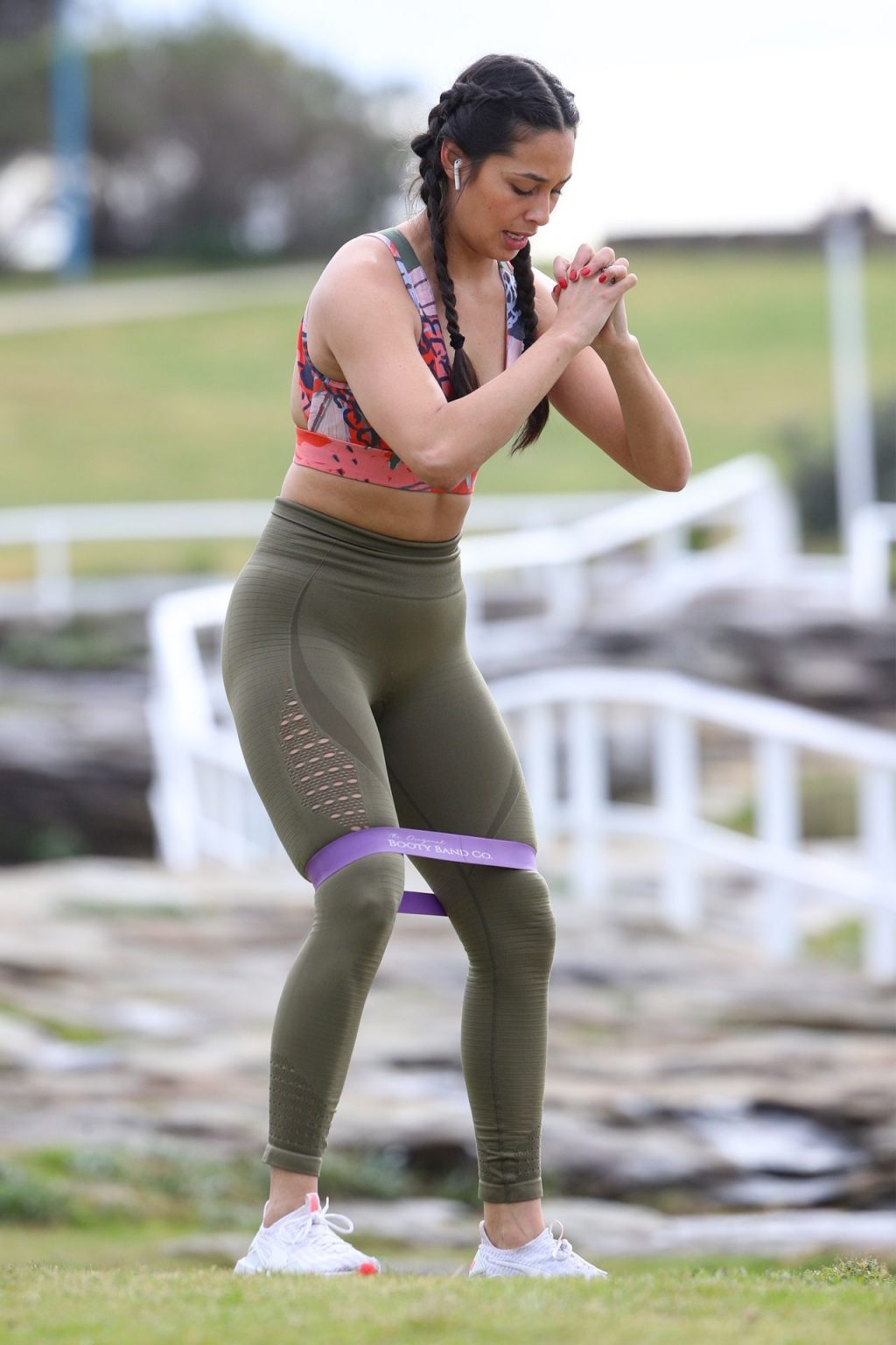La concursante de The Bachelor Australia 2020, Leilani Vakaahi, fue fotografiada durante su entrenamiento matutino en Coogee, Sídney, 08/12/2020.