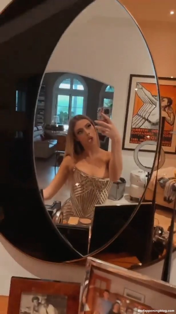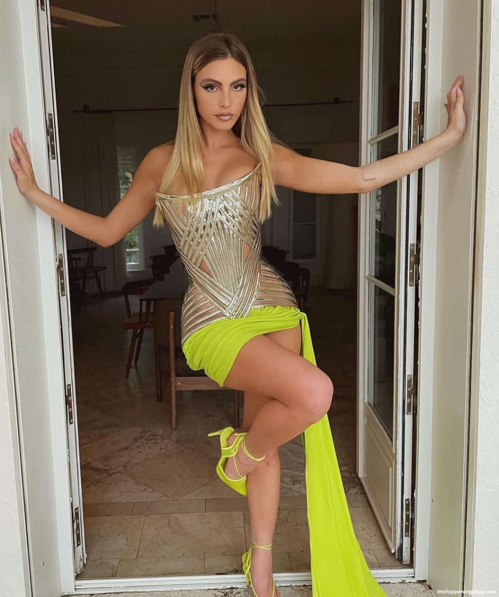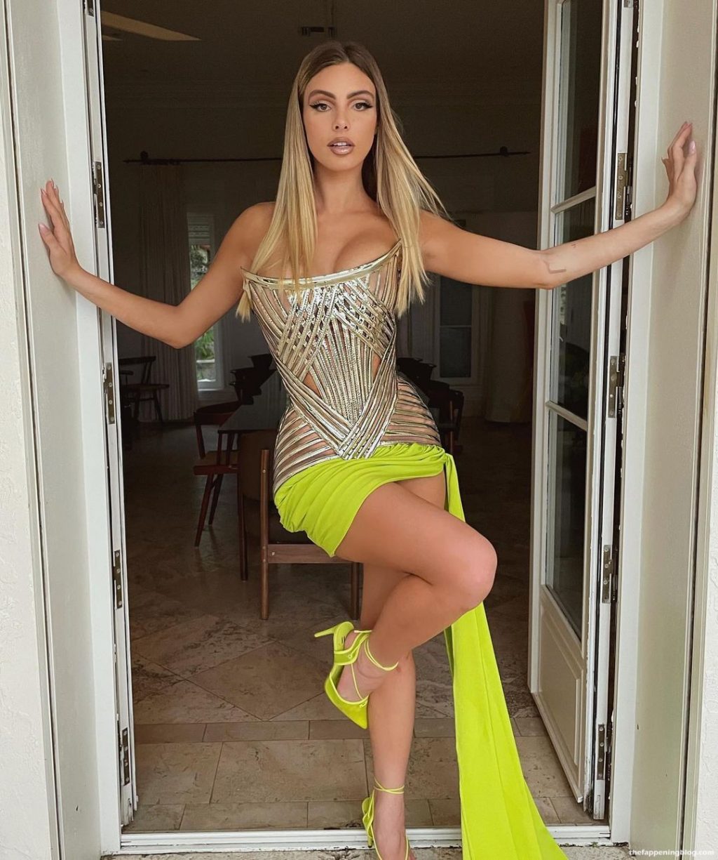 La estrella de las redes sociales Lele Pons muestra un bonito escote y pezones, vistiendo un hermoso vestido de Lena Berisha – Instagram, 24/07/2021.