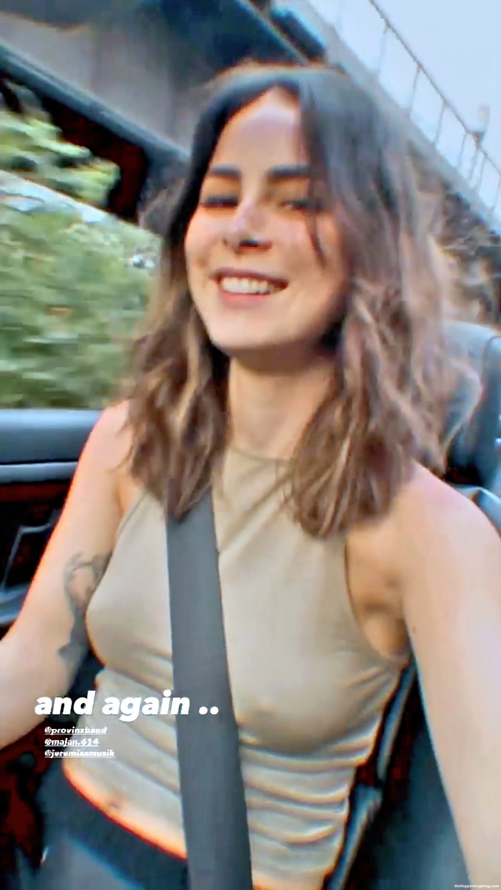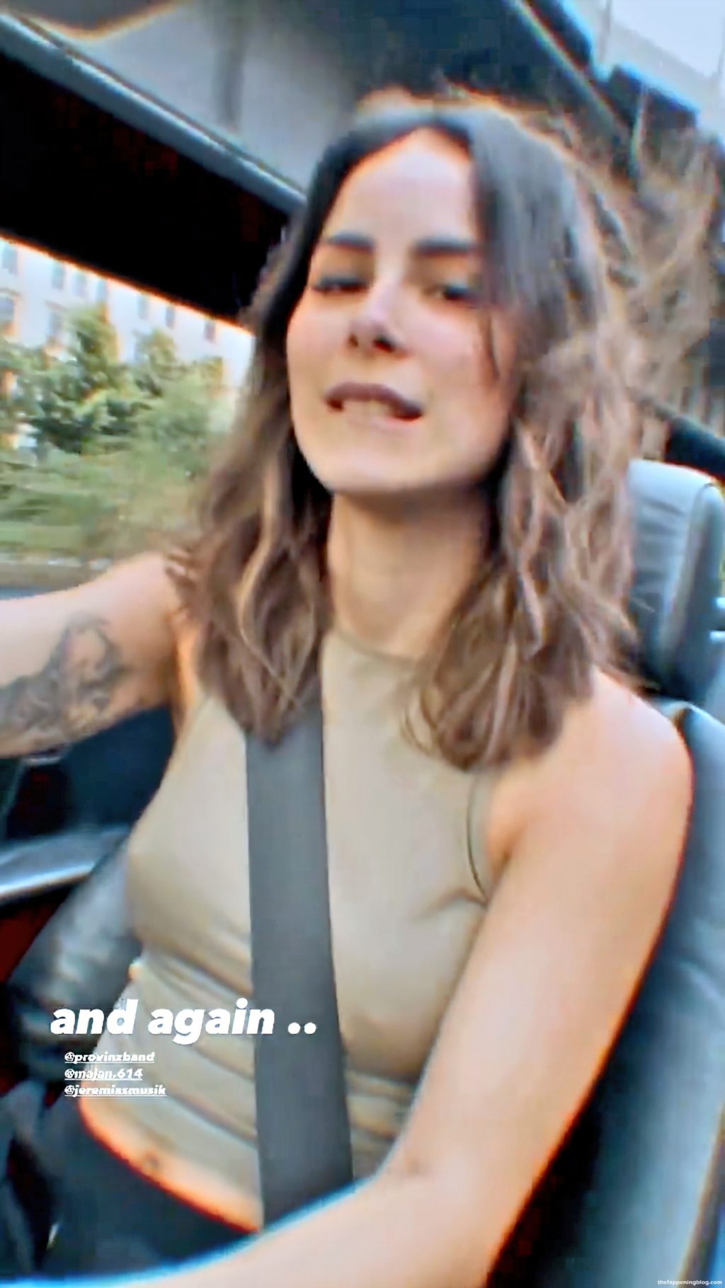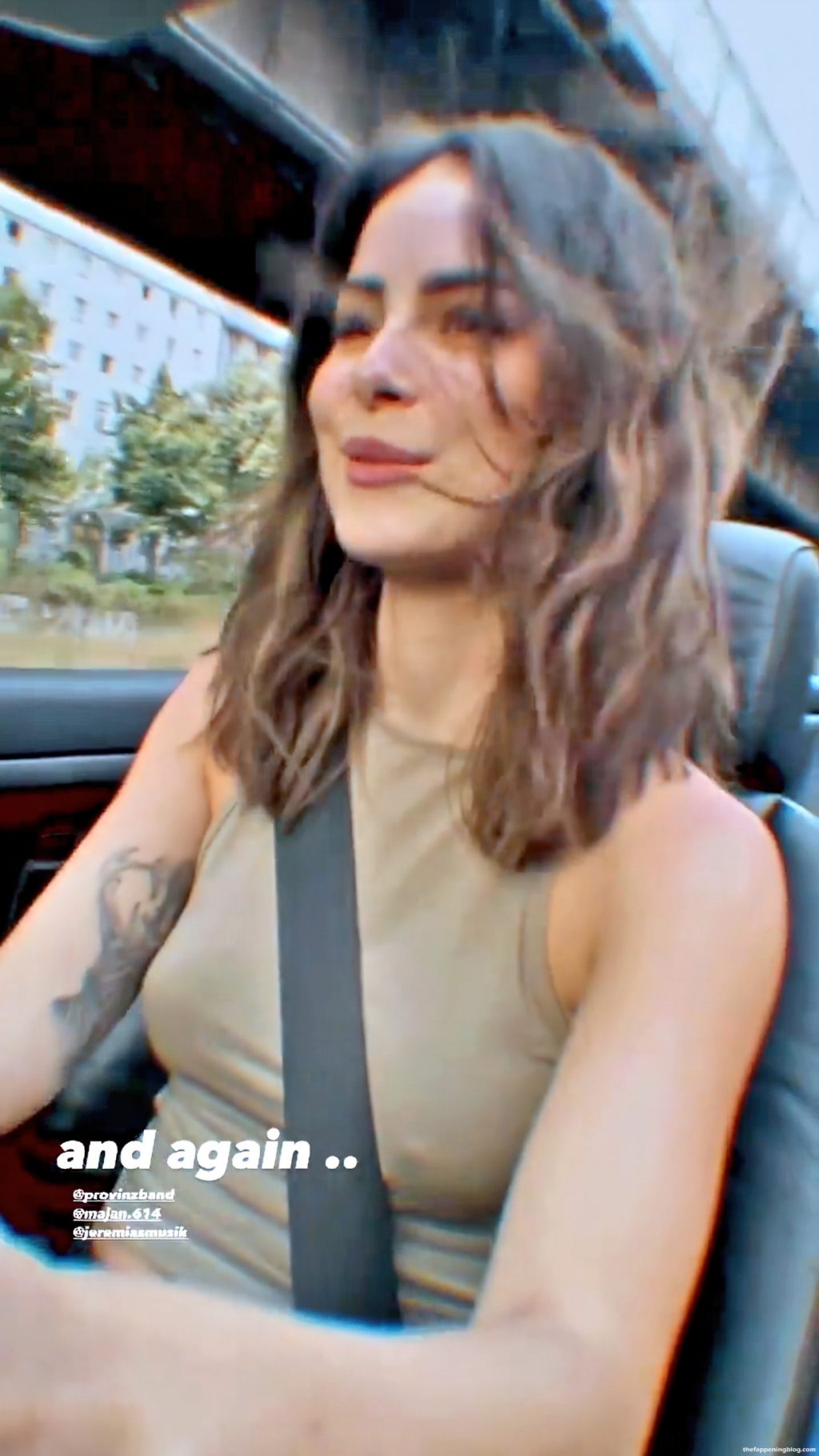 Singer Lena Meyer-Landrut displays her pokies while driving without a bra – Instagram, 13/08/2021.