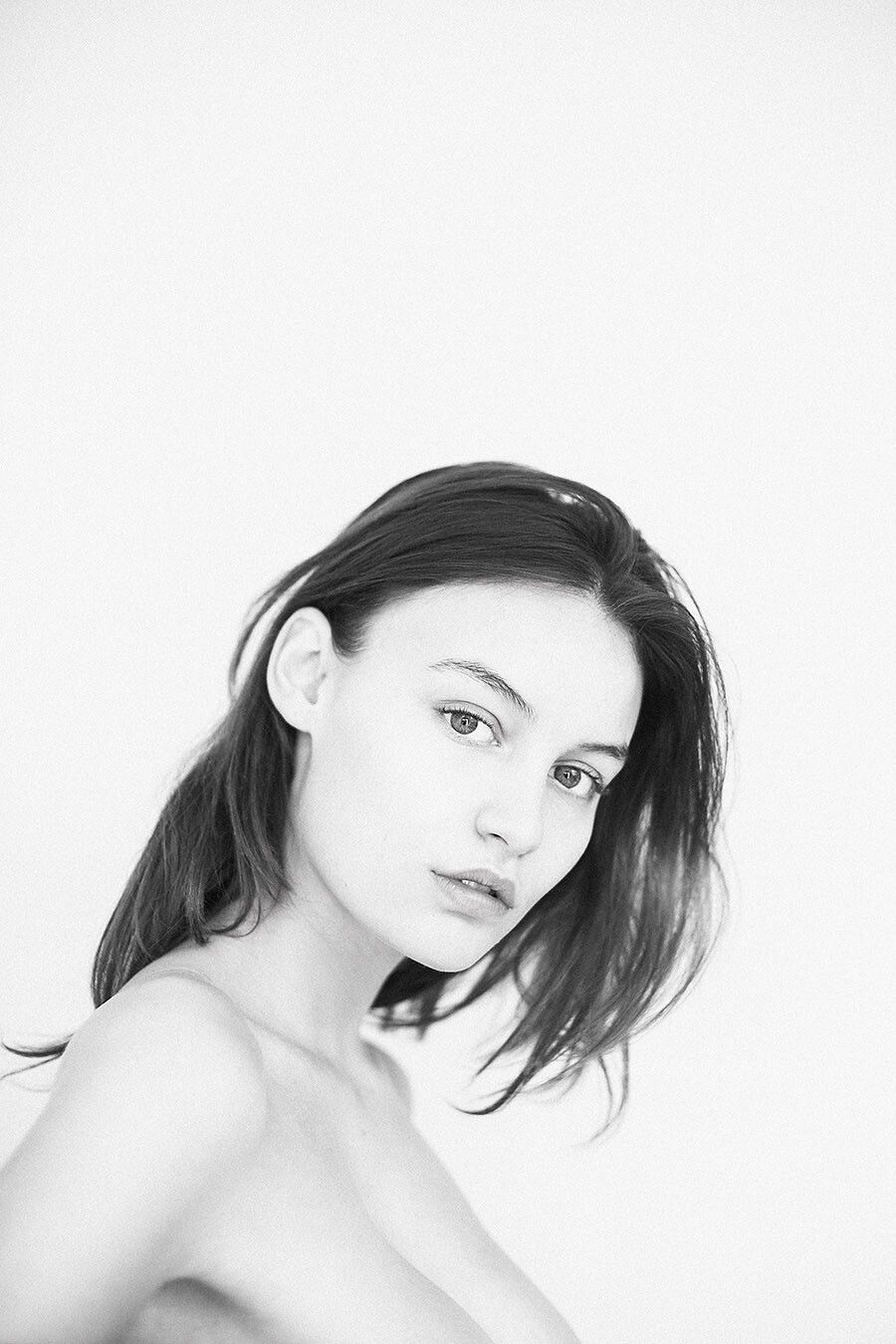 Model Lena Simonne se desnuda en una sesión fotográfica de Francois Berthier (2020). La belleza francesa muestra sus perfectos pechos y trasero, cubriendo su vagina.