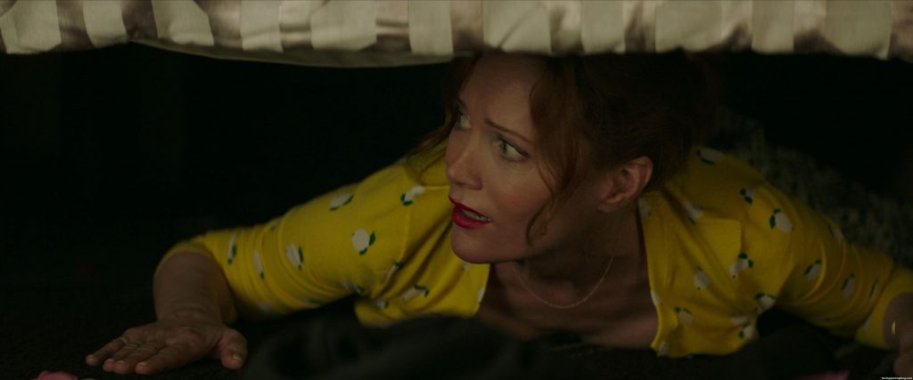 What a sham! Leslie “shows” boobs and butt while walking in front of Jason Bateman, but the boobs are CGI and the butt belongs to a double.