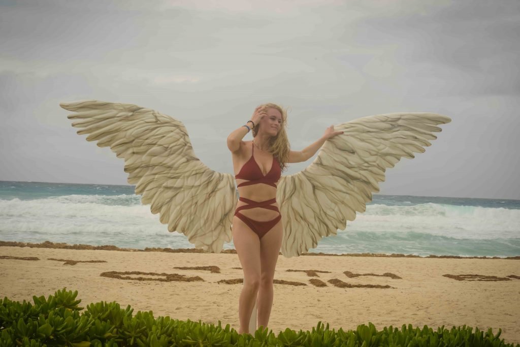 Leven lucía impresionante con un bikini rojo sangre, que en un momento combinó con un par de alas de ángel, mientras Tilky mostraba su torso tonificado con un par de pantalones cortos de baño grises.