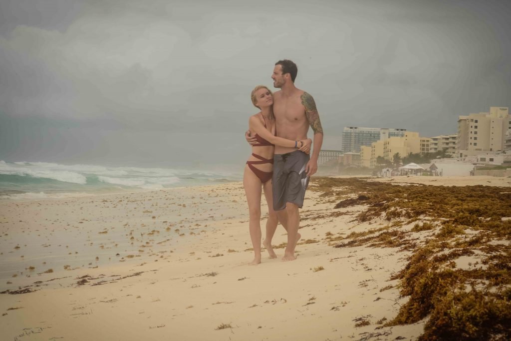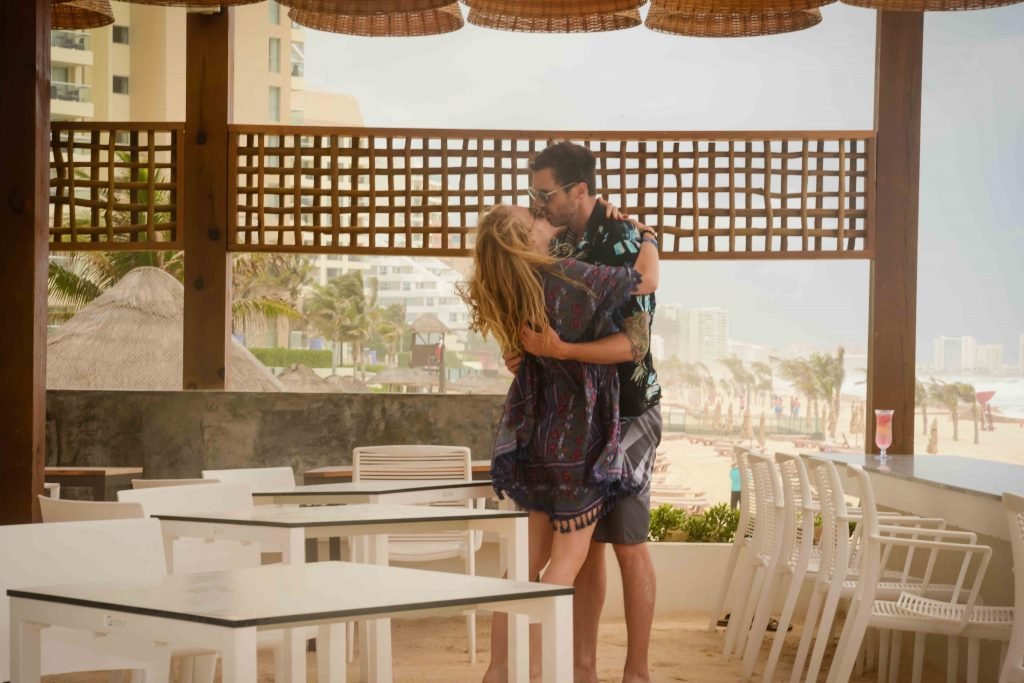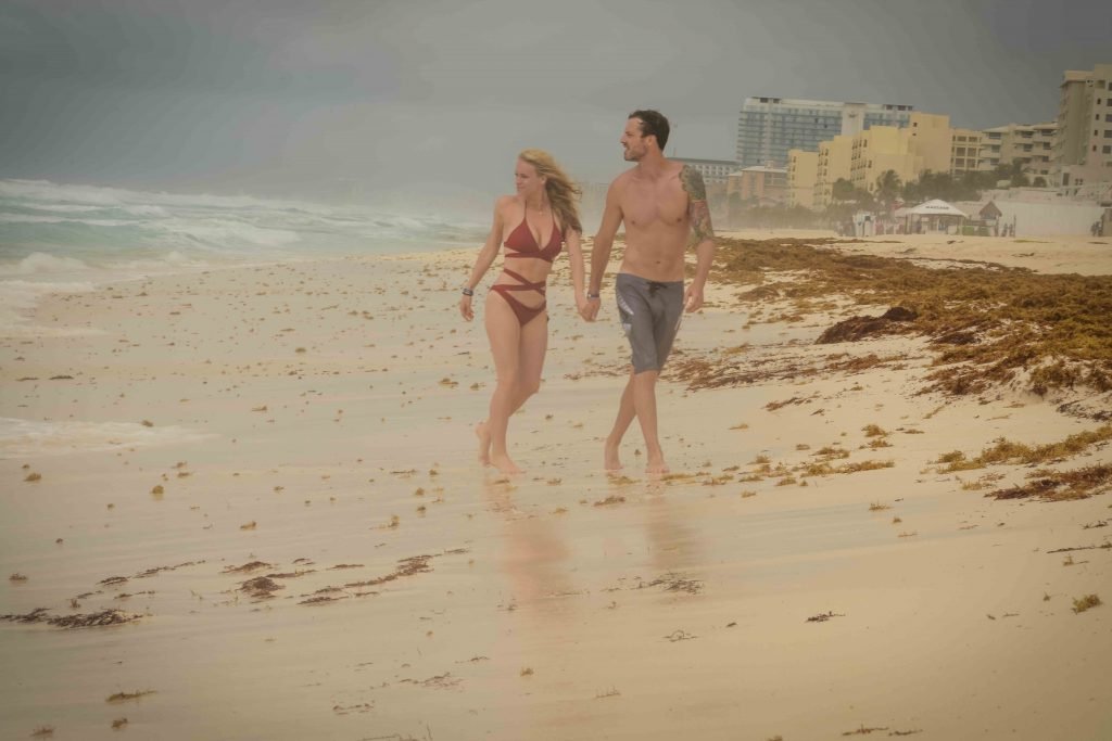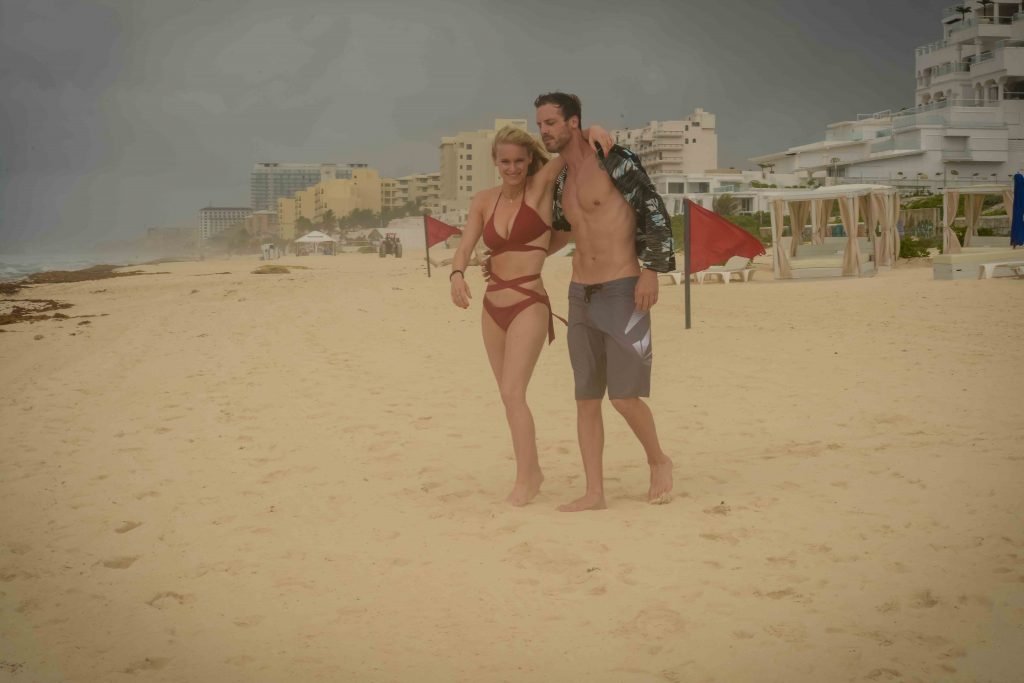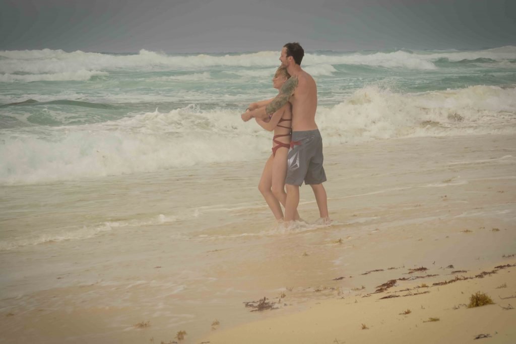 La pareja fue vista disfrutando de cócteles en su hotel, el Live Aqua Beach Resort Cancun, y no dejaron que la lluvia arruinara su paseo mientras enfrentaban la playa azotada por el viento y se aventuraban en las aguas agitadas para remar.