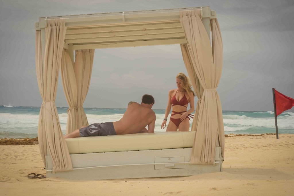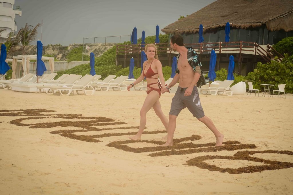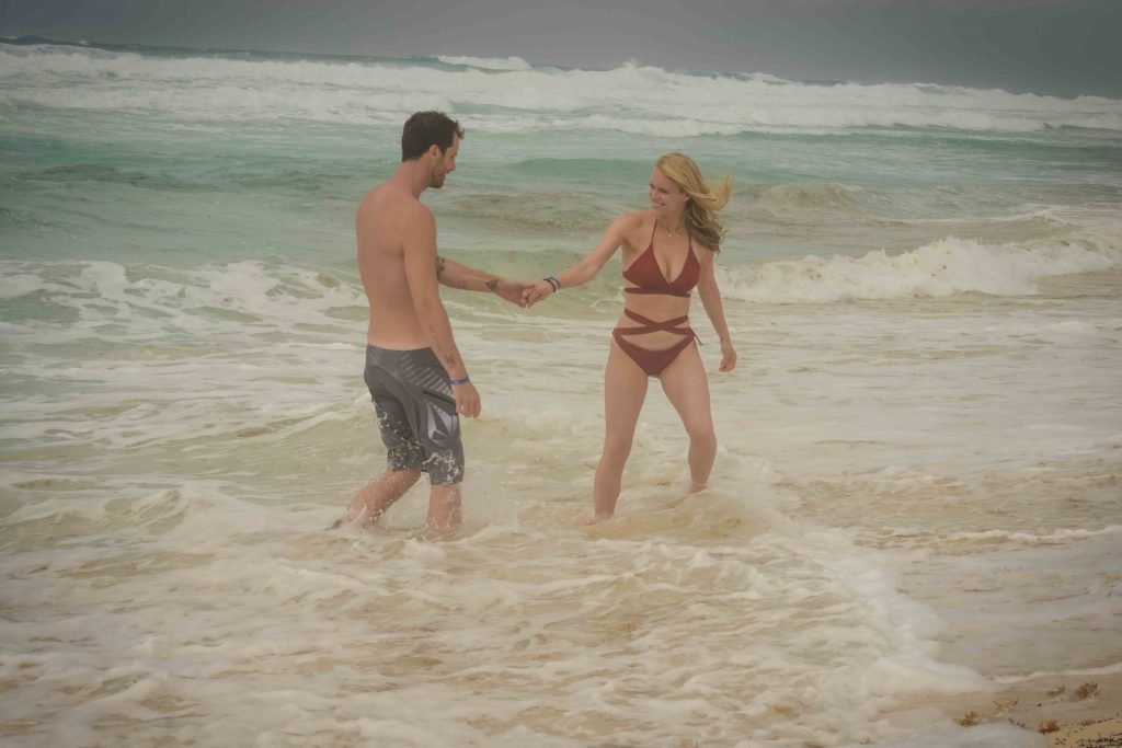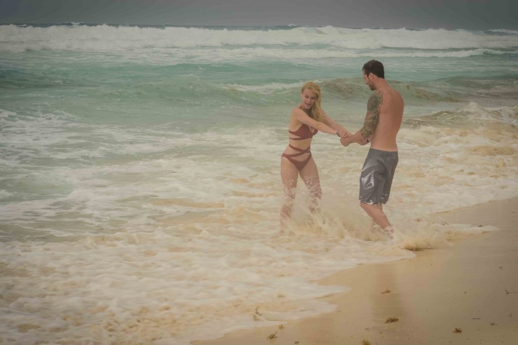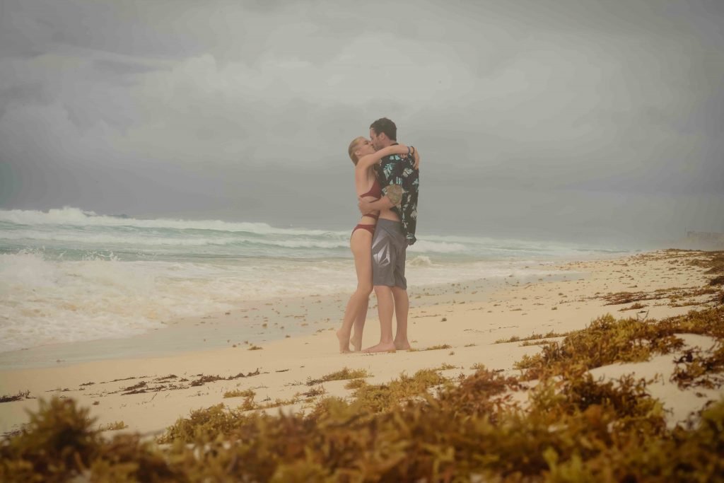 La pareja fue vista disfrutando de cócteles en su hotel, el Live Aqua Beach Resort Cancun, y no dejaron que la lluvia arruinara su paseo mientras enfrentaban la playa azotada por el viento y se aventuraban en las aguas agitadas para remar.