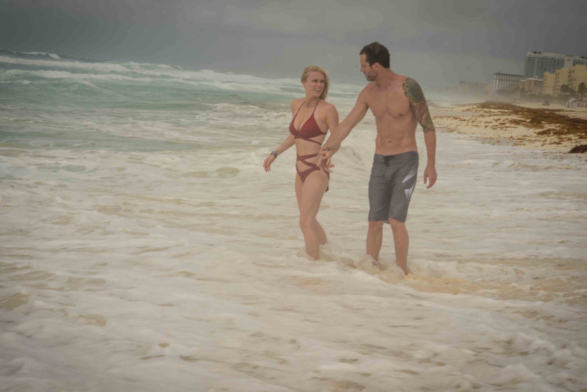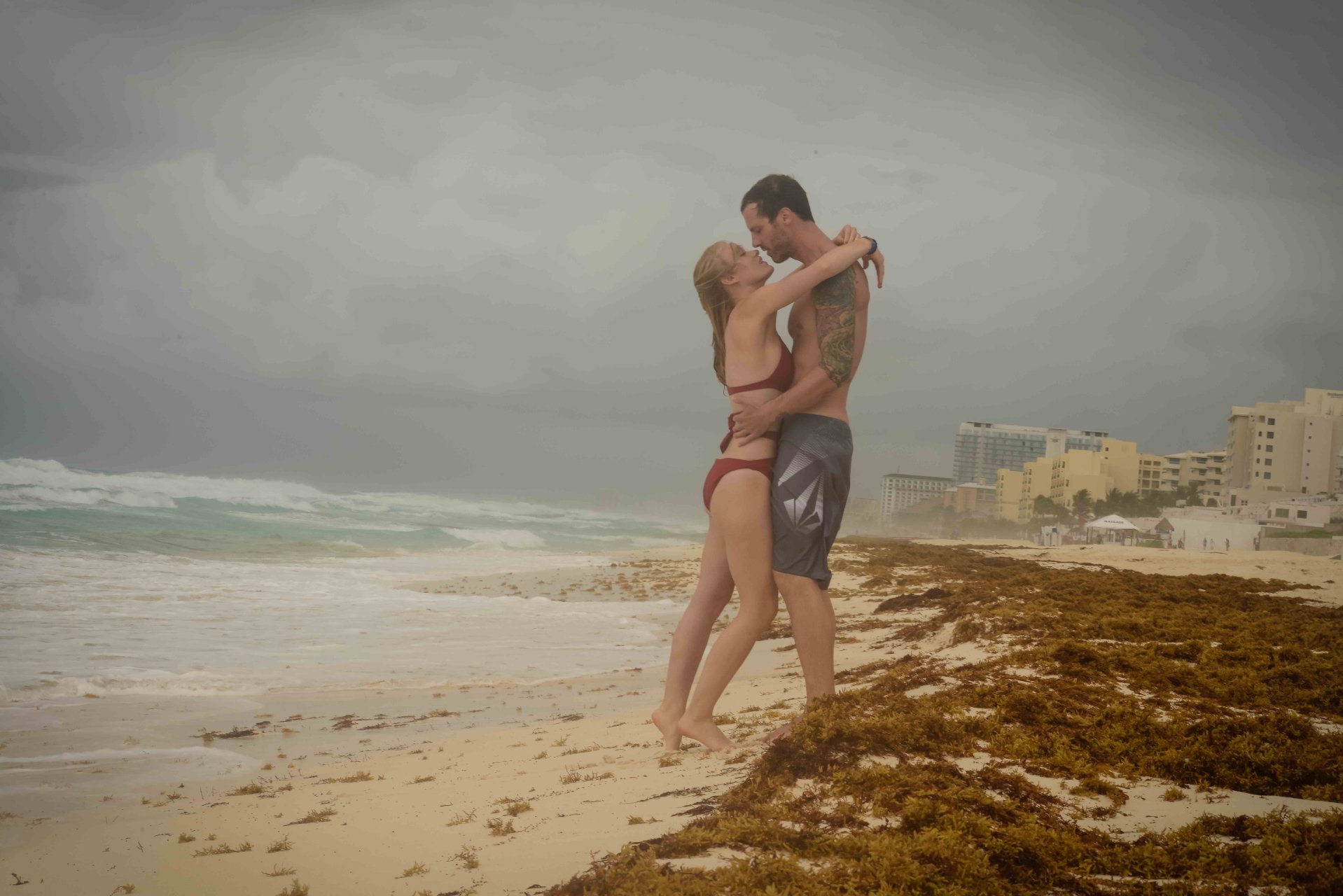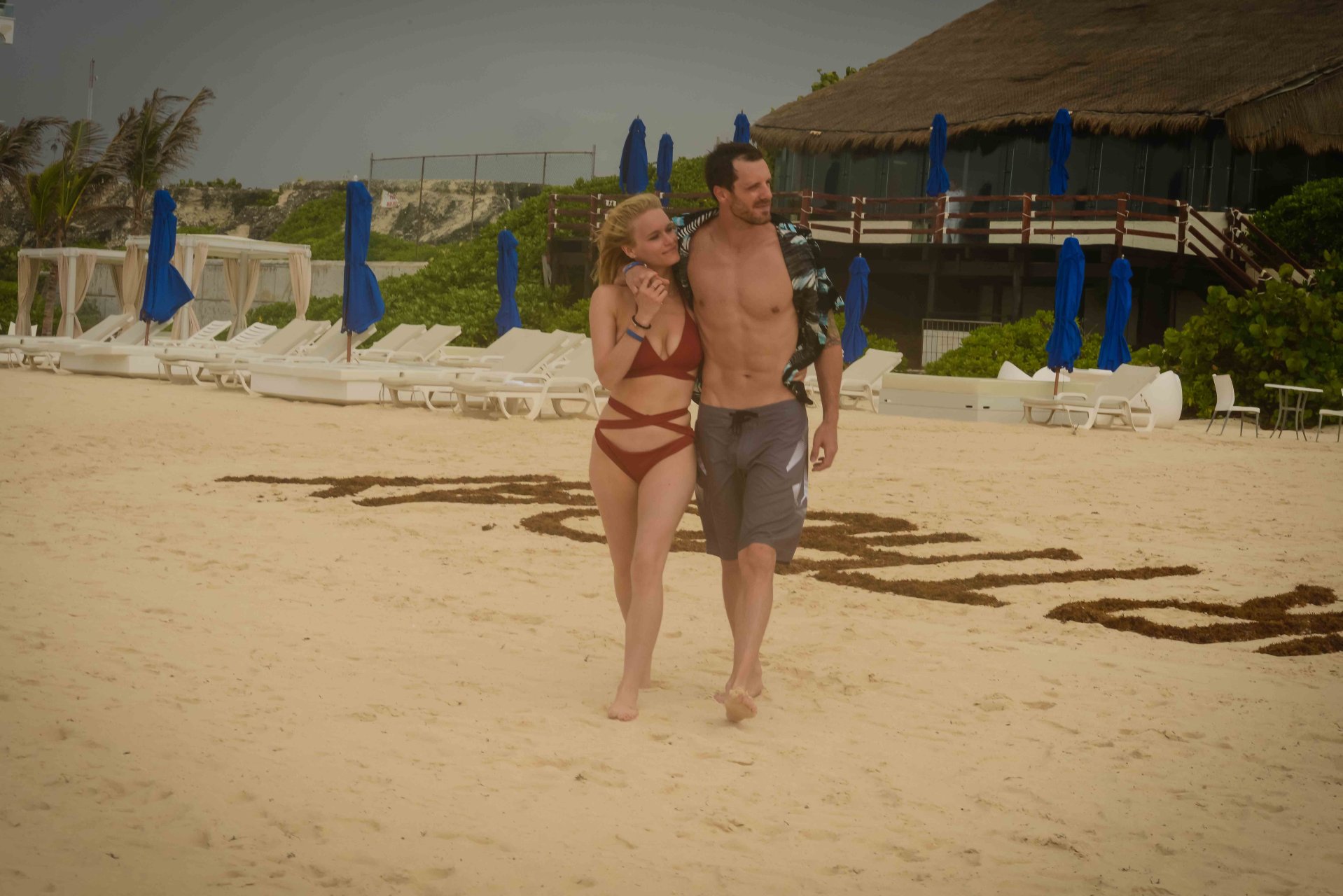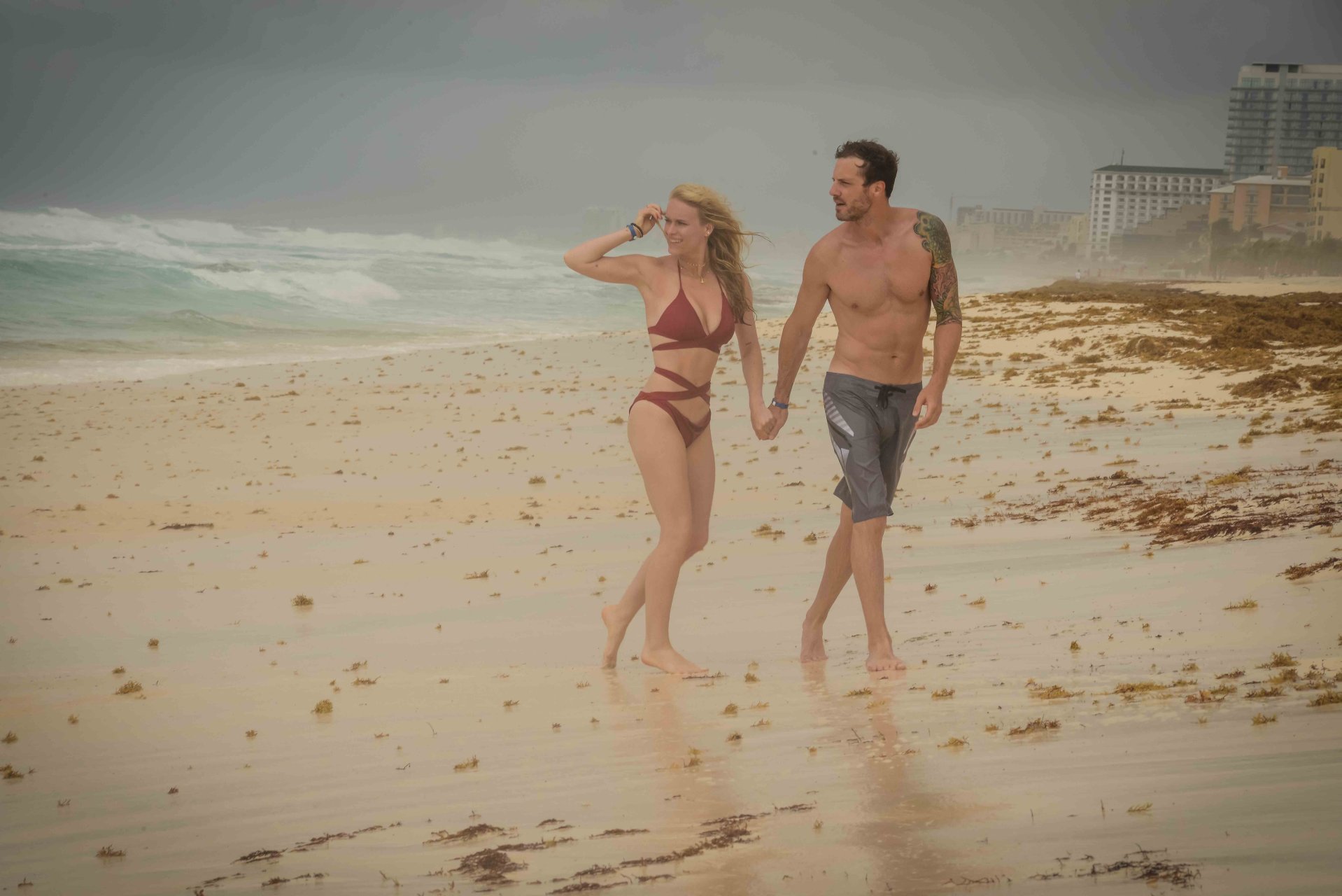 La pareja fue vista disfrutando de cócteles en su hotel, el Live Aqua Beach Resort Cancun, y no dejaron que la lluvia arruinara su paseo mientras enfrentaban la playa azotada por el viento y se aventuraban en las aguas agitadas para remar.