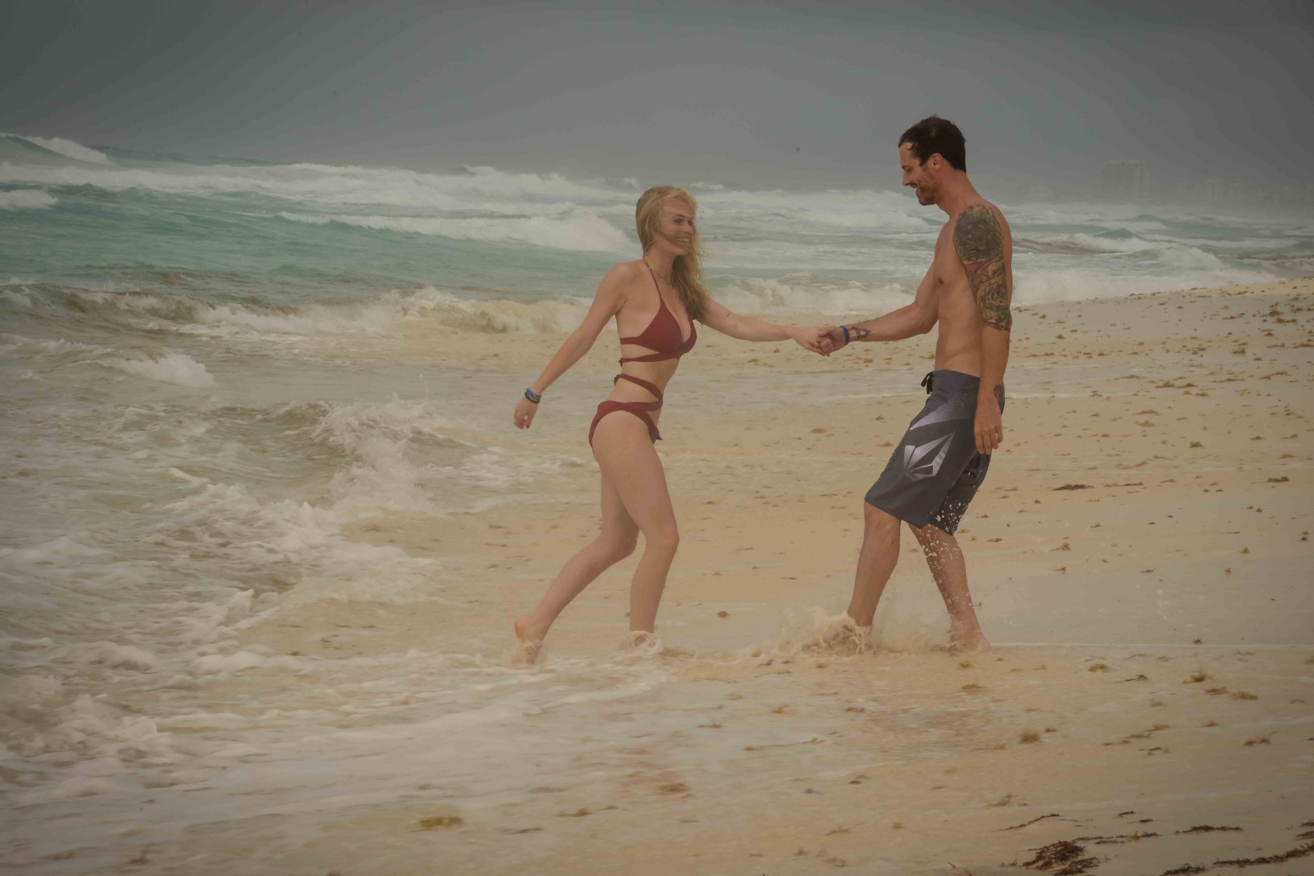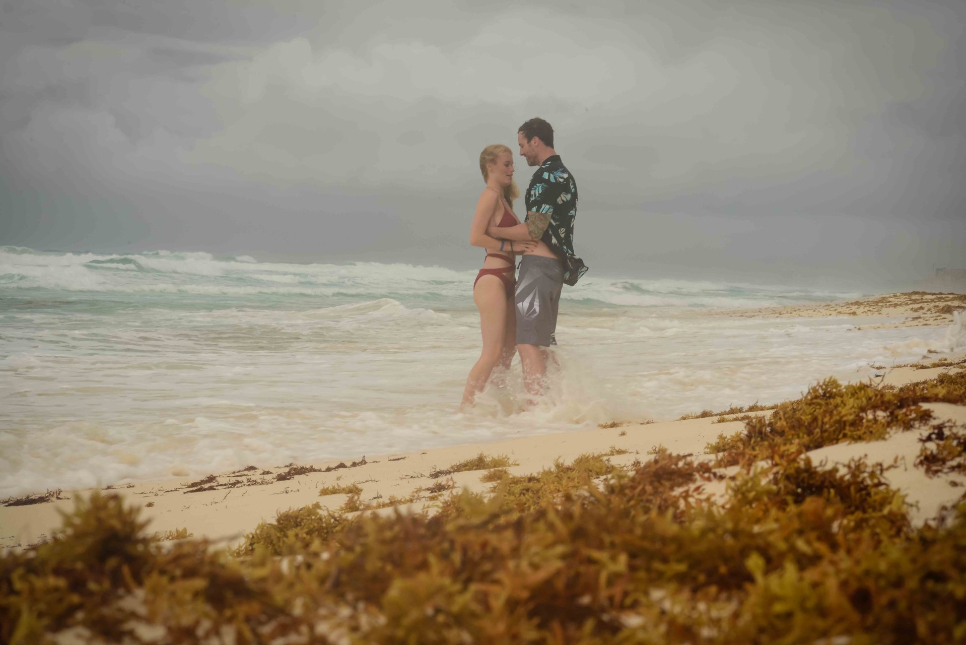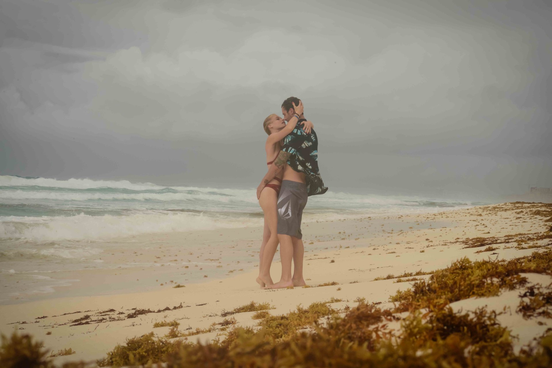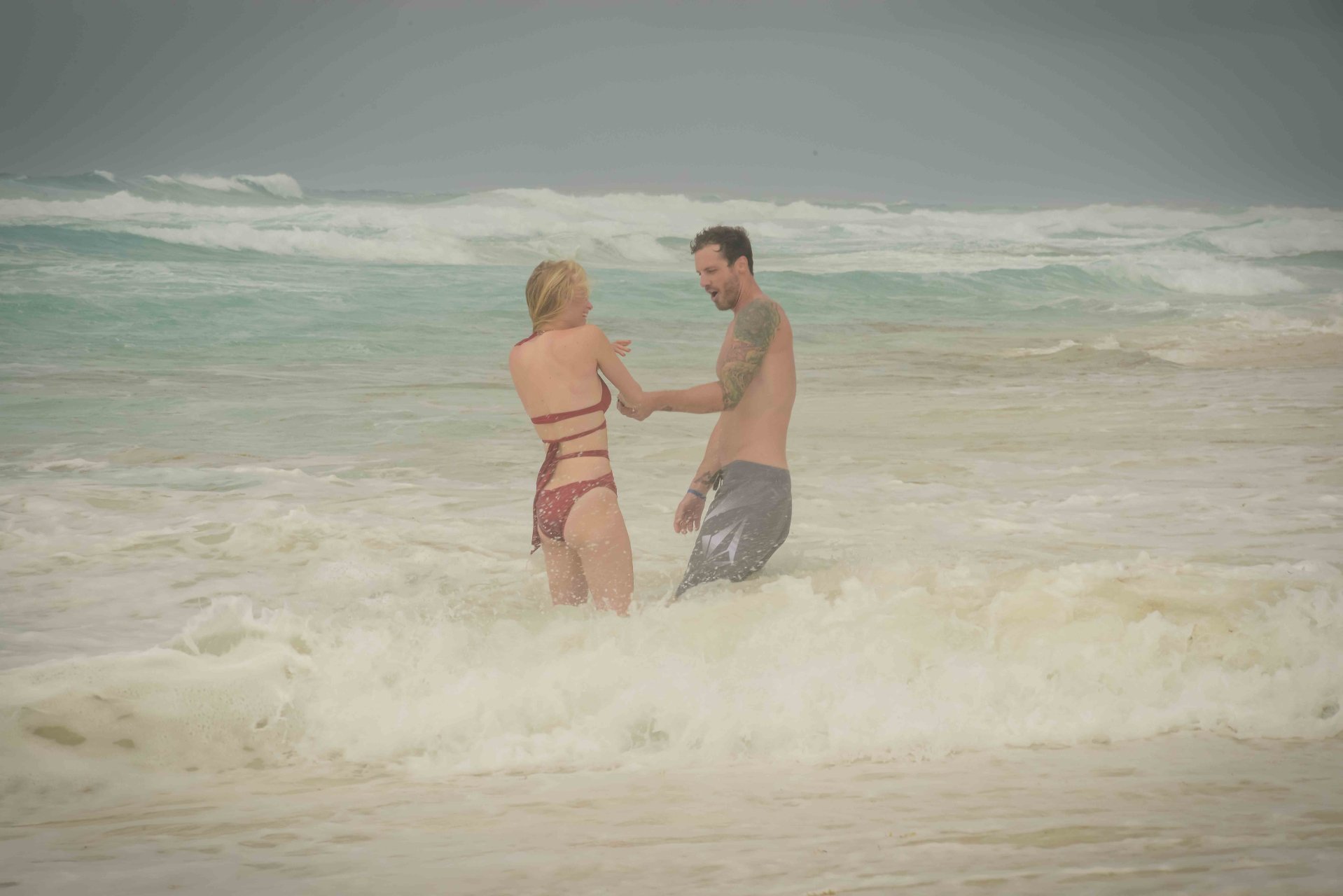 La pareja fue vista disfrutando de cócteles en su hotel, el Live Aqua Beach Resort Cancun, y no dejaron que la lluvia arruinara su paseo mientras enfrentaban la playa azotada por el viento y se aventuraban en las aguas agitadas para remar.