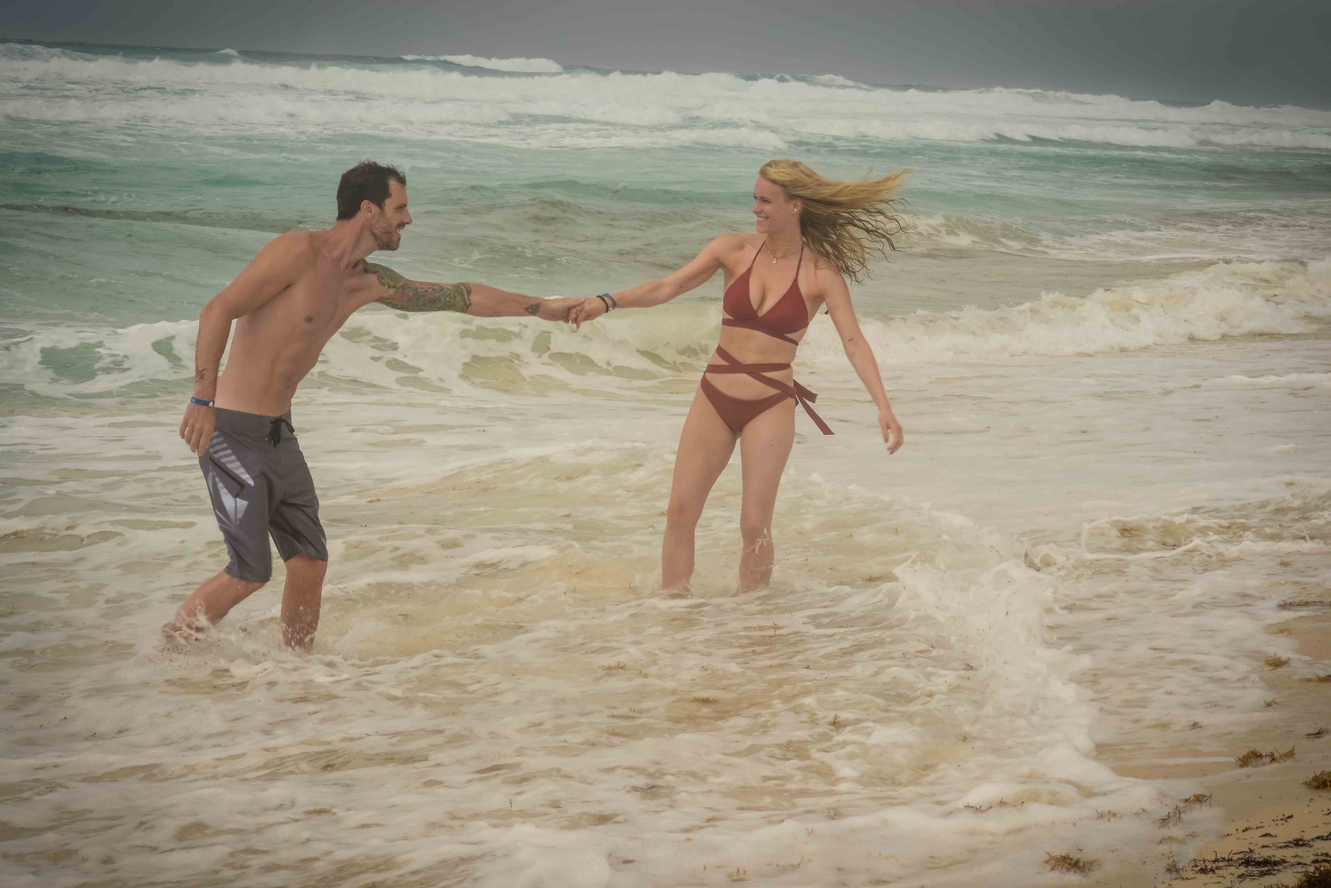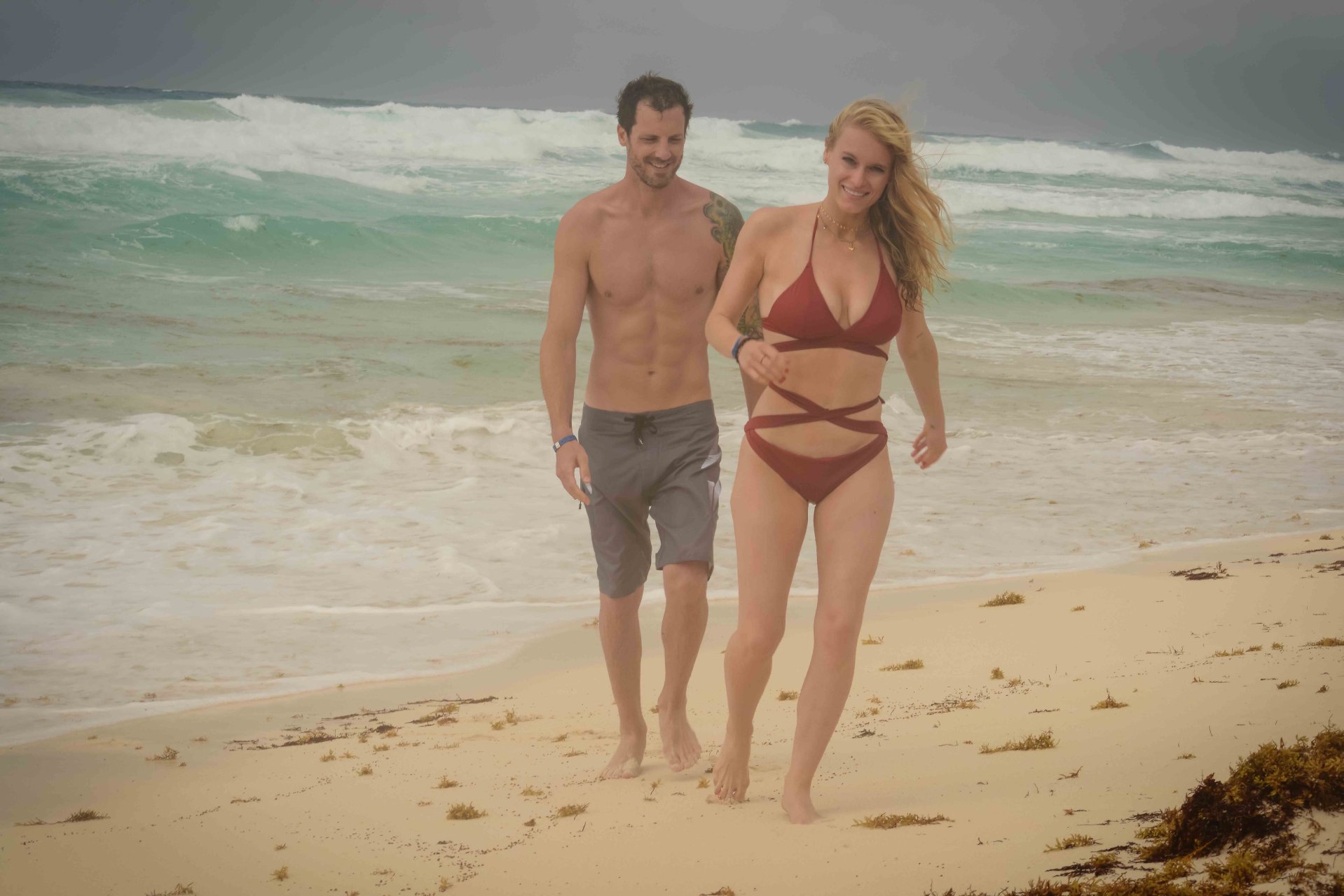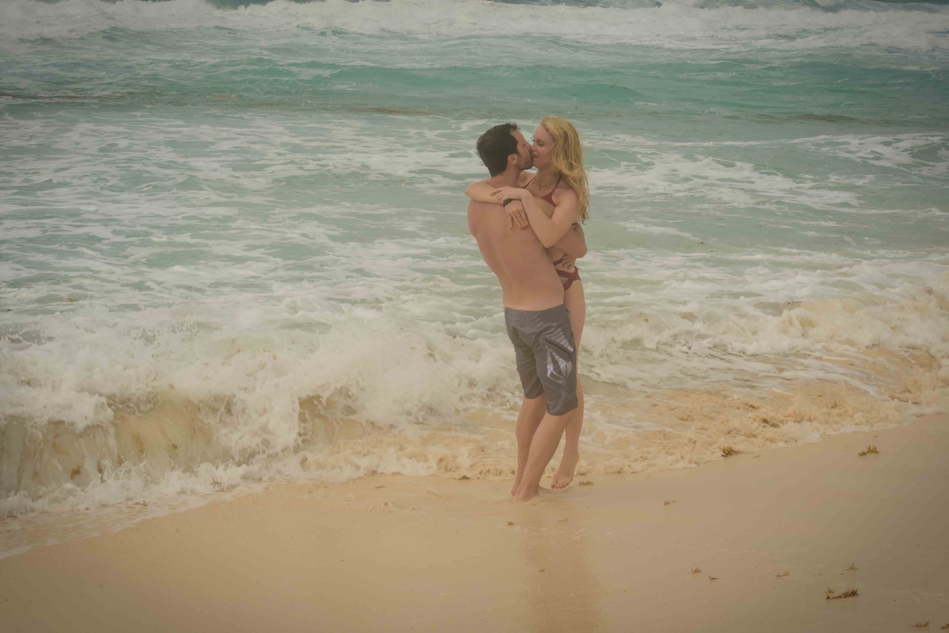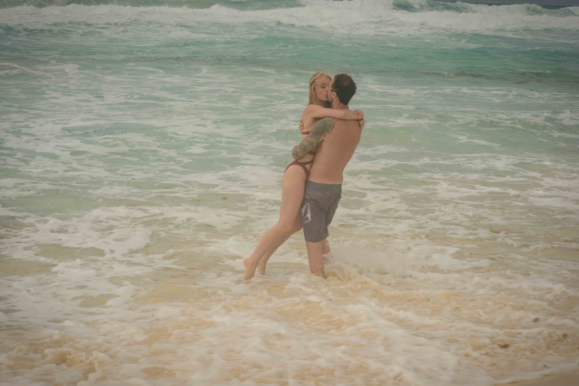 La pareja fue vista disfrutando de cócteles en su hotel, el Live Aqua Beach Resort Cancun, y no dejaron que la lluvia arruinara su paseo mientras enfrentaban la playa azotada por el viento y se aventuraban en las aguas agitadas para remar.
