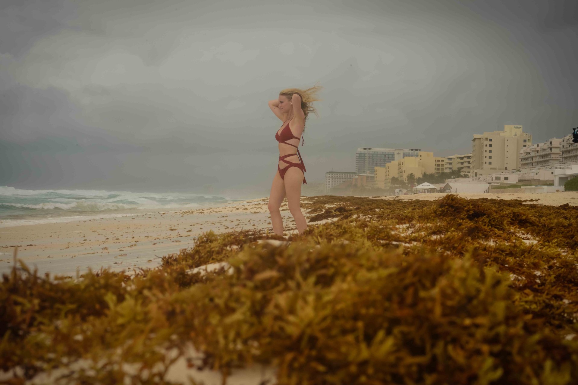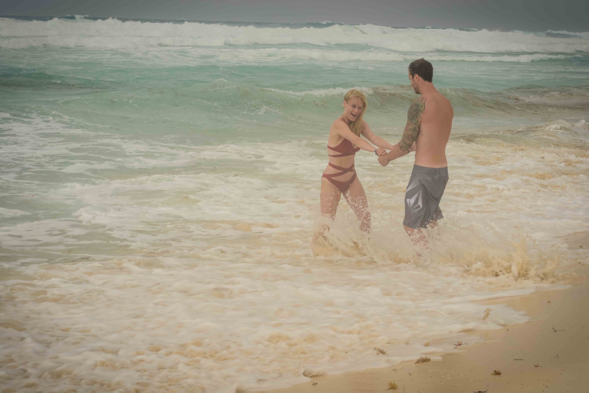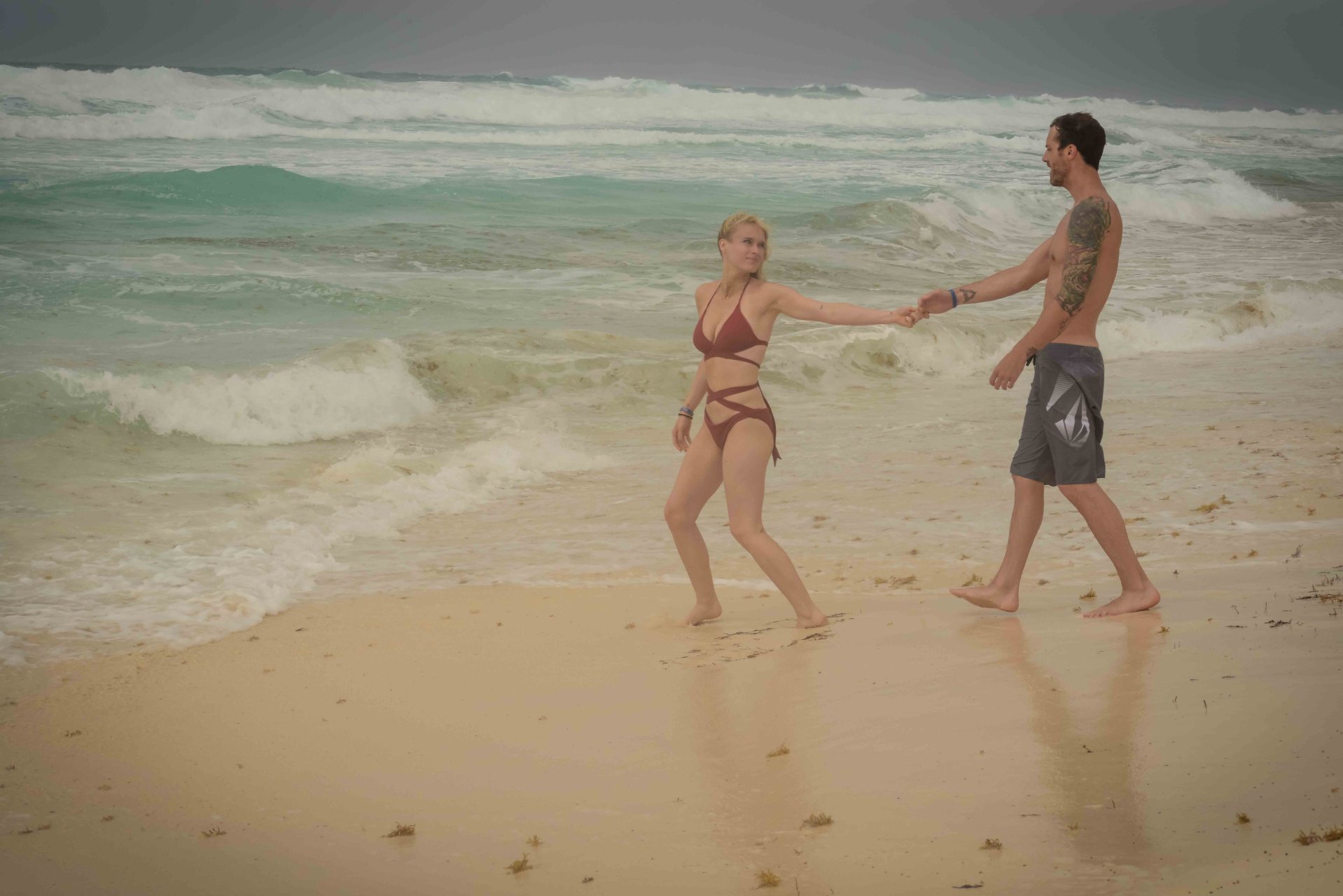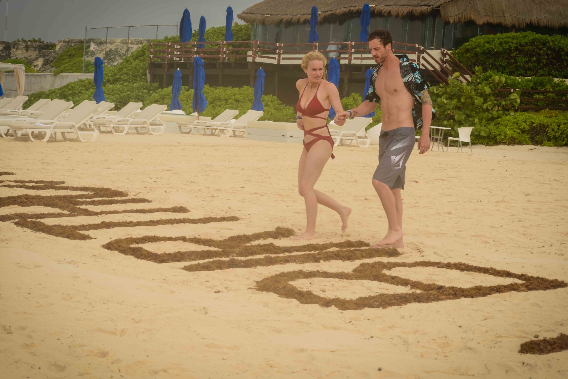 La pareja fue vista disfrutando de cócteles en su hotel, el Live Aqua Beach Resort Cancun, y no dejaron que la lluvia arruinara su paseo mientras enfrentaban la playa azotada por el viento y se aventuraban en las aguas agitadas para remar.