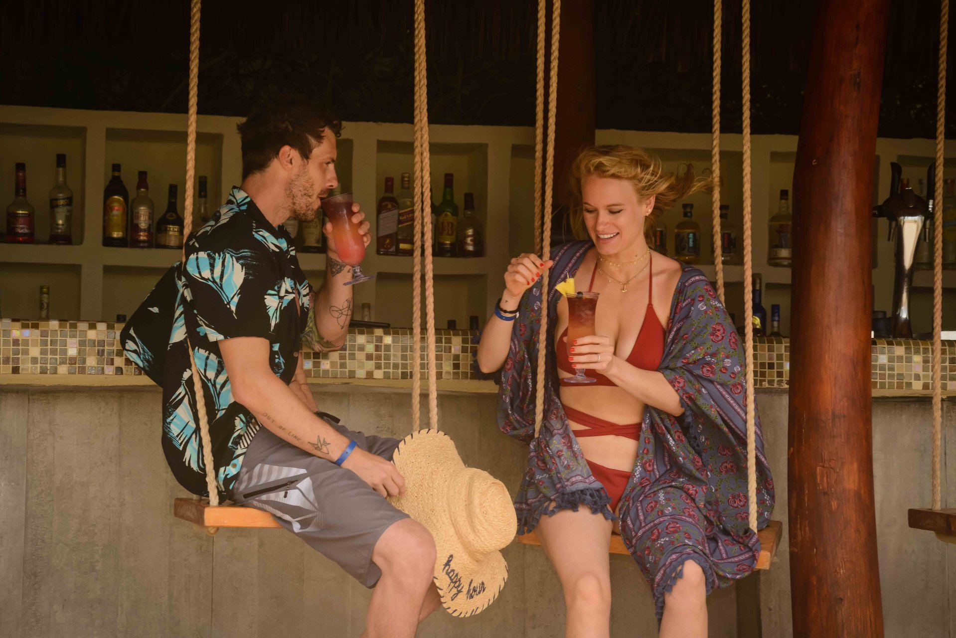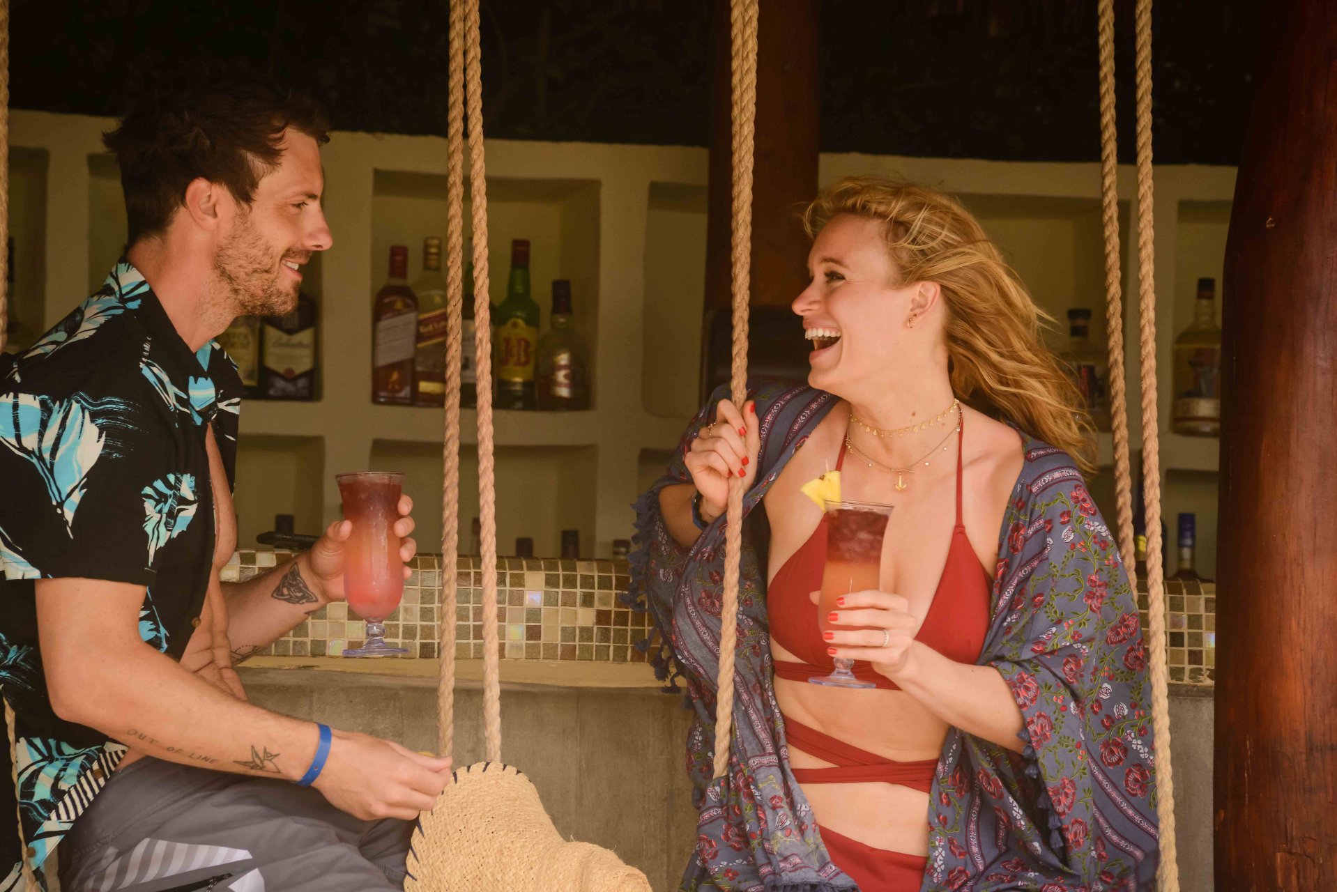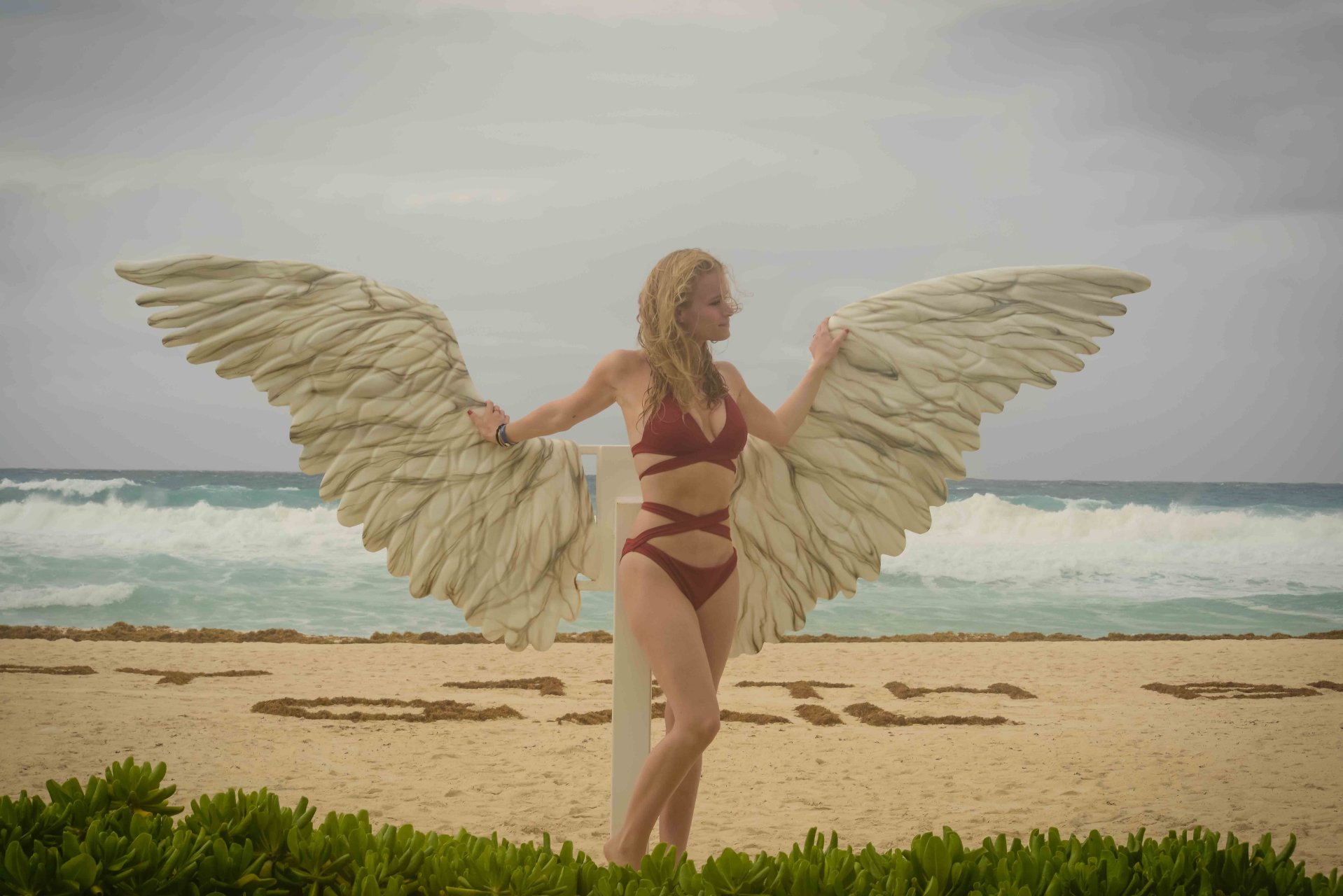 Leven lucía impresionante con un bikini rojo sangre, que en un momento combinó con un par de alas de ángel, mientras Tilky mostraba su torso tonificado con un par de pantalones cortos de baño grises.