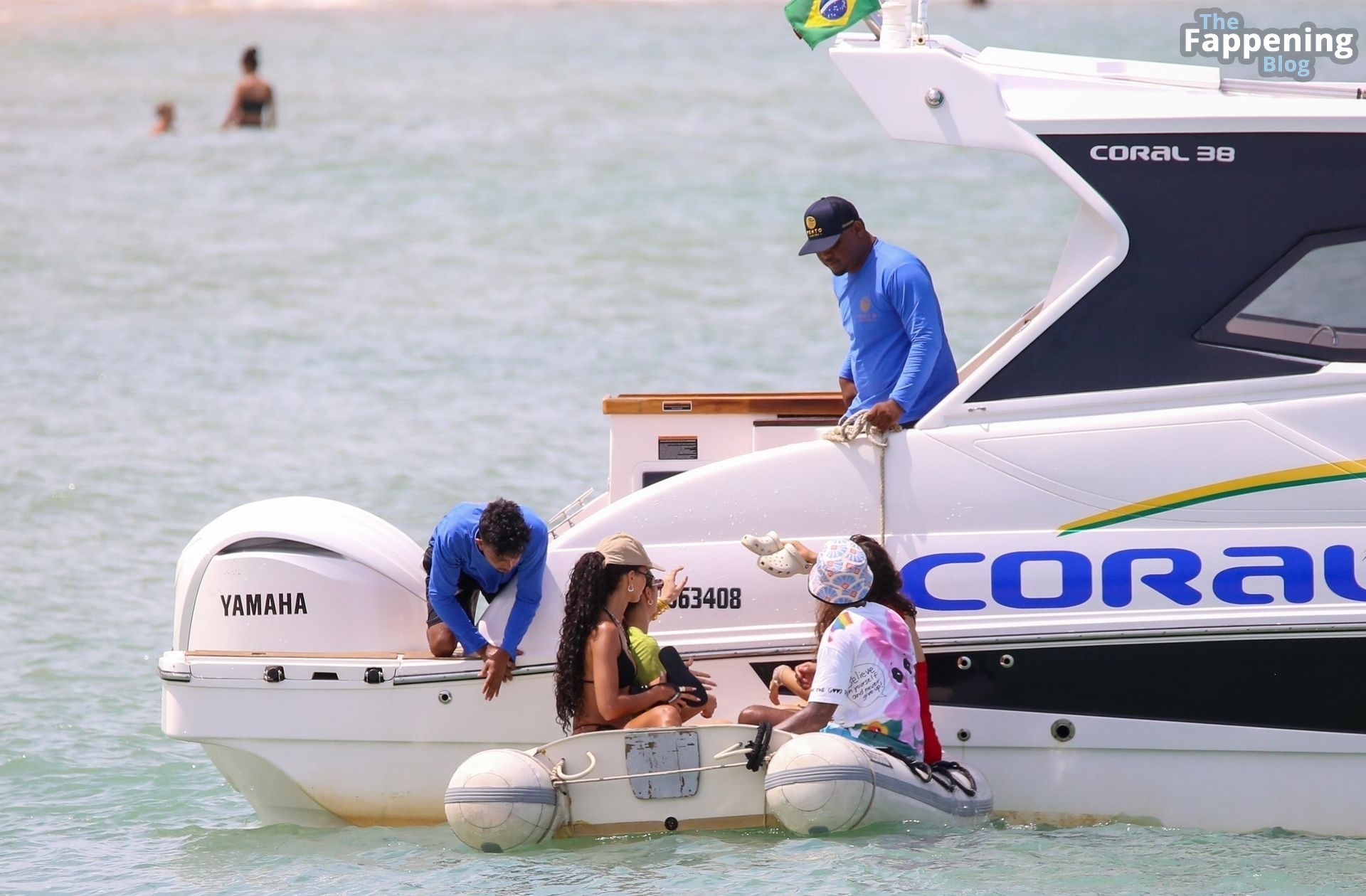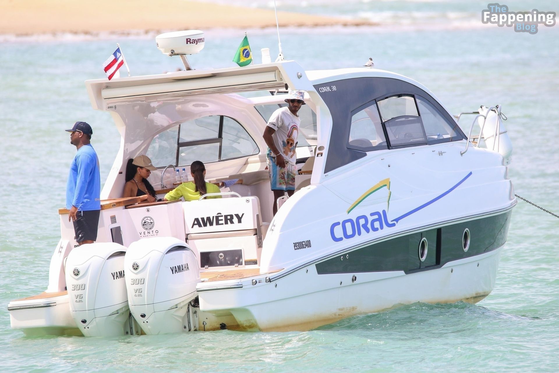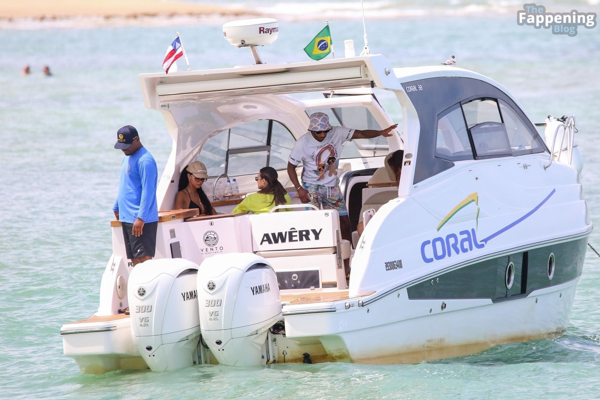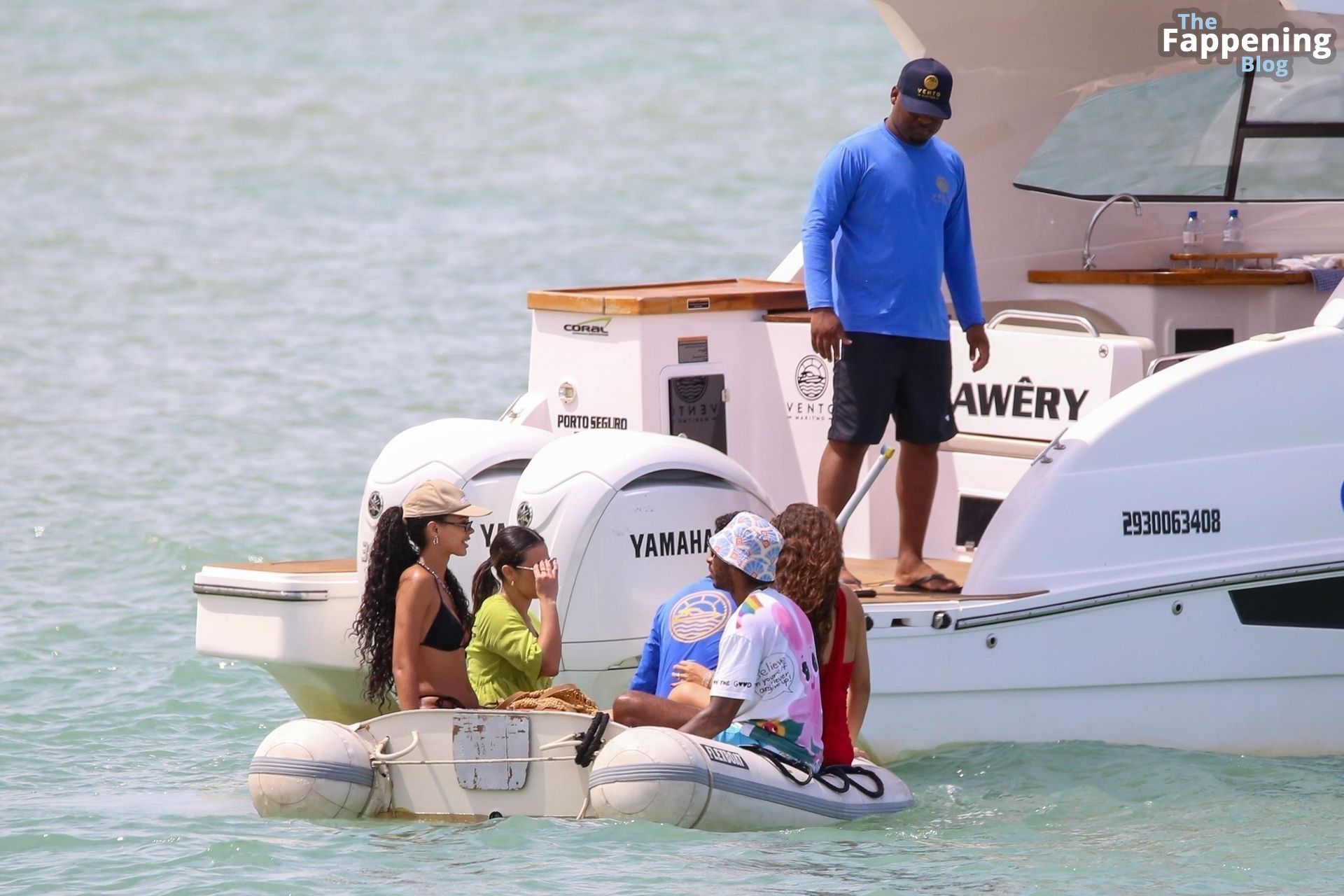 La estrella de la Fórmula Uno Lewis Hamilton y la modelo Juliana Nalu fueron fotografiados con amigos abordando un barco mientras estaban de vacaciones en Trancoso, Brasil, 01/01/2024.