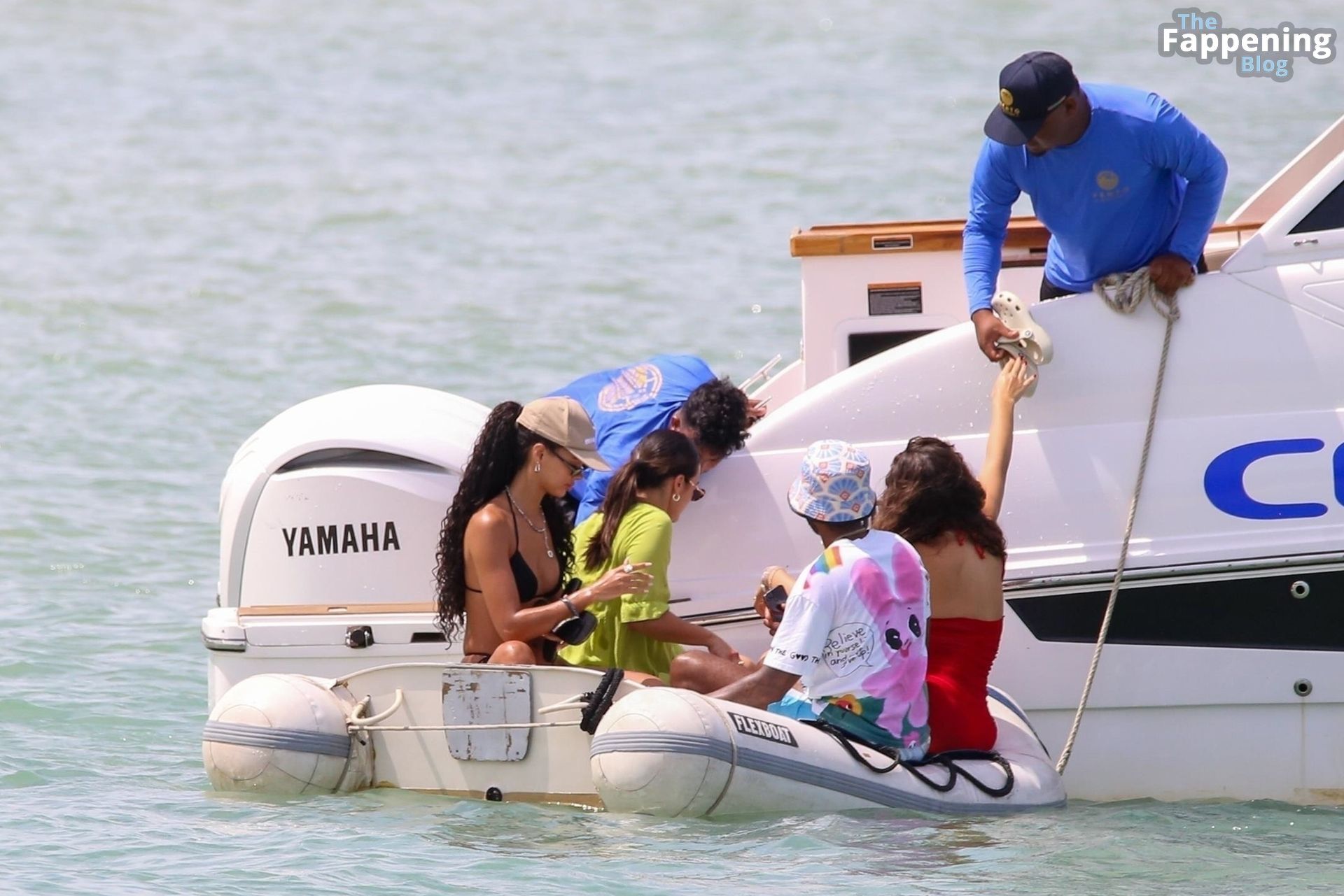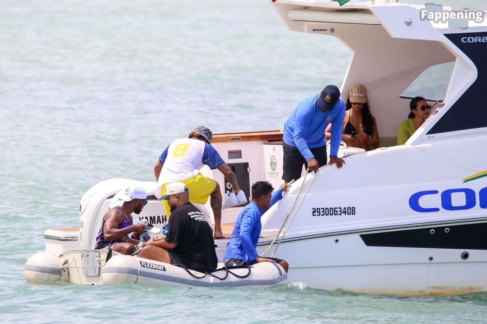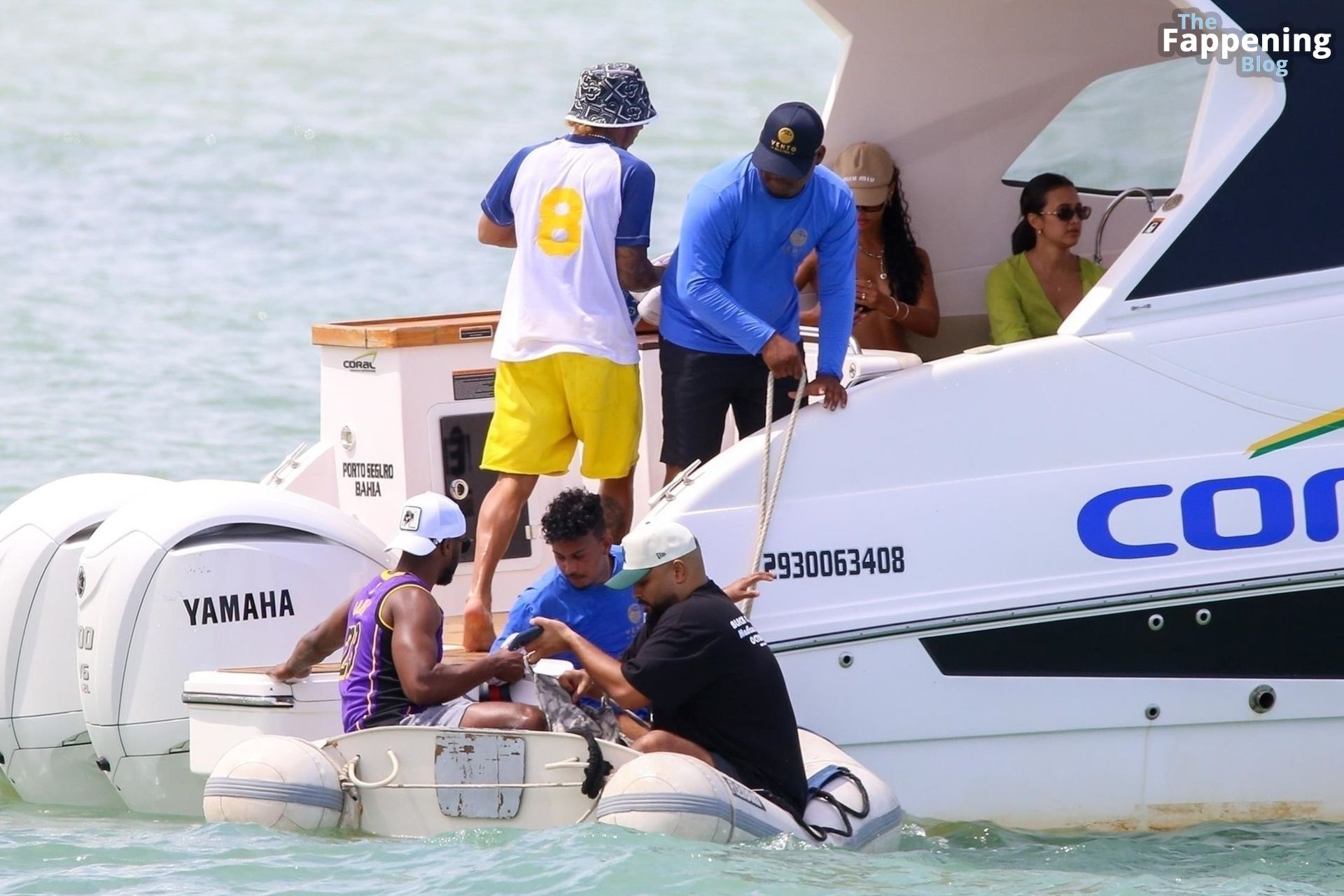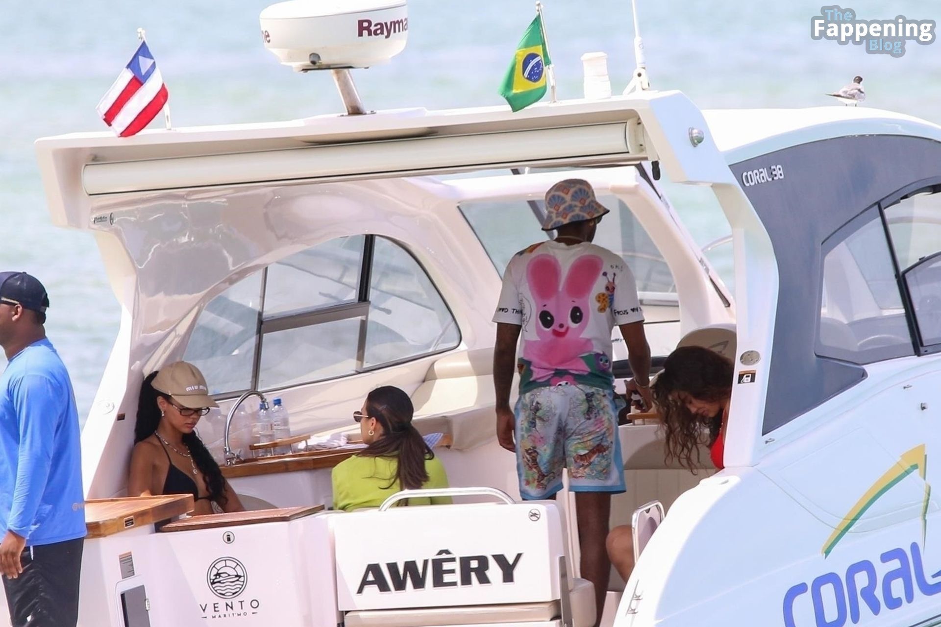 La estrella de la Fórmula Uno Lewis Hamilton y la modelo Juliana Nalu fueron fotografiados con amigos abordando un barco mientras estaban de vacaciones en Trancoso, Brasil, 01/01/2024.