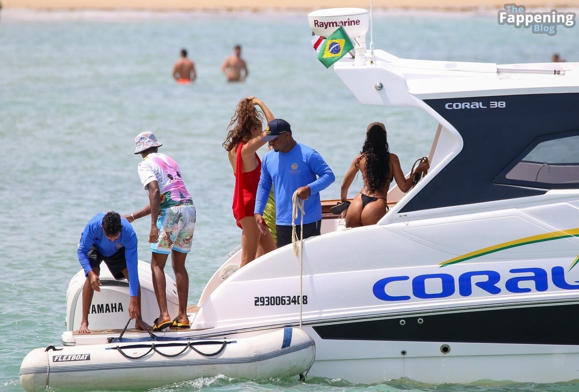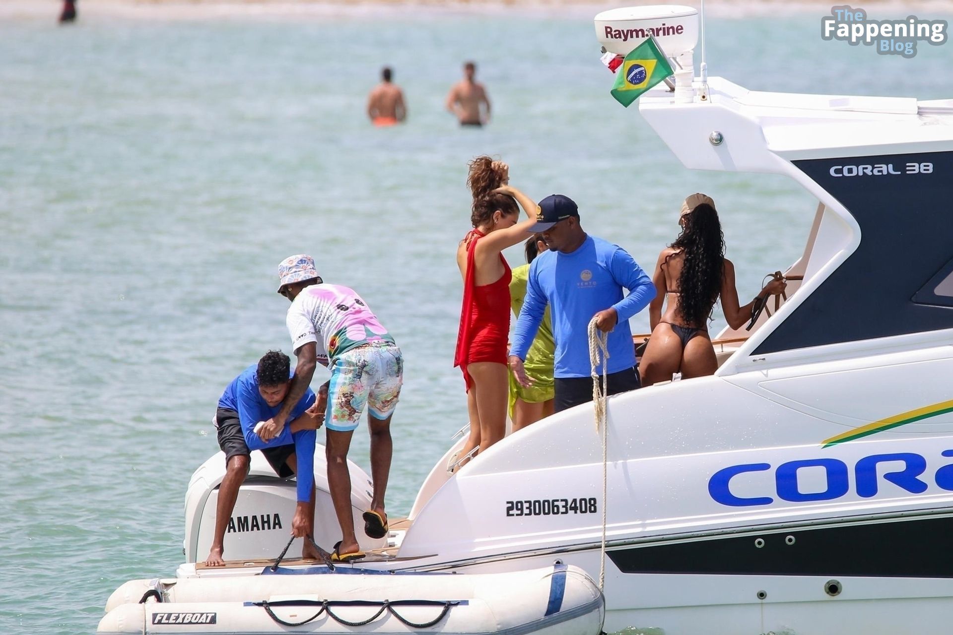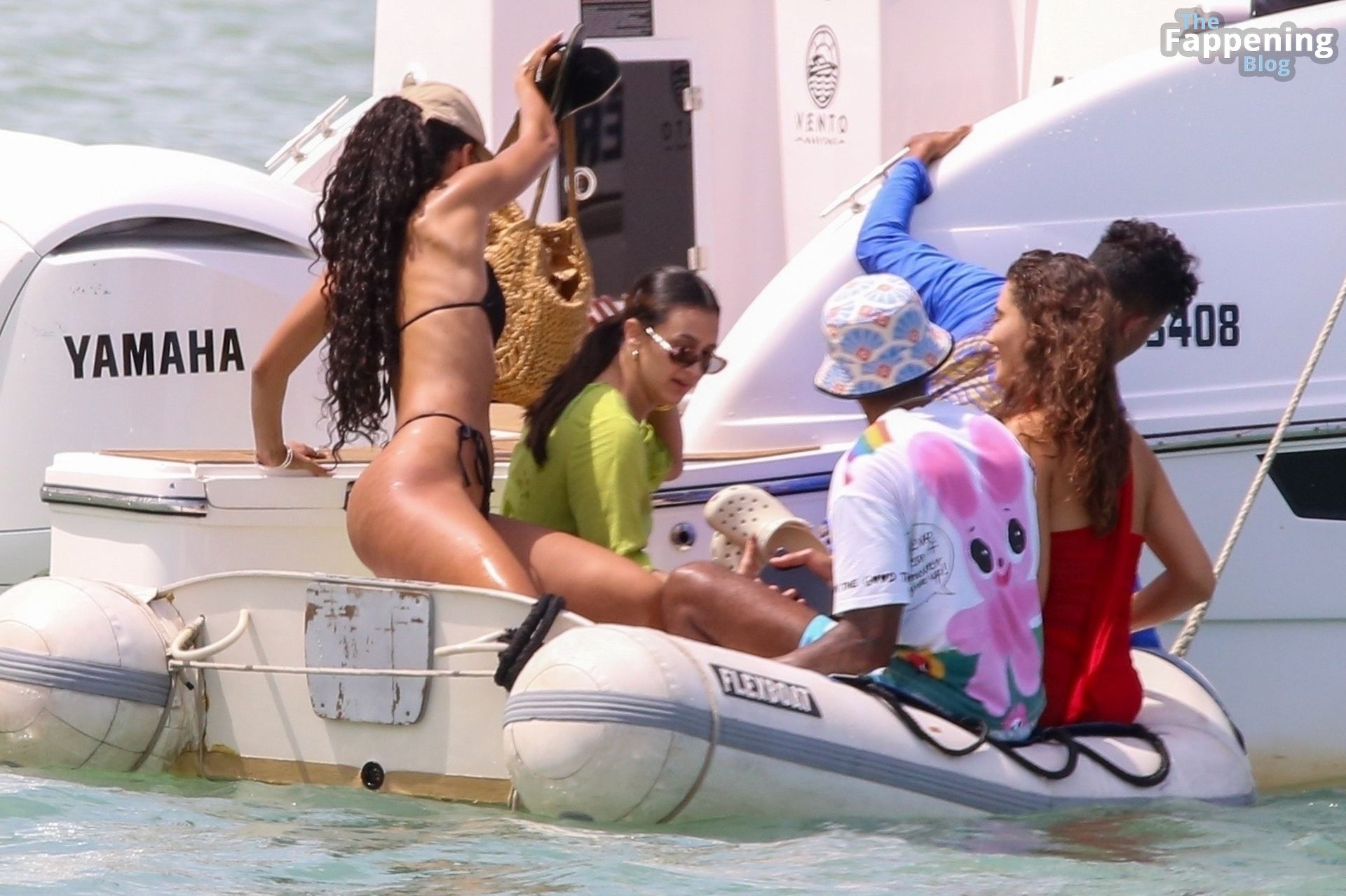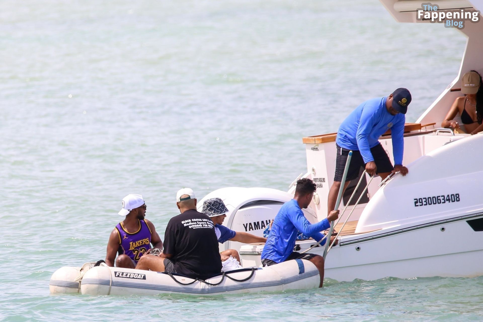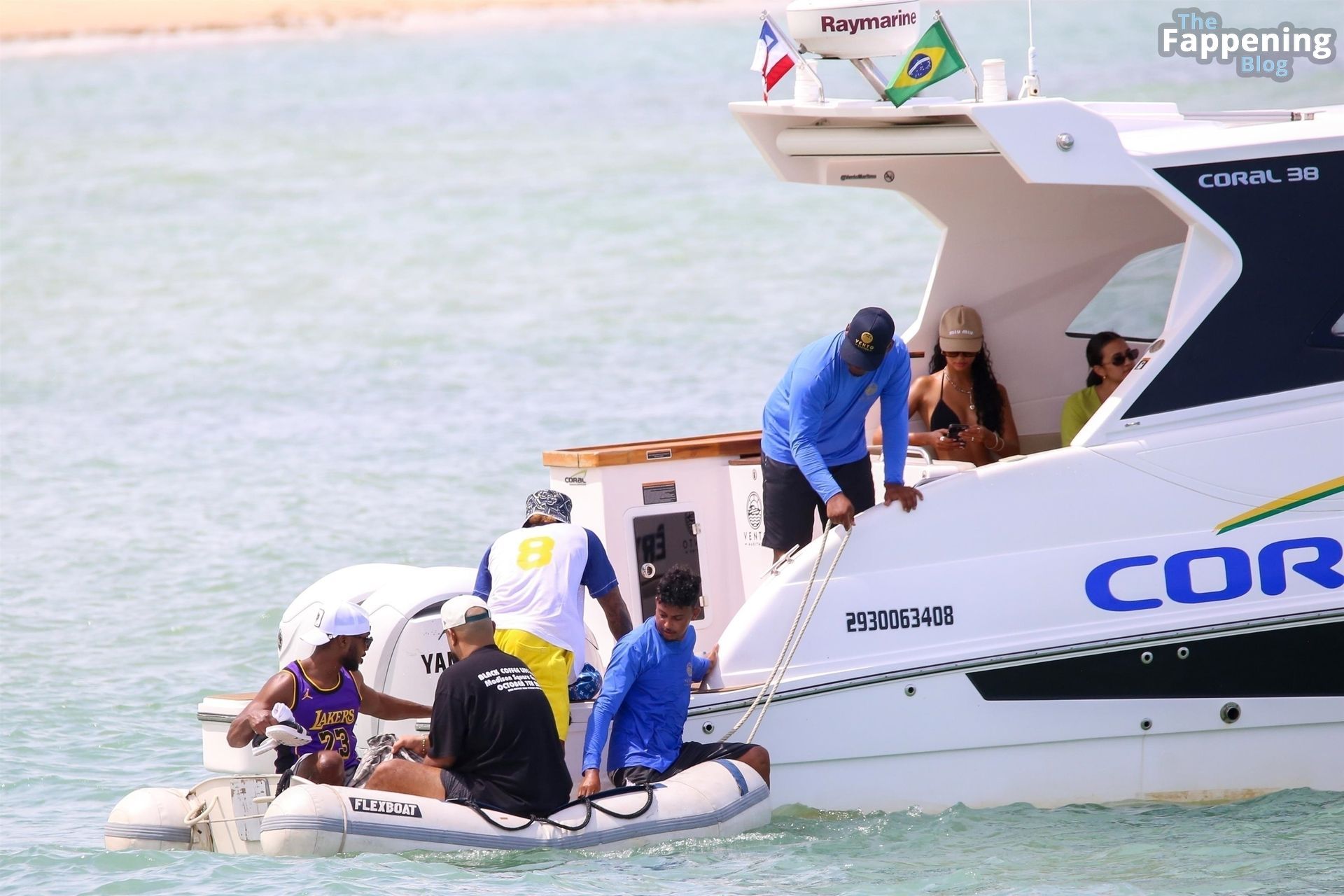 La estrella de la Fórmula Uno Lewis Hamilton y la modelo Juliana Nalu fueron fotografiados con amigos abordando un barco mientras estaban de vacaciones en Trancoso, Brasil, 01/01/2024.