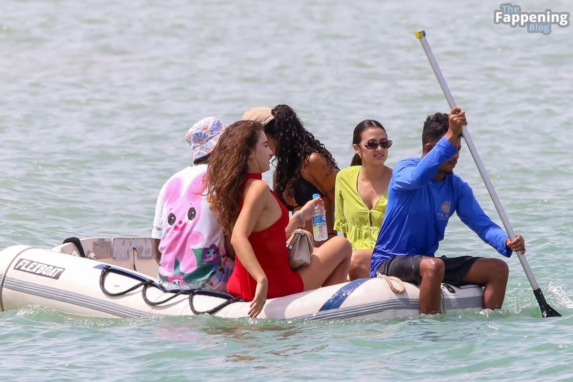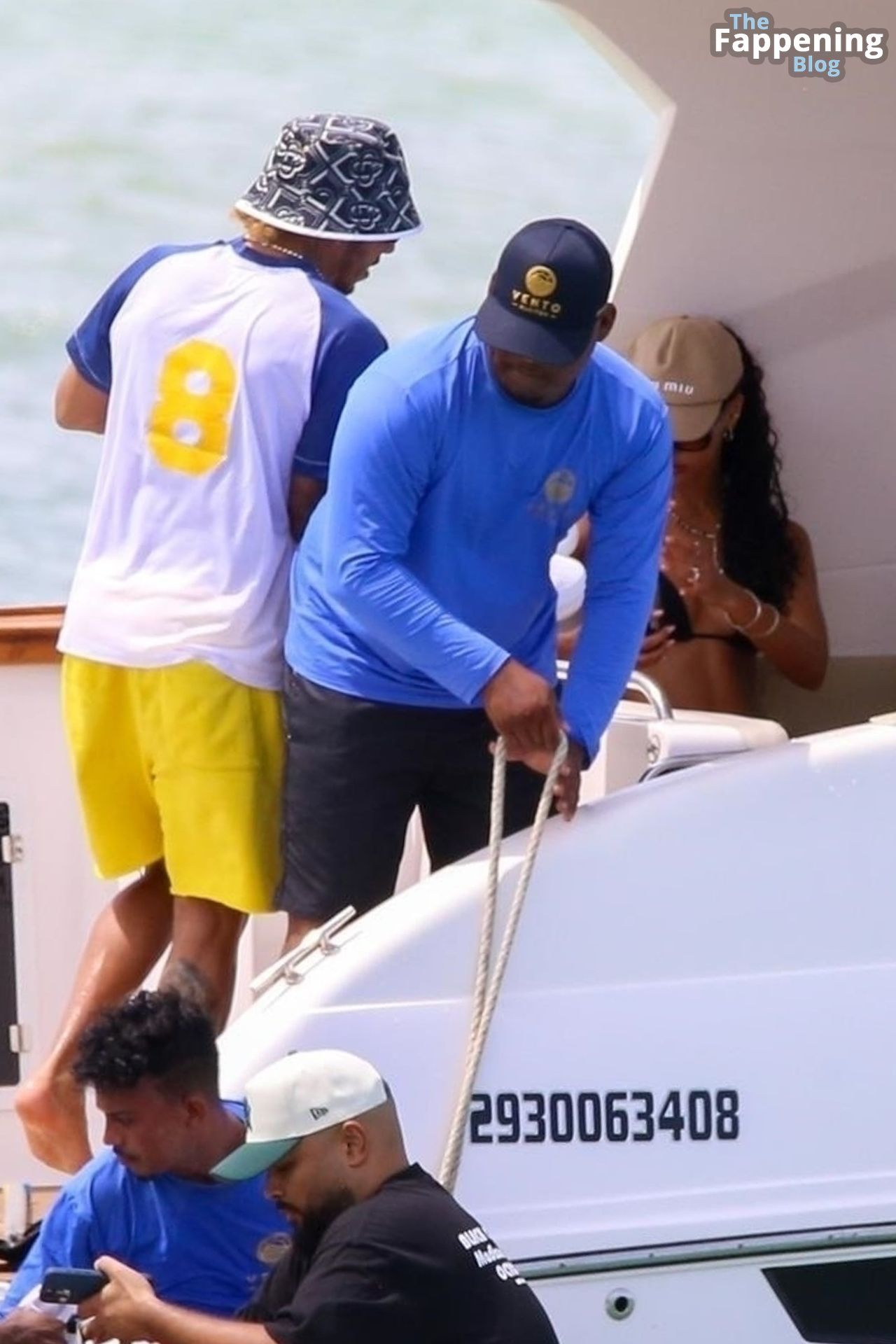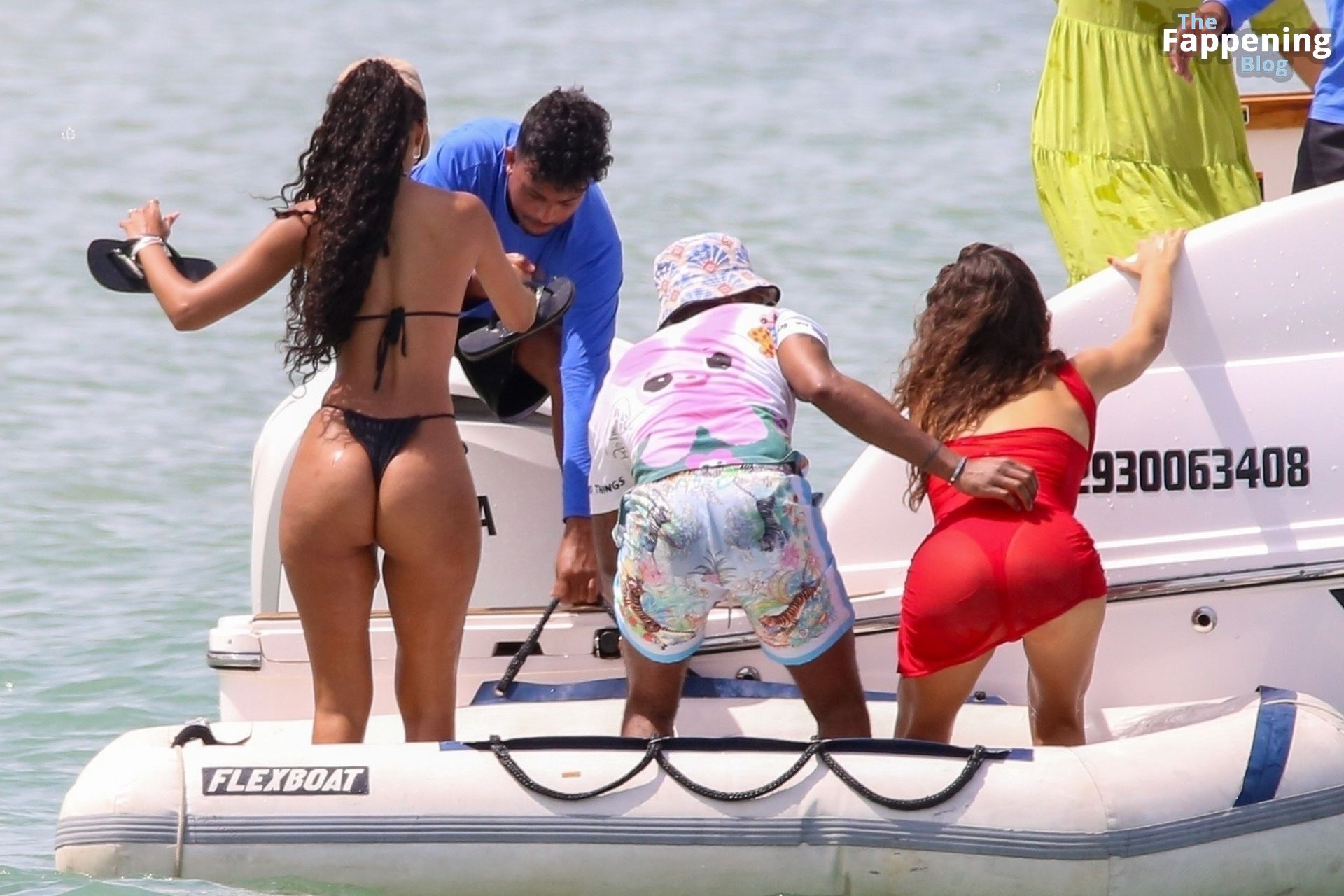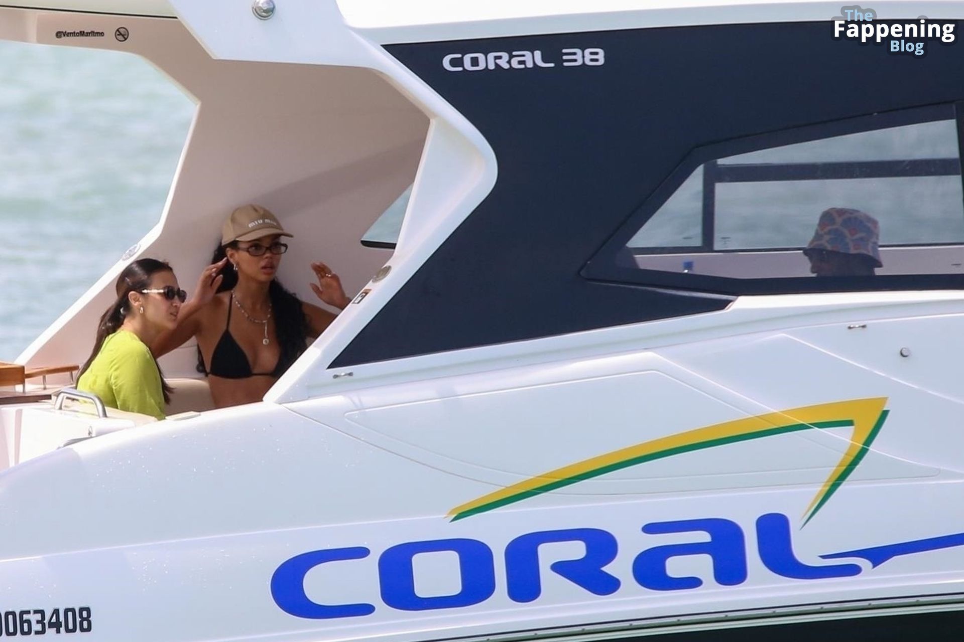 La estrella de la Fórmula Uno Lewis Hamilton y la modelo Juliana Nalu fueron fotografiados con amigos abordando un barco mientras estaban de vacaciones en Trancoso, Brasil, 01/01/2024.
