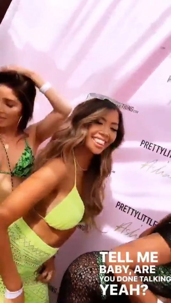 La cantante Liane V (Valenzuela) fue vista con un conjunto verde en la fiesta de lanzamiento de PrettyLittleThing x Ashanti en The Hollywood Roosevelt, 30/06/2019.