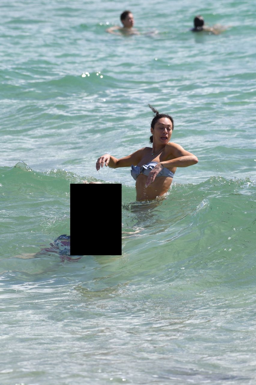 Parece que las celebridades que son seguidas por cámaras tienen un 10,000% más de probabilidad de que las olas les "accidentalmente" arranquen la parte superior mientras están en el mar, que las mujeres normales. Es realmente inexplicable.