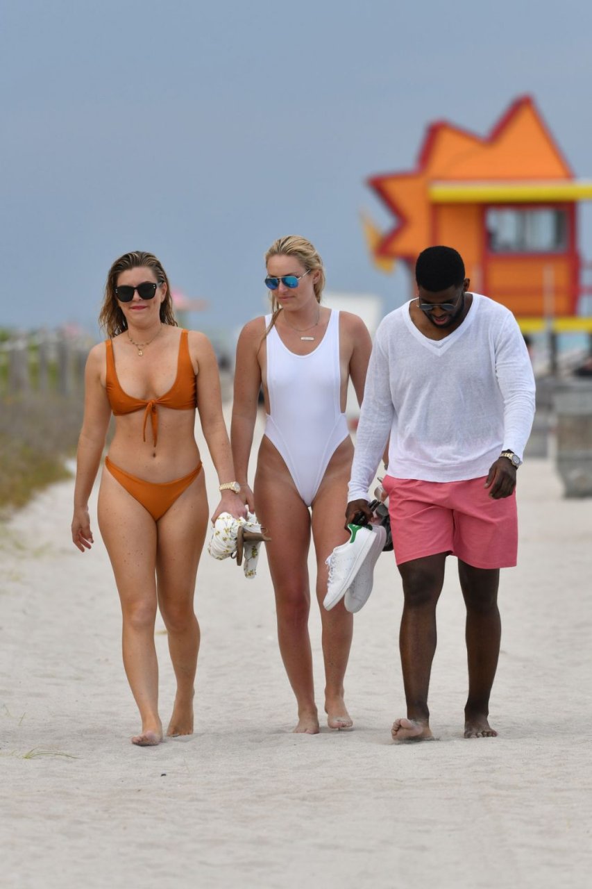 Lindsey Vonn muestra su figura atlética en un muy sexy traje de baño blanco de una pieza mientras pasea con su novio P.K. Subban y un amigo en la playa de Miami, 04/05/2019.