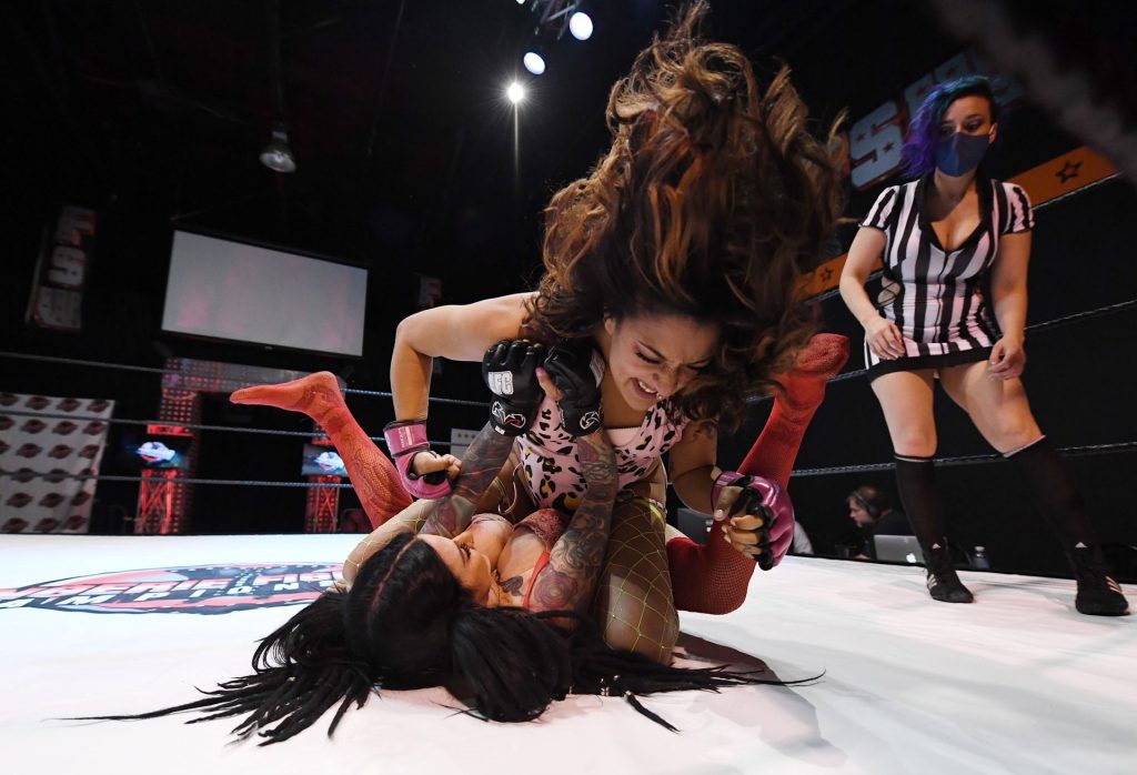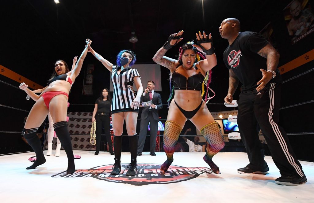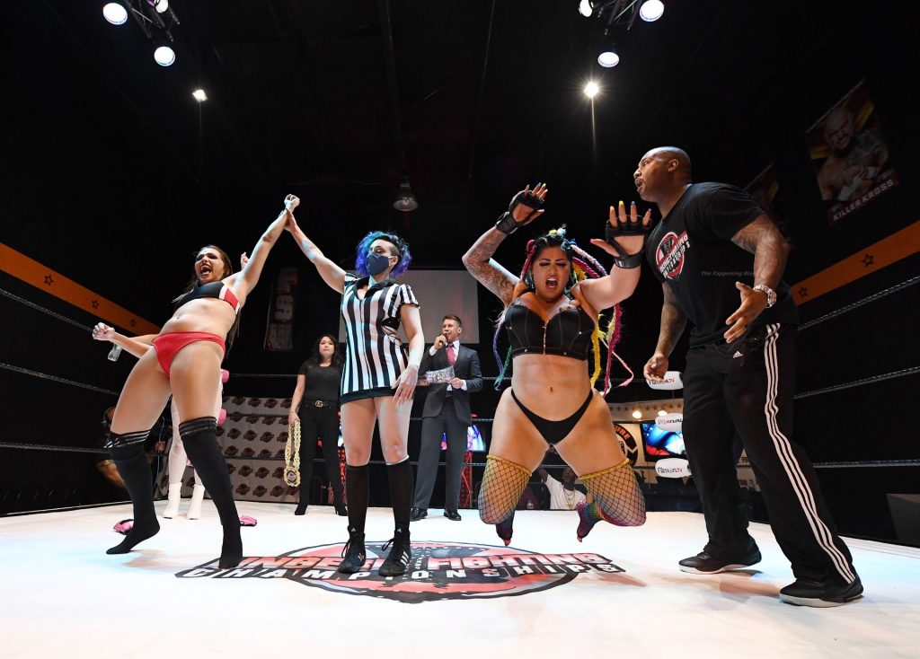 Salina de la Renta, Katie “The Bombshell” Forbes y otras chicas locas aparecen en las imágenes durante “Lingerie Fighting Championships 31: Booty Camp 2” en la FSW Arena en Las Vegas, 23/03/2021. El evento de pago por visión se realizó sin público debido a la pandemia del coronavirus (COVID-19).
