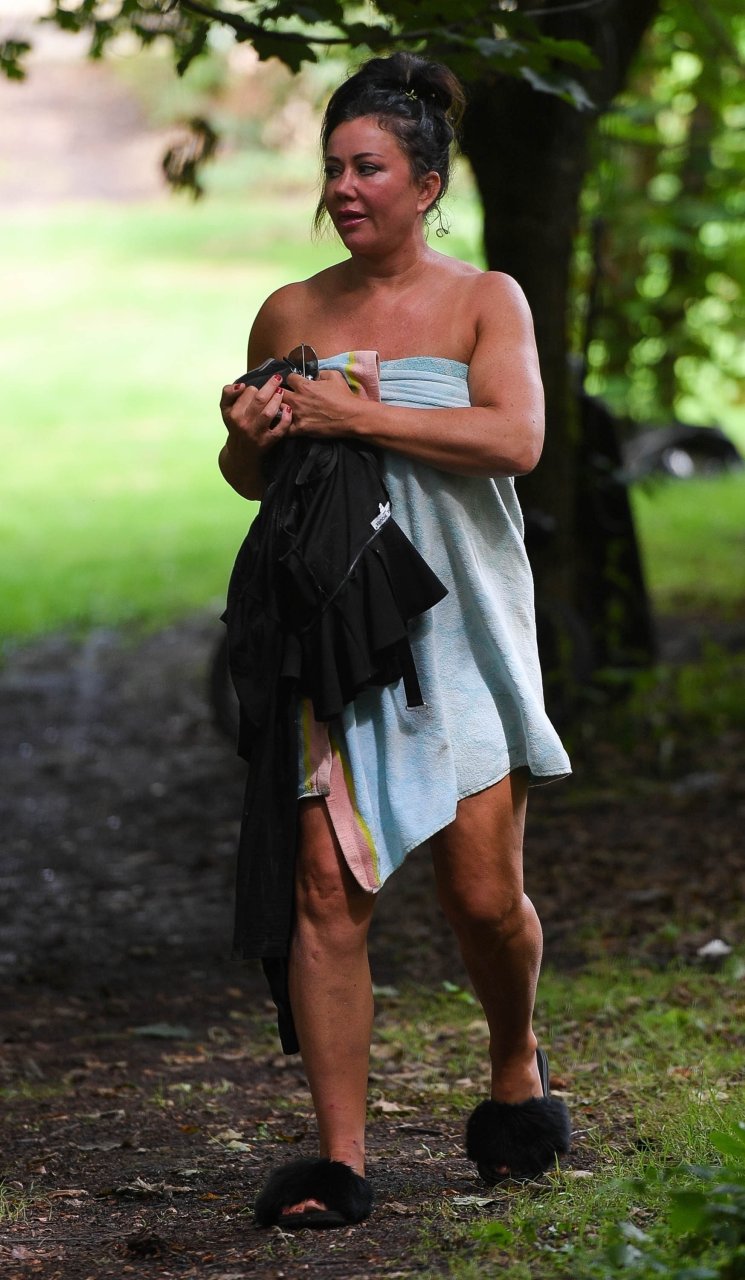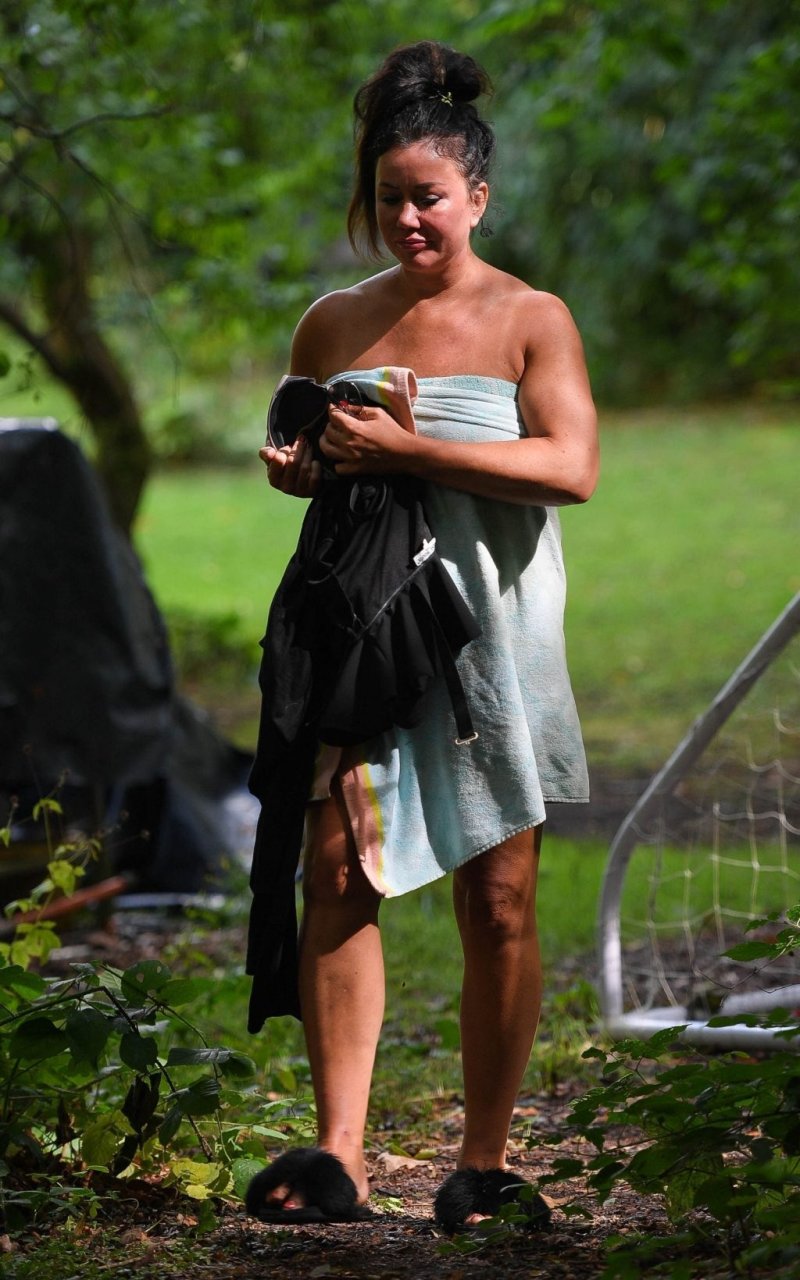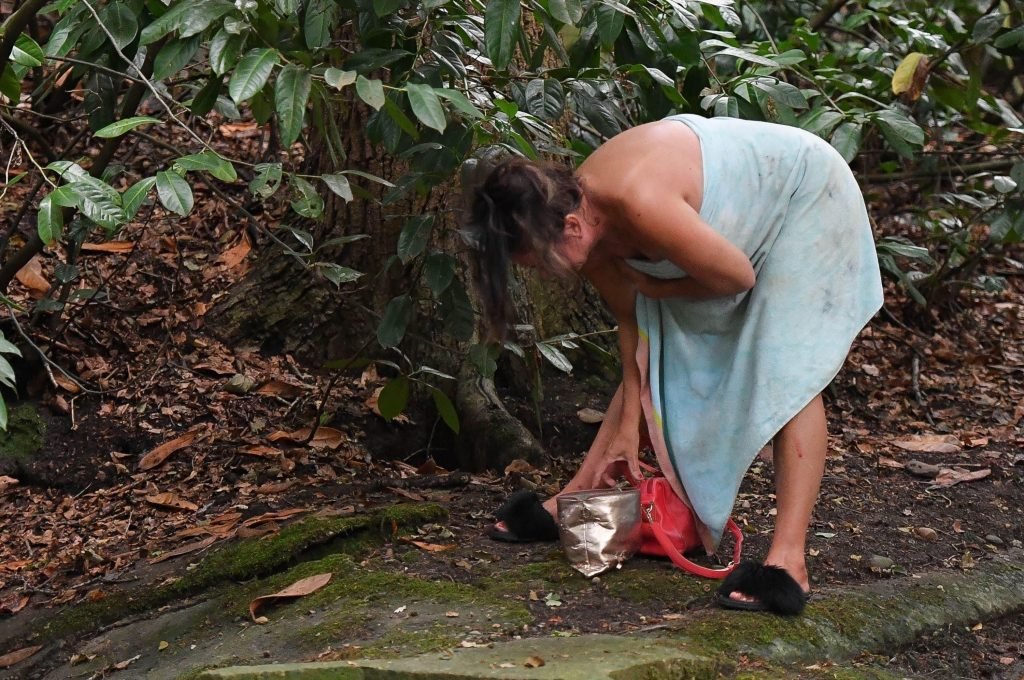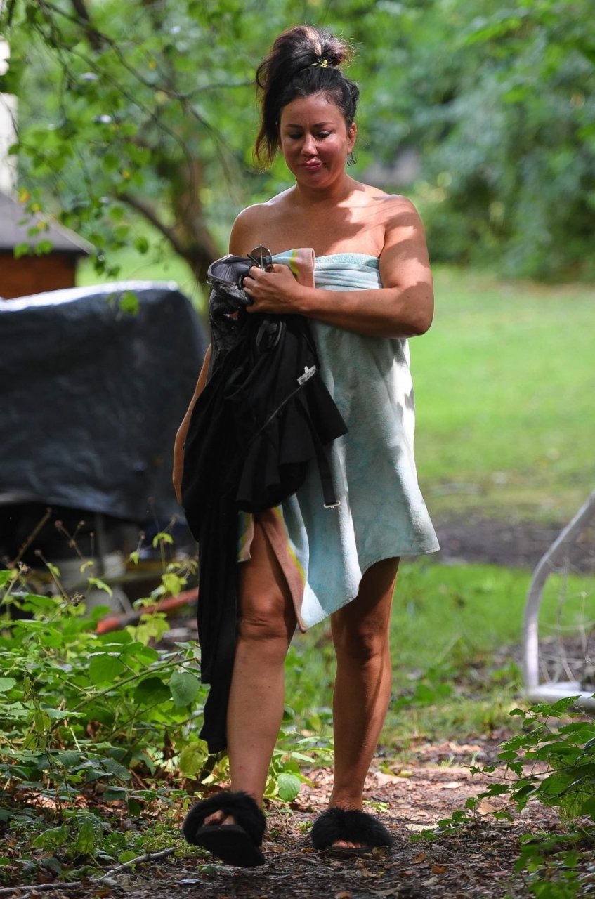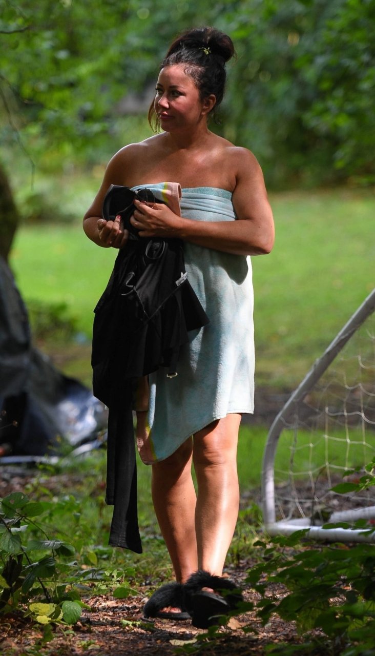 La personalidad de la televisión de realidad Lisa Appleton (50) se estaba lavando en un arroyo junto a su casa en el árbol en Shropshire, donde ahora vive tras pasar por tiempos difíciles, 30/08/2018.