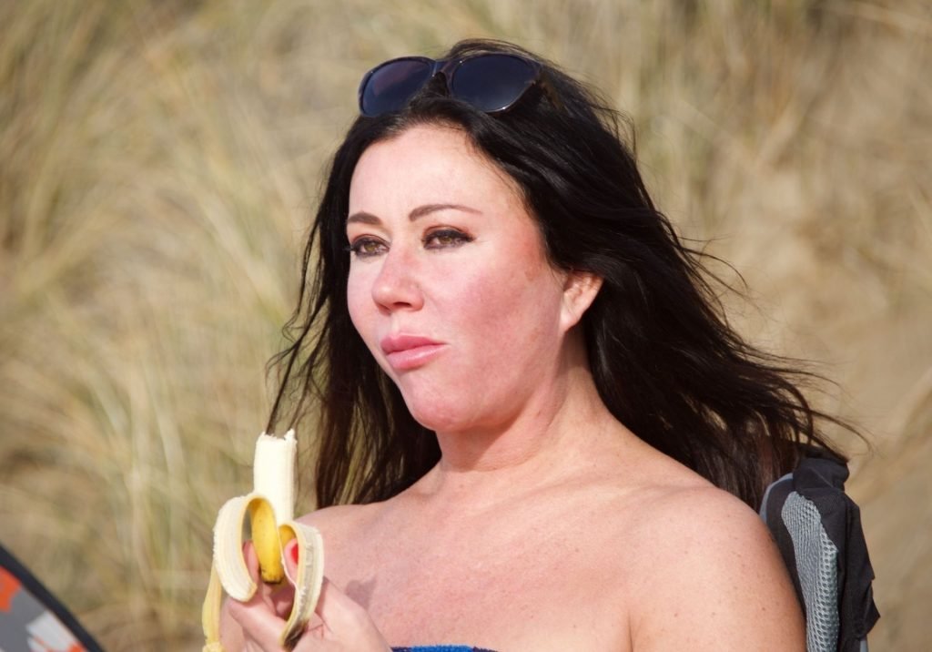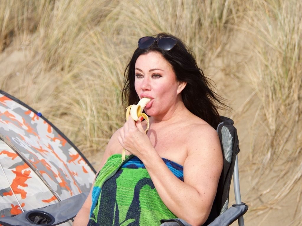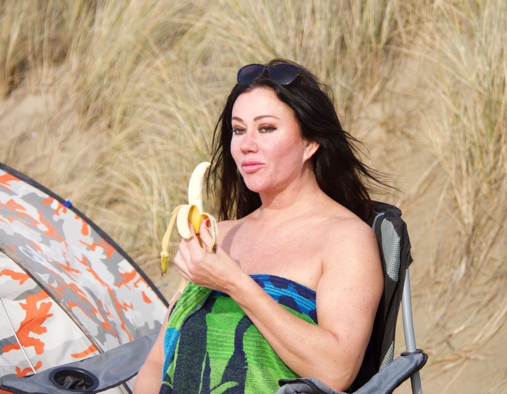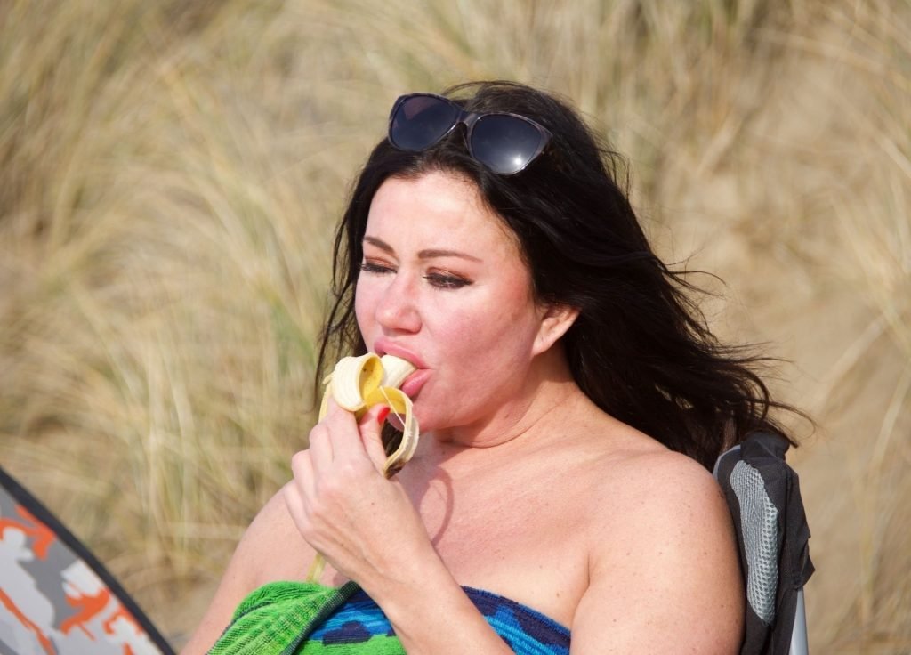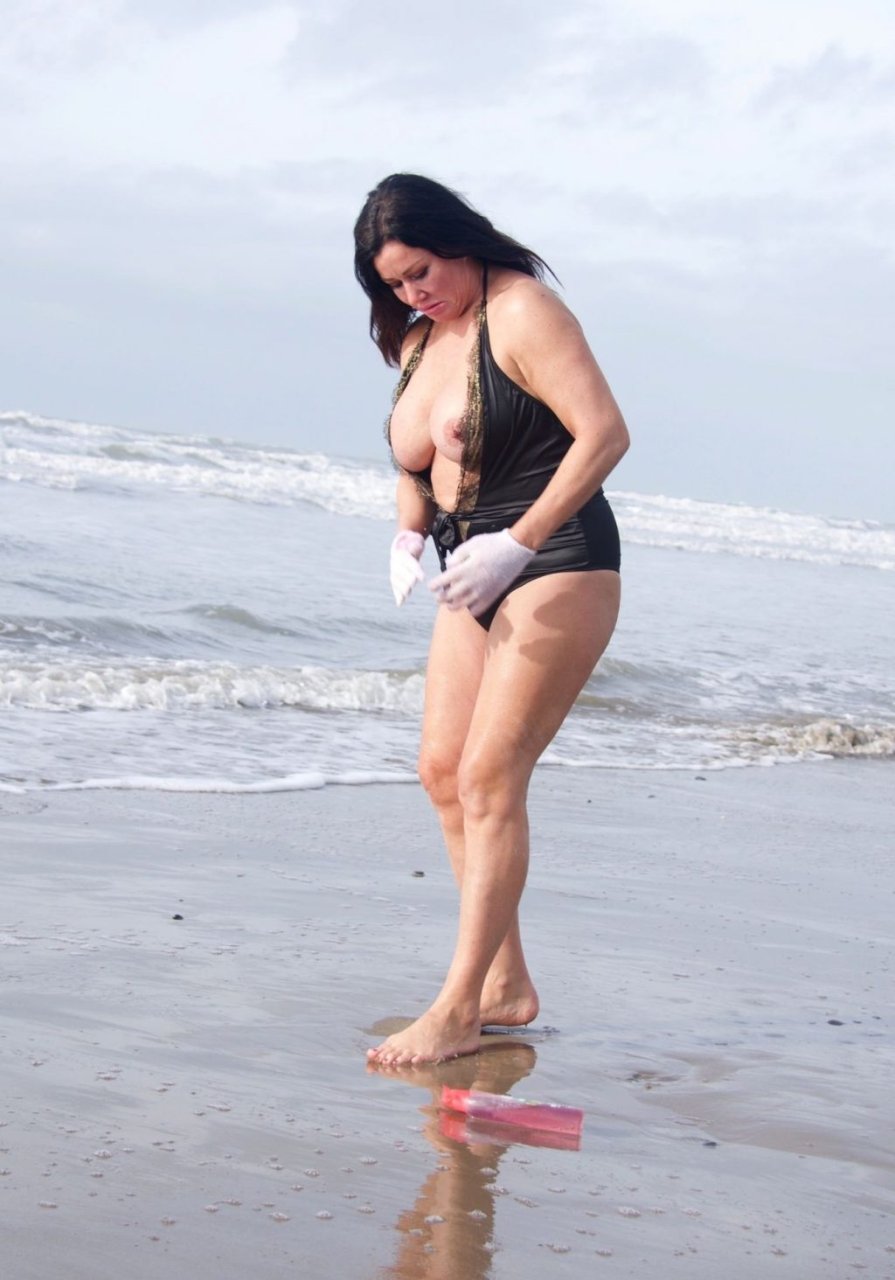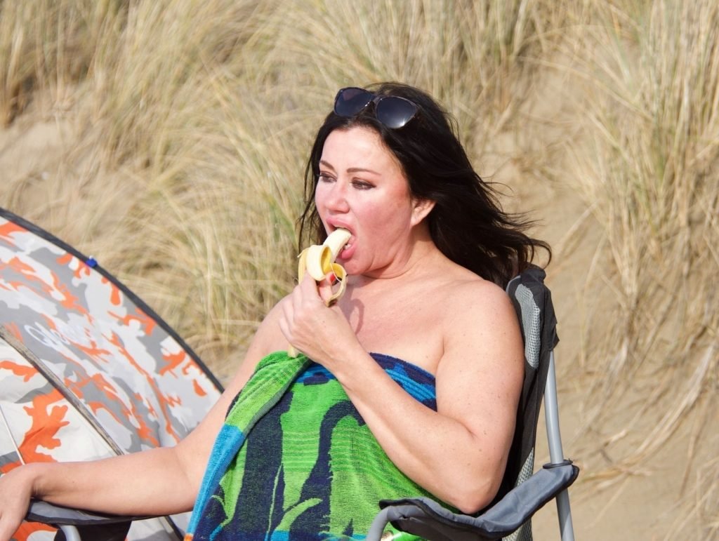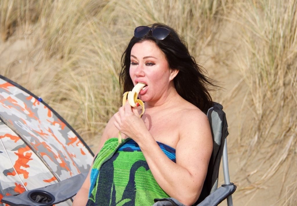 Lisa estaba de humor seductor comiendo un plátano y ha recurrido a la botella bebiendo vino mientras la estrella de reality lucía su traje de baño negro con una exhibición voluptuosa mostrando sus atributos mientras se bañaba en el mar, 24/03/2019.