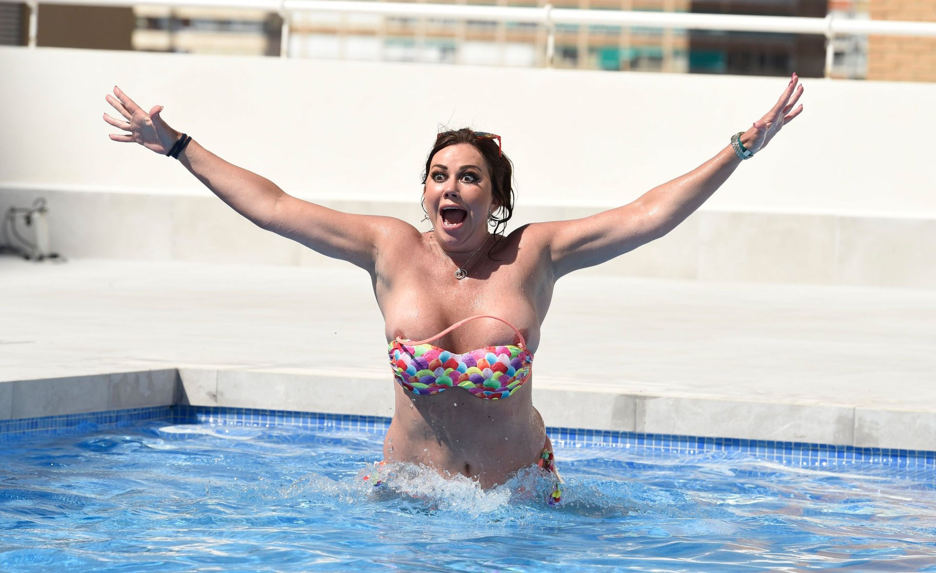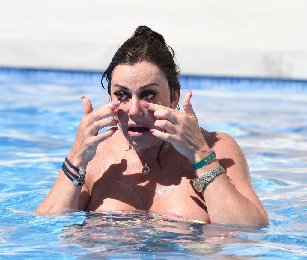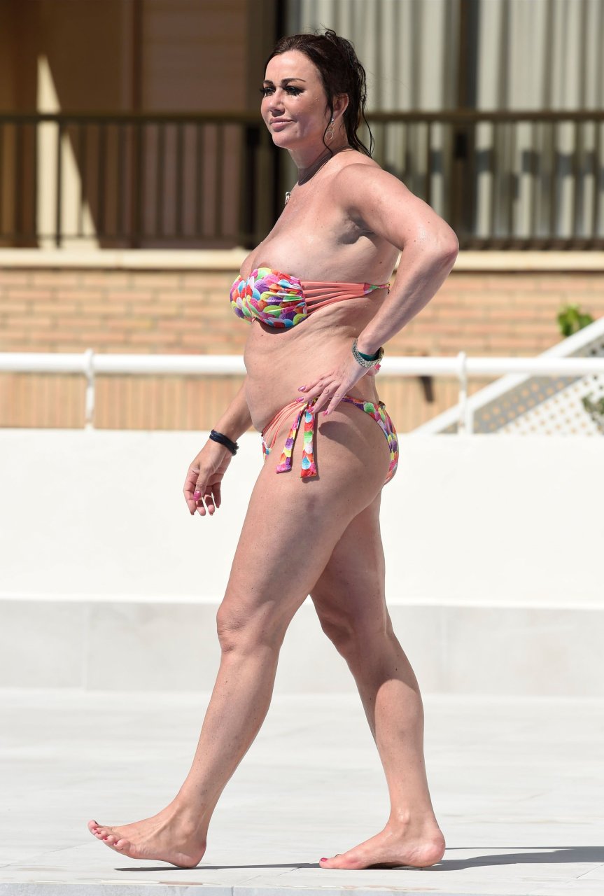 Lisa Appleton muestra sus grandes pechos en la piscina de su hotel en España, 23/04/2017. Lisa Appleton es una estrella de la televisión de realidad (Gran Hermano) del Reino Unido. Edad – 48; 23 de mayo de 1968.