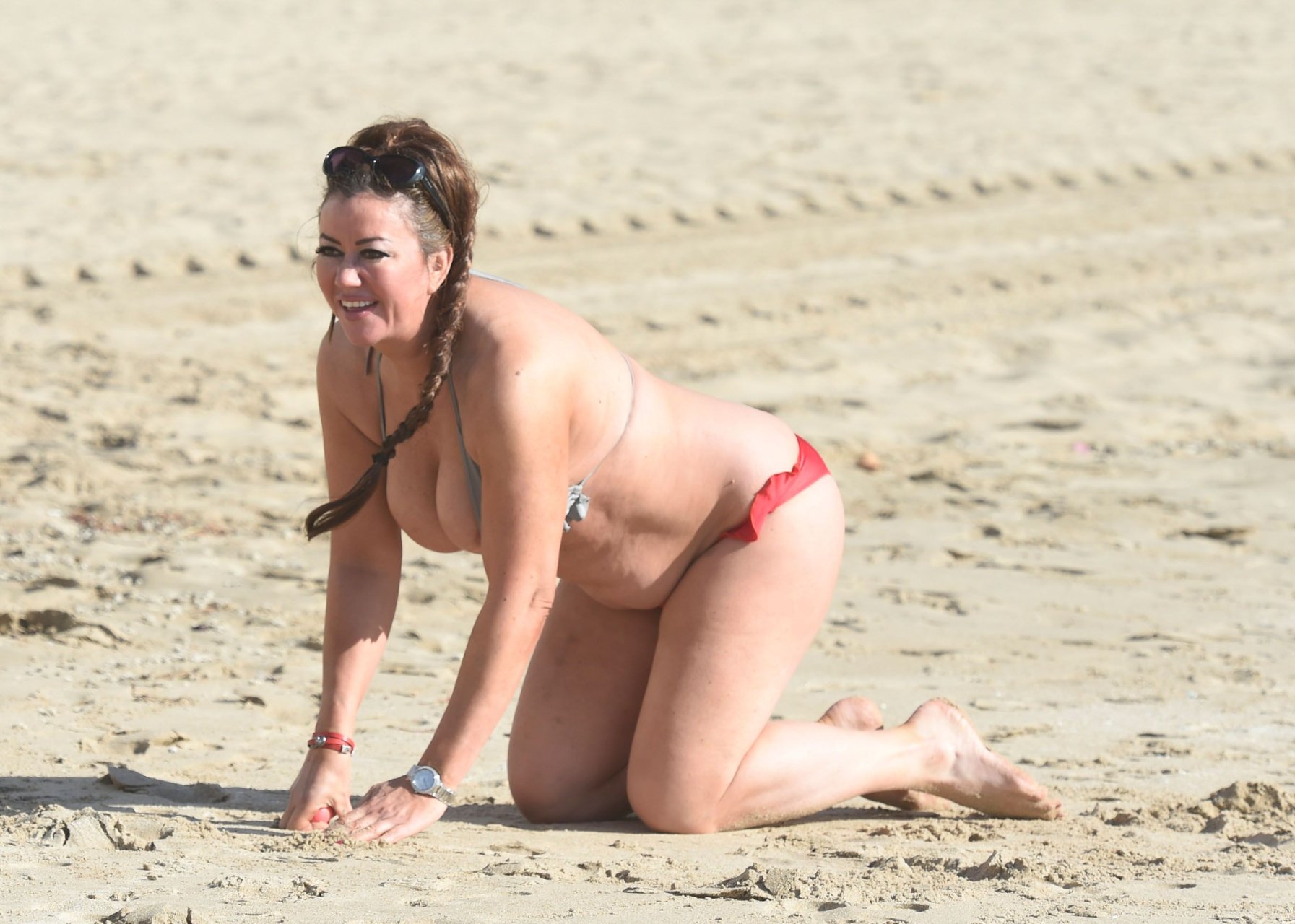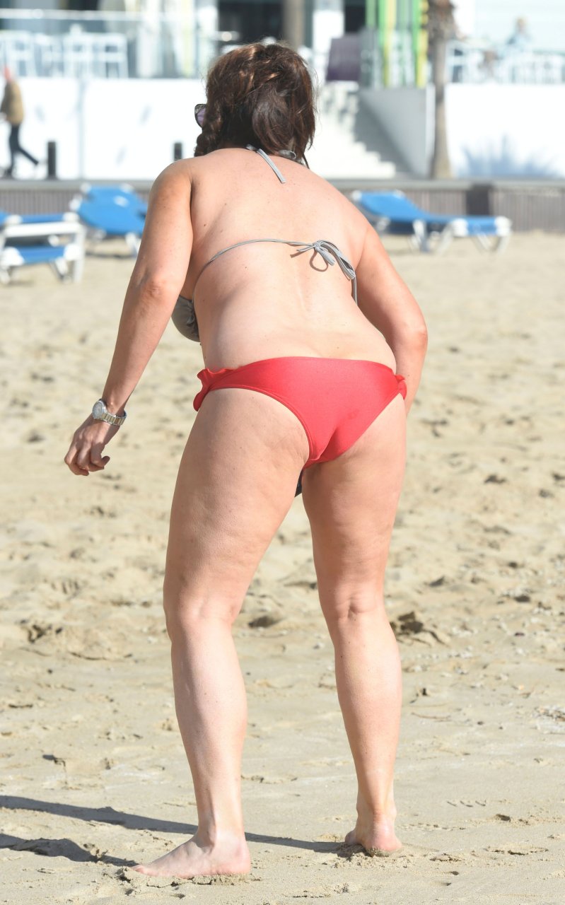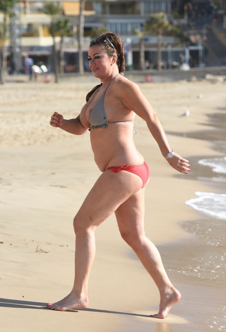 Lisa Appleton con curvas disfruta de las vacaciones en la playa en España, 20/01/2017. Lisa Appleton es una estrella británica de la televisión de realidad (Big Brother Temporada 9). Edad: 48, 23 de mayo de 1968.