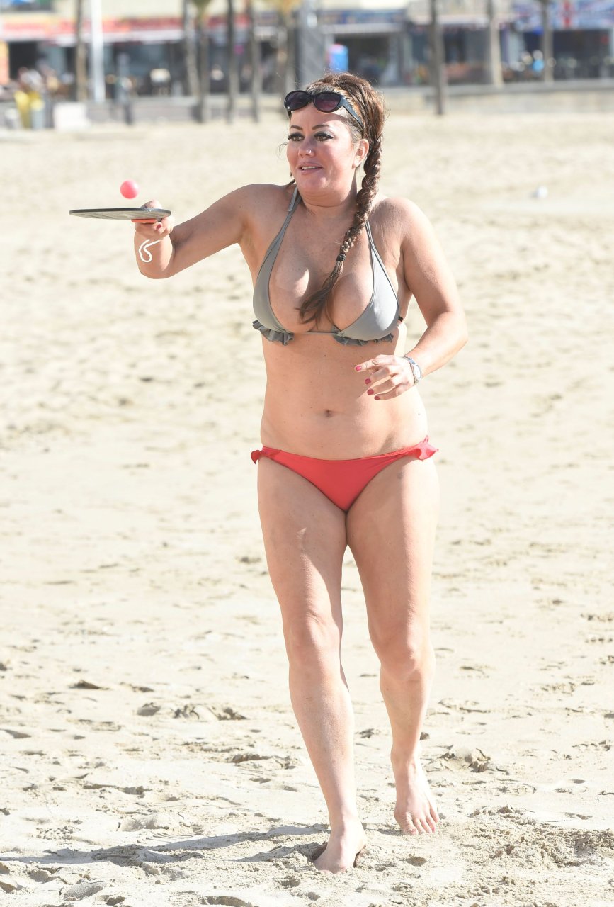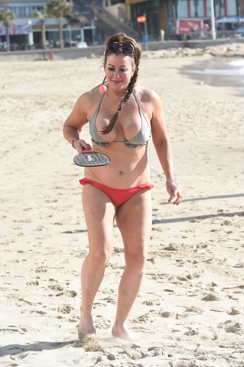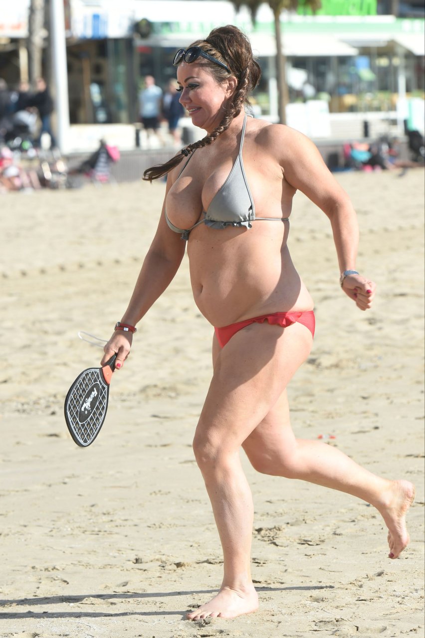 Lisa Appleton con curvas disfruta de las vacaciones en la playa en España, 20/01/2017. Lisa Appleton es una estrella británica de la televisión de realidad (Big Brother Temporada 9). Edad: 48, 23 de mayo de 1968.