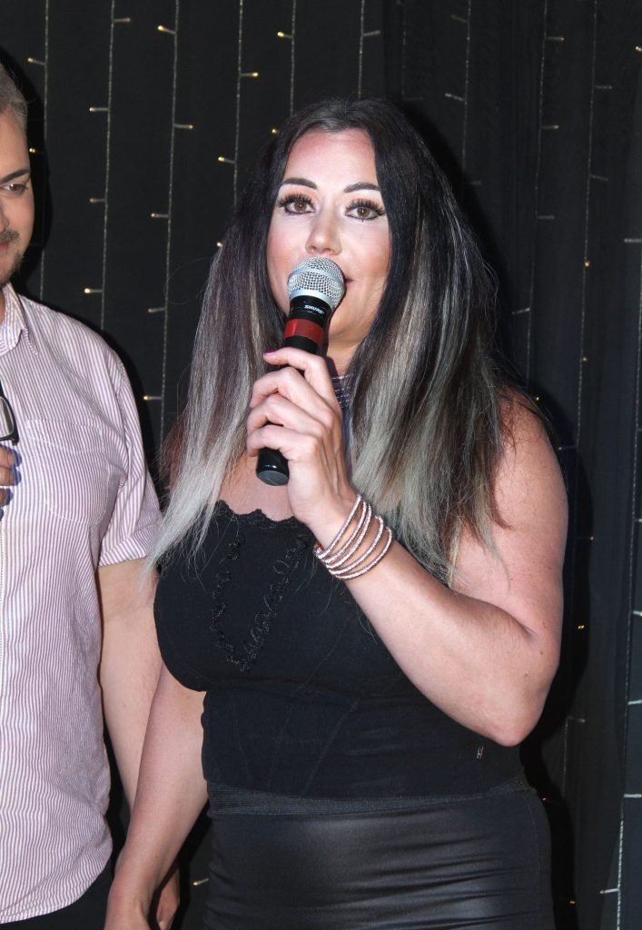 A Lisa le presentaron un pastel de cumpleaños en el escenario mientras bebía una botella de Prosecco y tomó el micrófono para decir unas palabras a sus invitados.