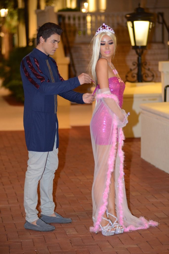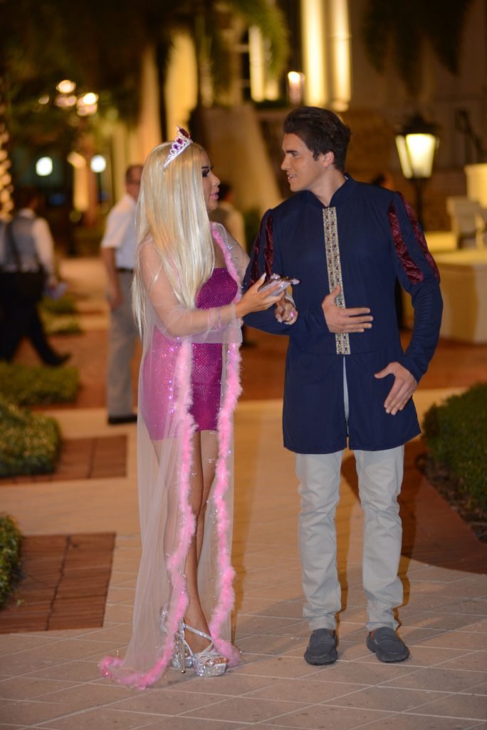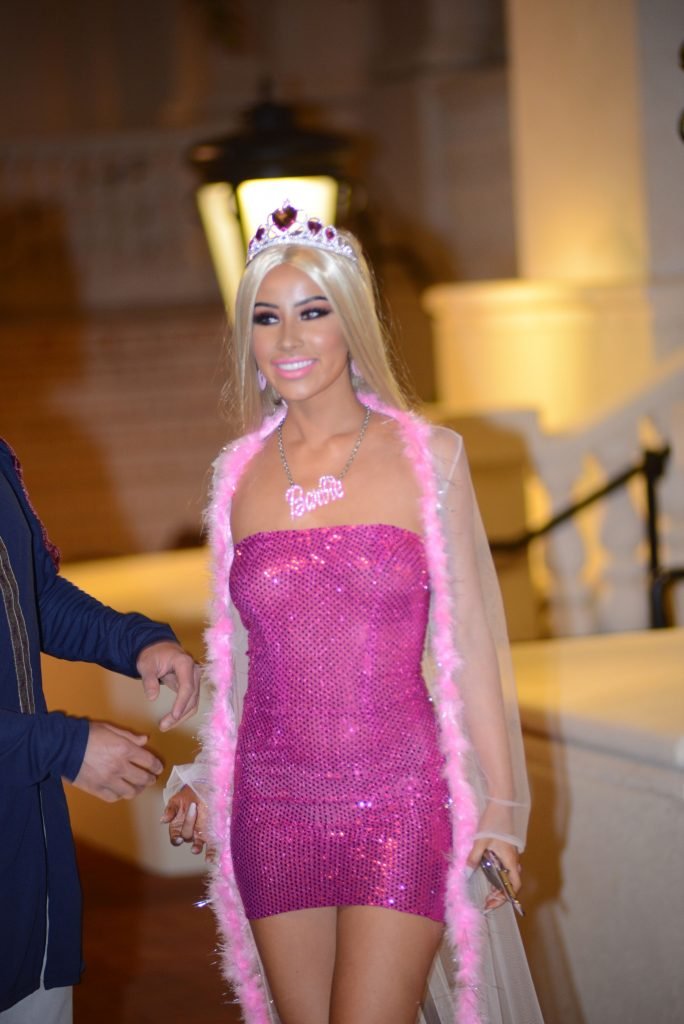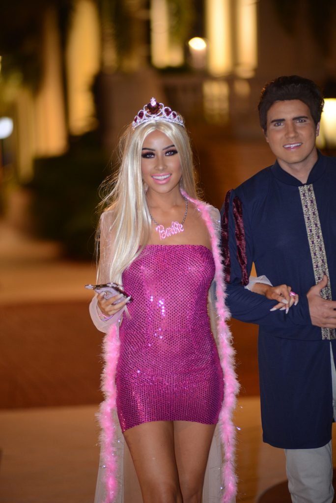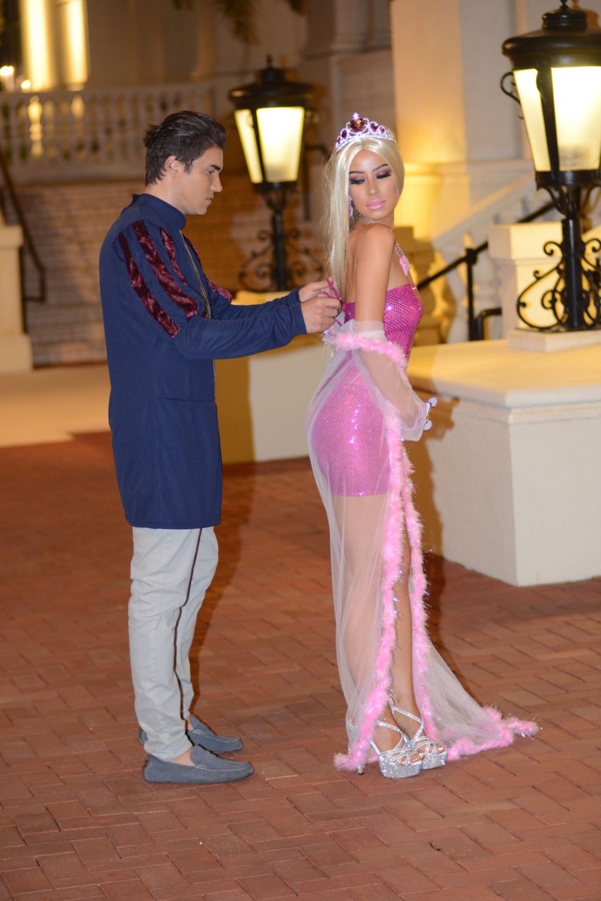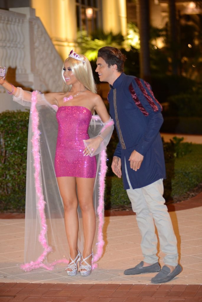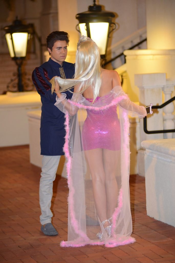 La reina de concursos de belleza y modelo Lisa Opie (26) fue vista con su novio en un divertido dúo de disfraces de Barbie y Ken en Los Ángeles, 26/10/2017. ¡Geniales fotos transparentes y desde abajo!