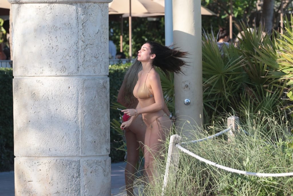 Estrellas de la televisión italiana Livia Canalis y Francesca Brambilla comparten una ducha pública juntas en Miami Beach, 27/12/2017.