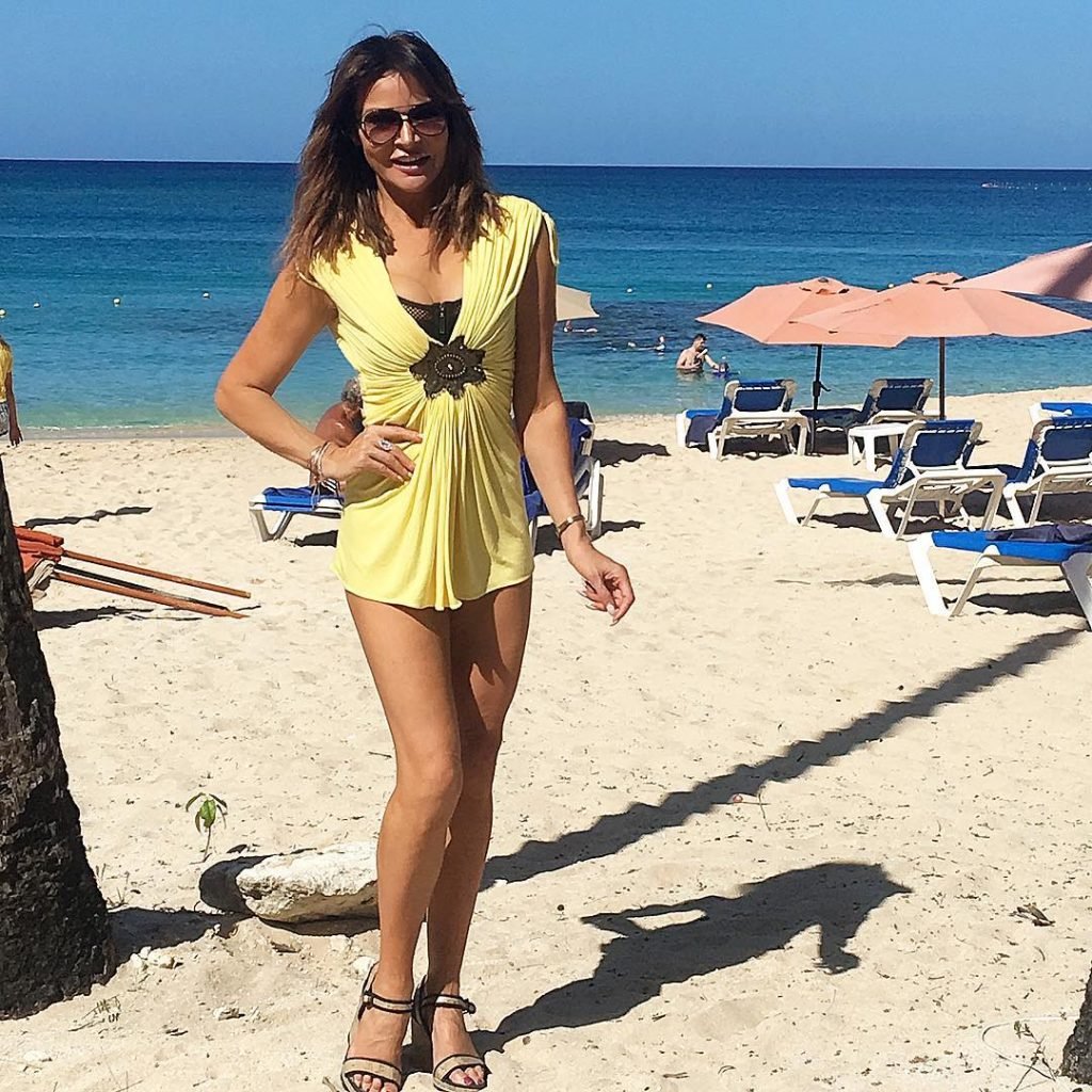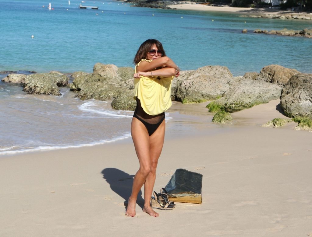 Lizzie Cundy muestra su envidiable figura mientras disfruta de su día de Navidad en la playa de la hermosa Barbados, 25/12/2018.